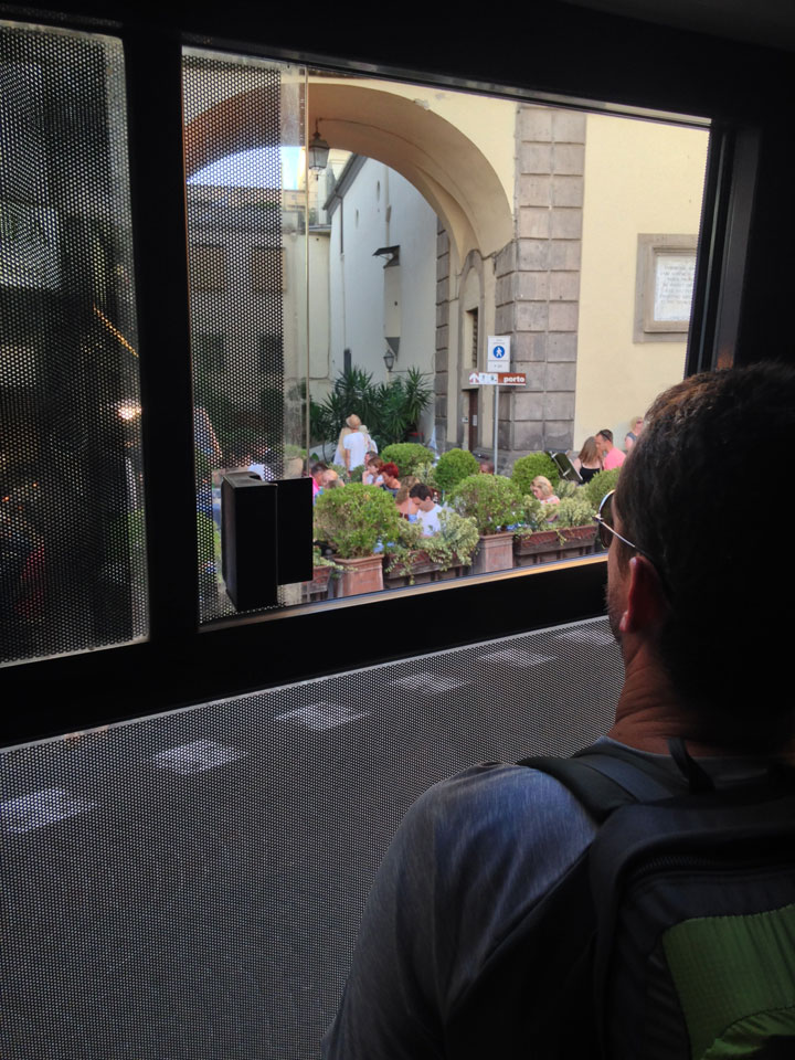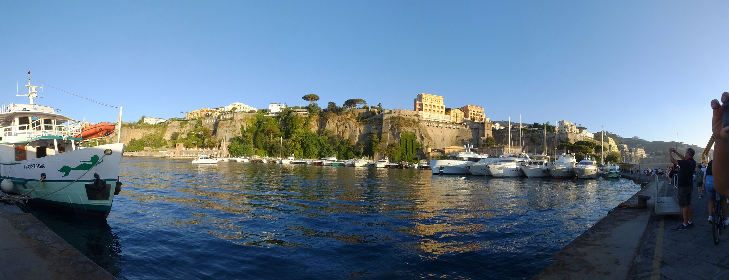 Die Fähre nach Sorrento war ebenfalls voll. Meine Photokünste wurden hart kritisiert. Da bin ich doch empfindlich, wenn jemand andere Bildaufteilungen will. Wieauchimmer, wir kamen in Sorrento an, schnappten einen Bus und fanden das Hotel. Für knapp €100 echt teuer hier aber was will man machen. Nur eine Nacht war frei – morgen, morgen müssen wir uns was neues suchen.