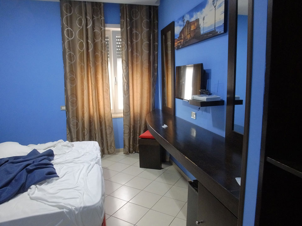 Ich fand für ca. €90 eine weitere Übernachtungsmöglichkeit in der Nähe. Wir checkten ein und wunderten uns erst, warum das Zimmer größer wäre. Dann fuhr ein Zug direkt am Haus vorbei.
