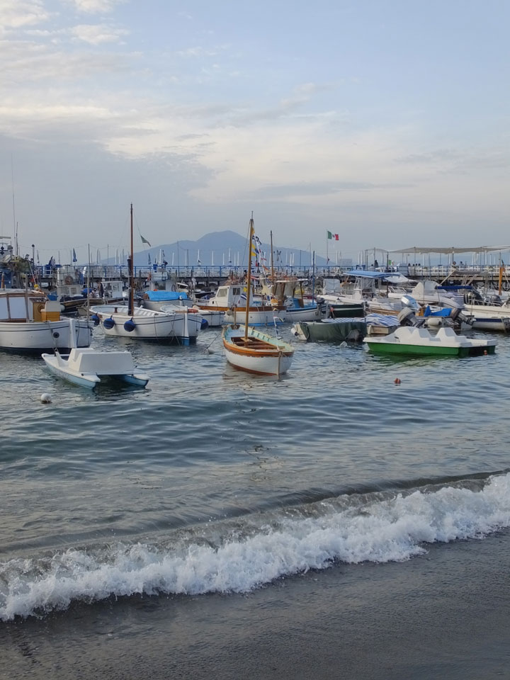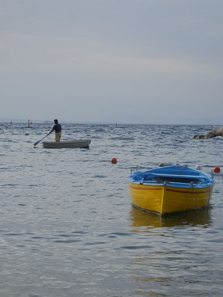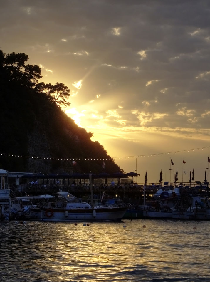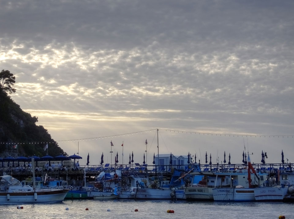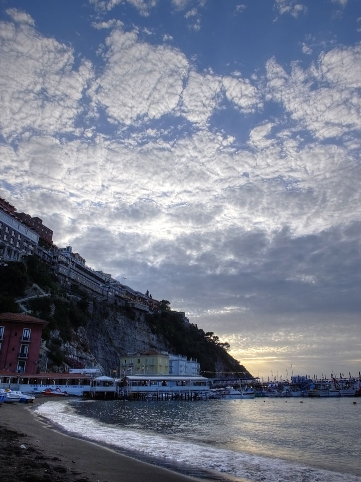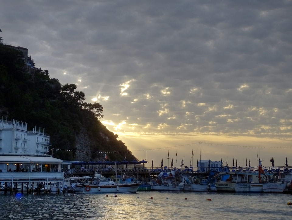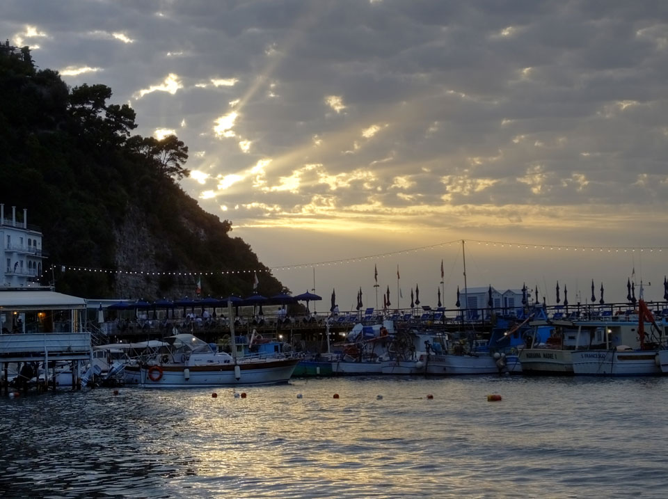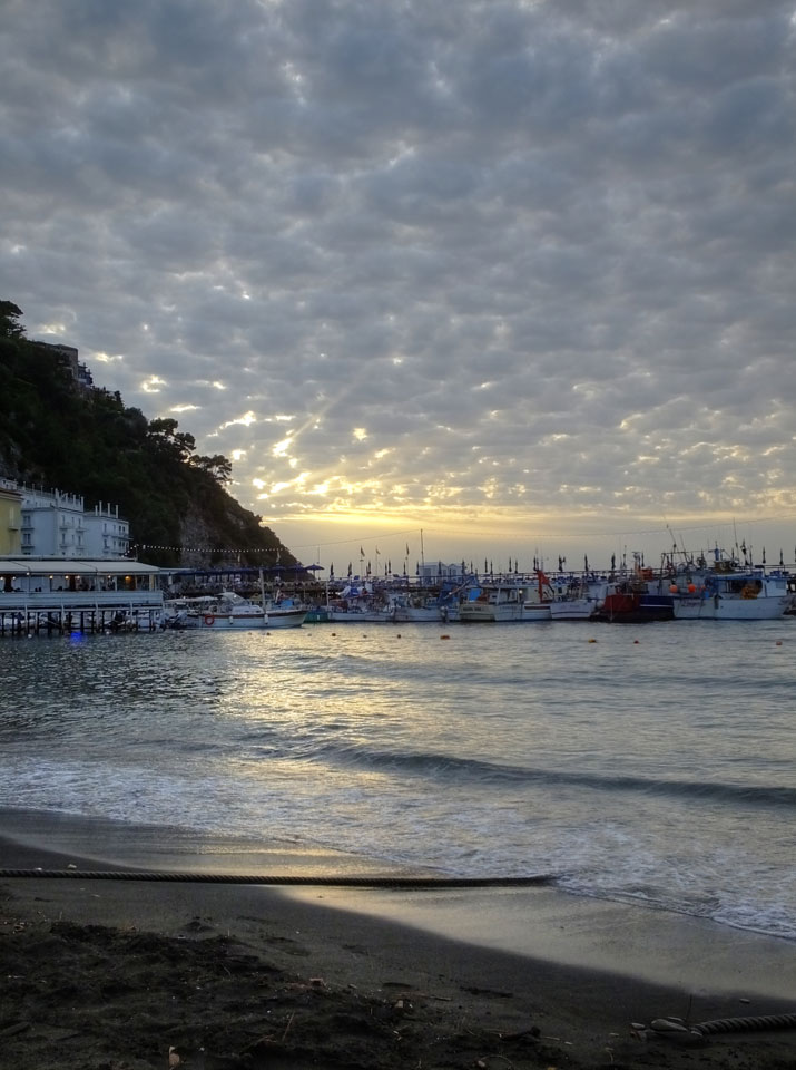 Wir kamen runter an’s Meer zur Marina Grande. Ein kleiner Strand, ganz nett. Ich ging endlich baden. Der Sonnenuntergang mit interessanten Wolken war auch nett. Die vielen kleinen Fischrestaurants öffneten mit recht moderaten Preisen.