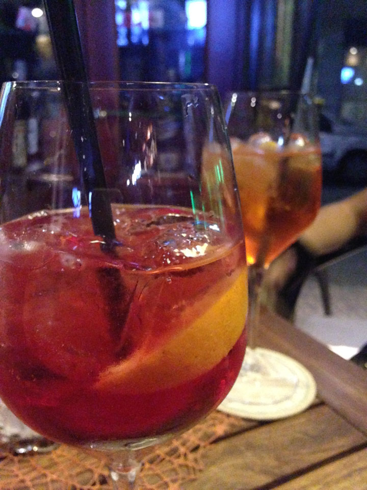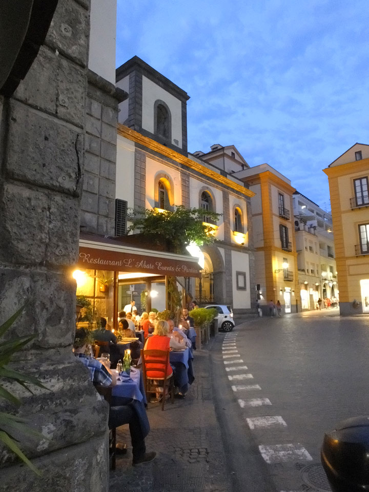 Auch Abends waren die Straßen Sorrentos voller Leute. Erst spät kamen wir wieder zum Abendessen, fanden aber ein nettes Lokal für die Einheimischen – „La Cantinaccia del Popolo“. Ich hatte die Spezialität des Hauses, danach gab’s noch einen Limoncello auf’s Haus. In einer Bar zu guter Letzt noch ein paar Spritz.