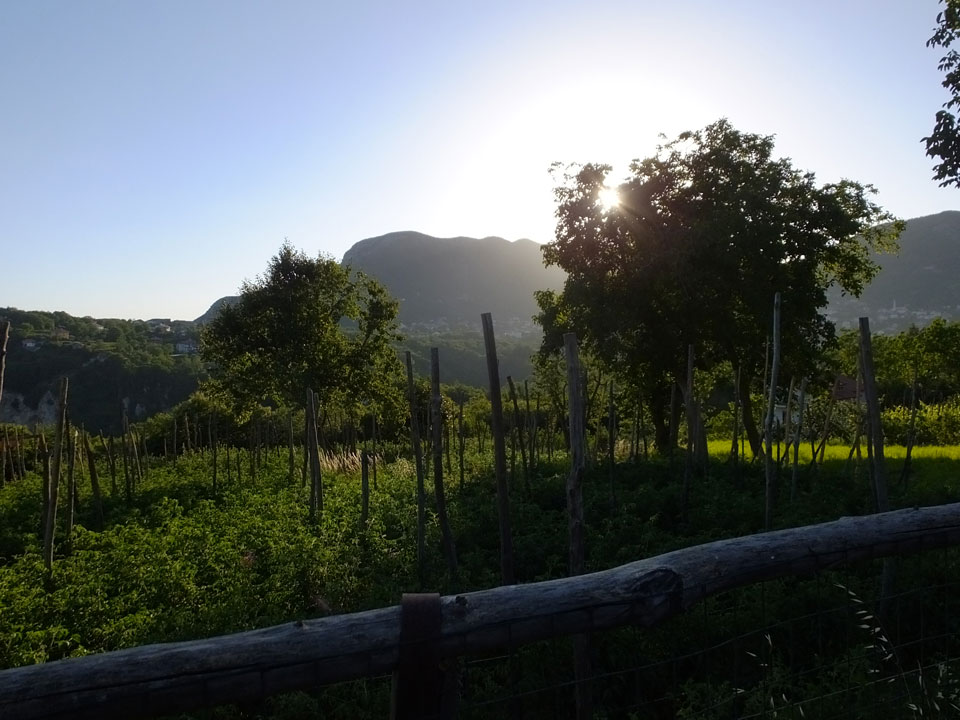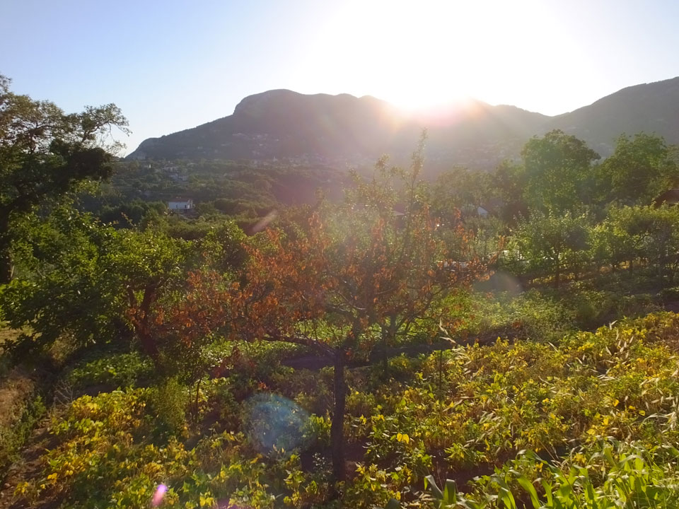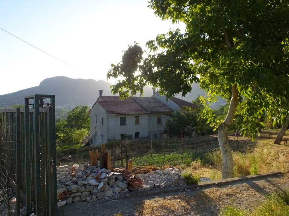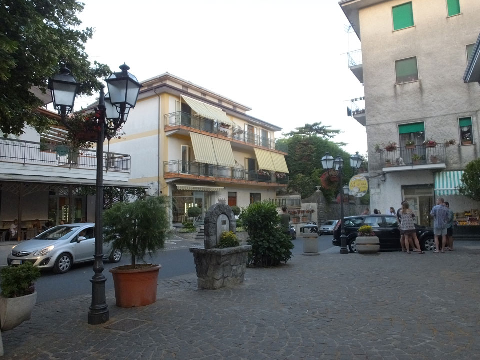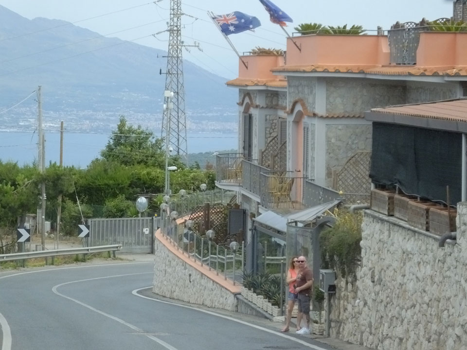 Ich musste den Koffer nehmen, denn meine Stimmung war nun auch etwas im Keller. Wir wanderten durch die Pampa, kamen scheinbar in keinen Ort. Hier war noch nichts los. Ich sah schließlich ein Schild mit Telefonnummer von Pensionen. Die erste hatte keine Betten frei, die zweite „Leonardo’s“ bot Betten für €20/Nacht/Person an – also €40/Zimmer oder €50 mit Frühstück. Es ging weiter in die Stadt und da sah ich, dass ich 1-2 Stationen zu früh ausstieg. Jetzt waren wir im kleinen Ort San Lazzaro – der Endstation des SITA Busses. Von diesem Ort hatte ich in einem Reisebericht gelesen. Die Leute waren darin ganz begeistert – die Aussicht, die guten Preise und eben die Nähe zum Wanderweg „Path of Gods“.