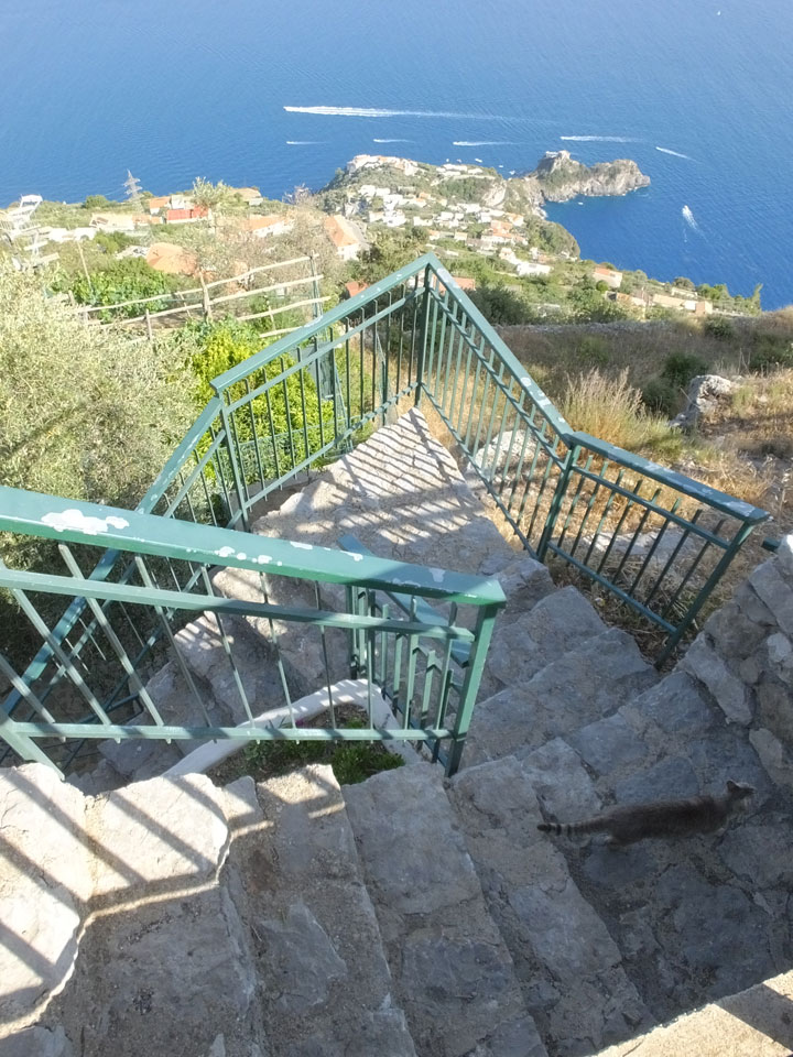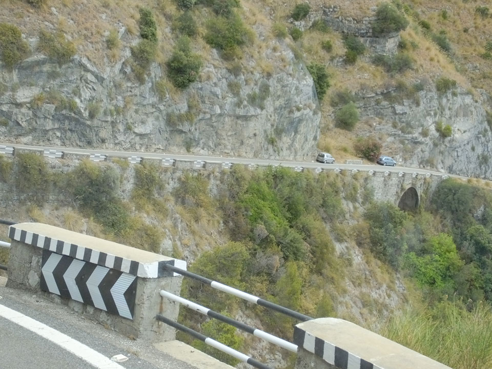 Dann war alles besser. Wir fanden die Pension, mehr eine riesige und recht edle Pizzeria. Das Zimmer normal spartanisch aber eben preislich bezahlbar. Jemand war kaum happy, doch das besserte sich nach einem Check der Gegend. Die Aussicht von hier oben war einfach phänomenal. Man konnte die ca. 750m Höhe direkt nach unten und auf die Küste schauen. Sowas sieht man selten.