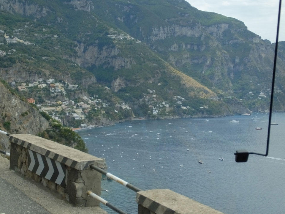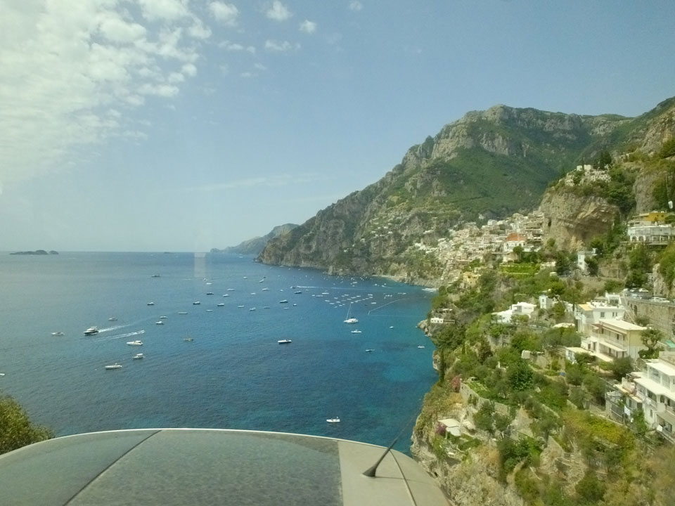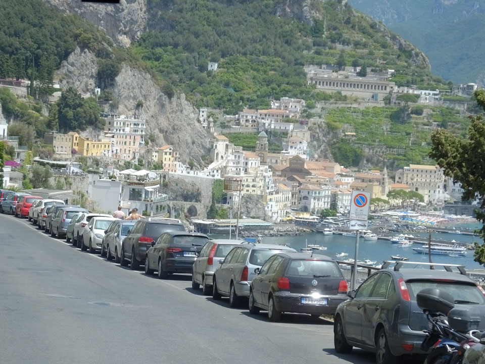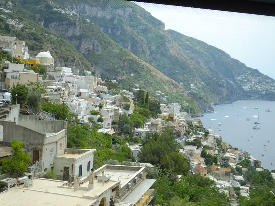 Die Fahrt auf den engen Straßen schlängelte sich den Berg hinauf. Man sah nochmal Sorrento schön, doch es wurde noch besser, als dann Positano kam. Dieser Ort ist einer der hübschesten an der Küste. Am liebsten wäre ich ausgestiegen, doch der Plan sah vor, erst mal bis Amalfi zu fahren. Einige Urlauber machten den Tagestrip nur bis hierher.
