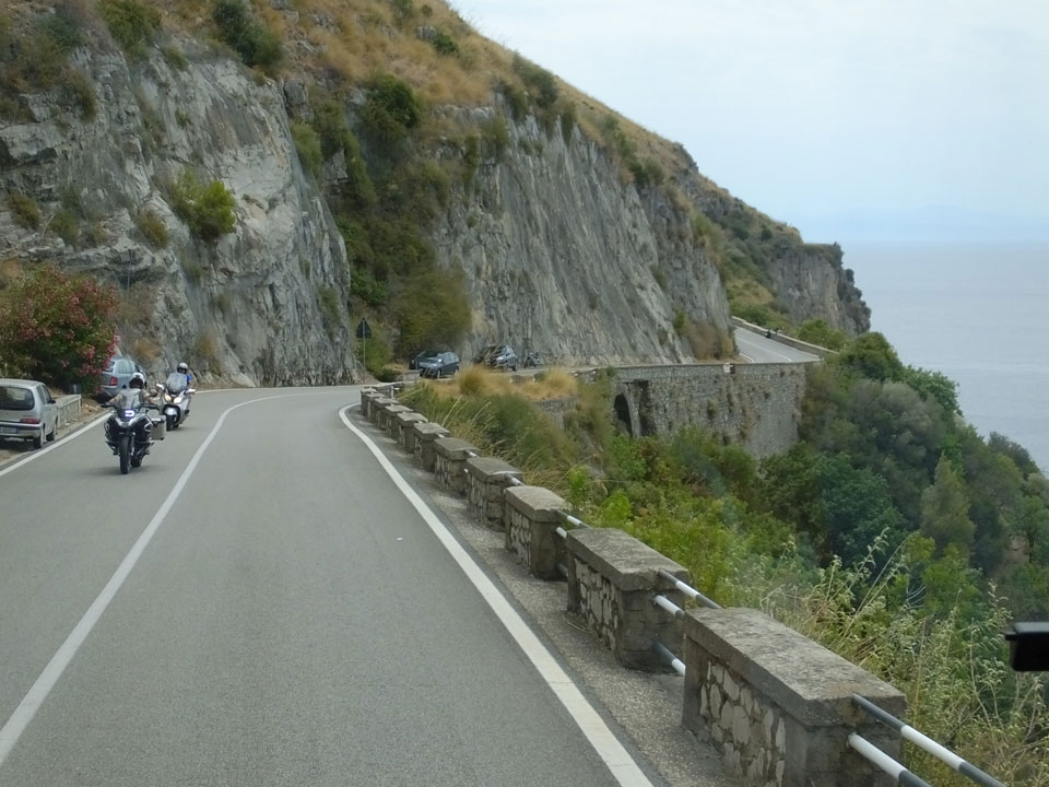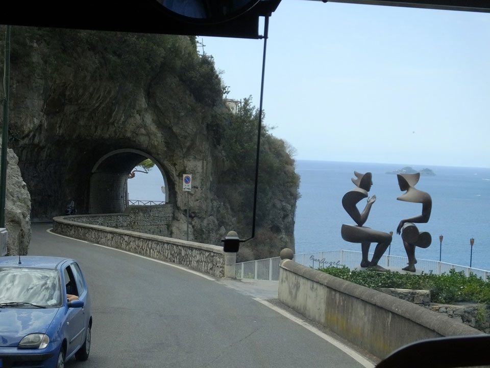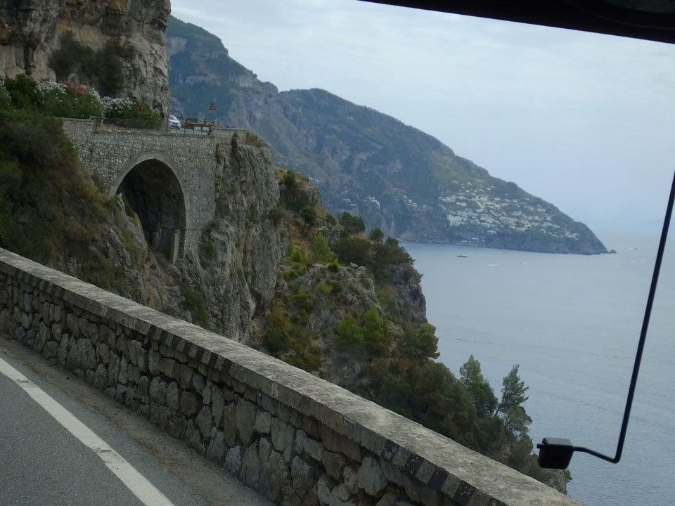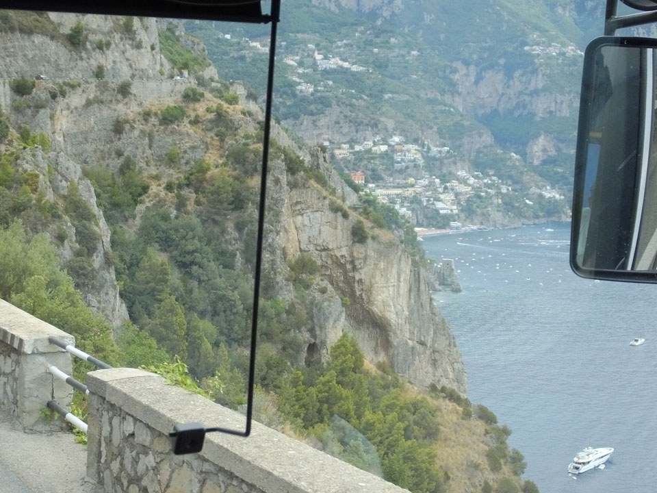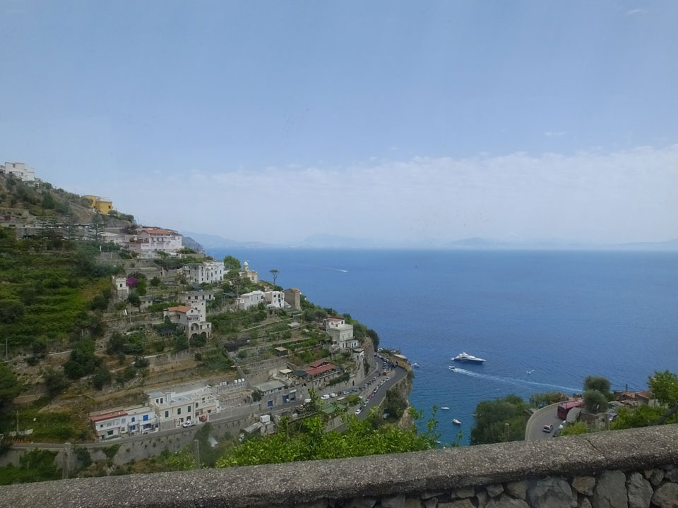 Die Fahrt auf den engen Straßen schlängelte sich den Berg hinauf. Man sah nochmal Sorrento schön, doch es wurde noch besser, als dann Positano kam. Dieser Ort ist einer der hübschesten an der Küste. Am liebsten wäre ich ausgestiegen, doch der Plan sah vor, erst mal bis Amalfi zu fahren. Einige Urlauber machten den Tagestrip nur bis hierher.