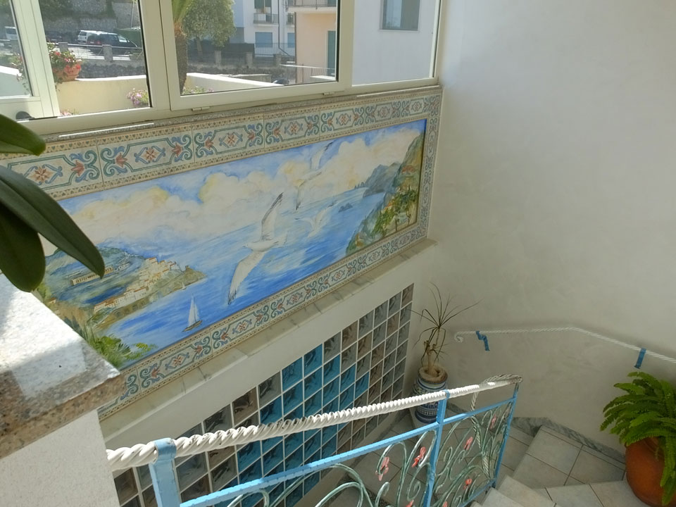 Das Hotel im Apartment war interessant aufgeteilt. Der Flur als Frühstücksraum. Wir mussten uns dann sputen, denn die Busse nach Amalfi fahren oft nur ein mal pro Stunde. Ich schleifte den Koffer und machte fix, was gut war. Wir waren die letzten, die in den Bus kamen.