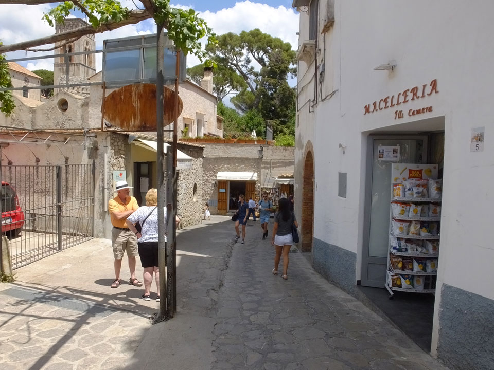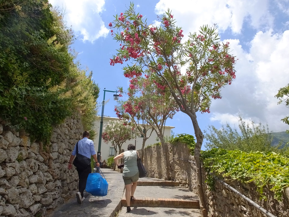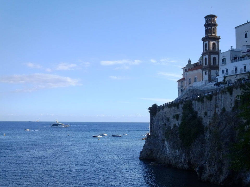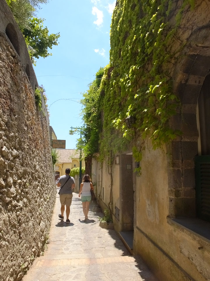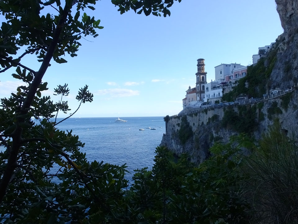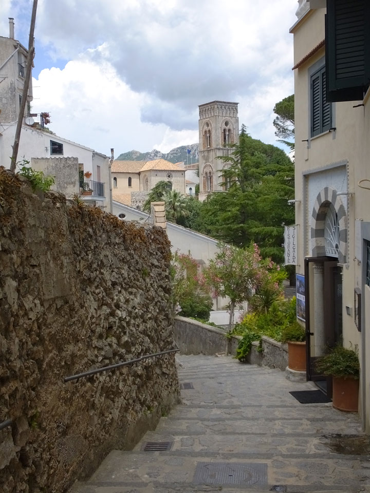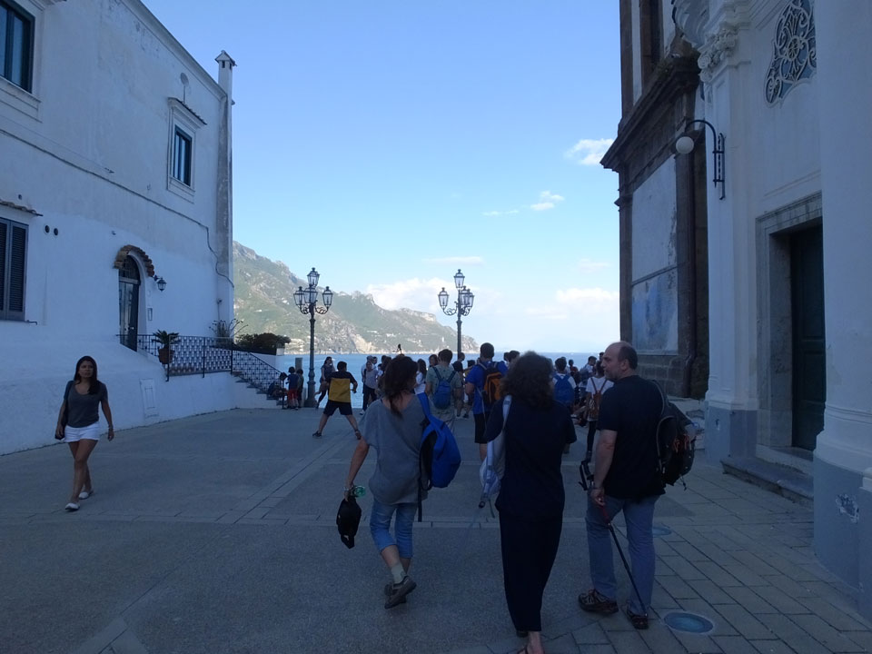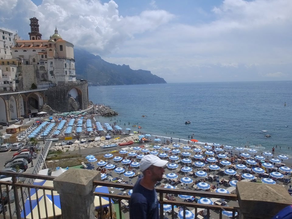 Etwas Marschmusik klang vom Ort aus, war dann aber schon wieder vorbei. Wir gingen in Ravello umher und sahen die Villa Rufolo. Dort wollte man aber €7 Eintritt, was wir uns sparten. Stattdessen ging’s durch den Ort, der klein und fein war. Überall kleine Läden in den alten Gassen. Super Aussicht von Restaurants mit hohen Preisen. Schon toll hier.