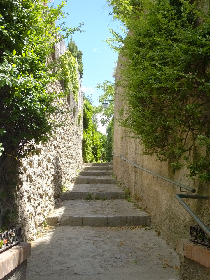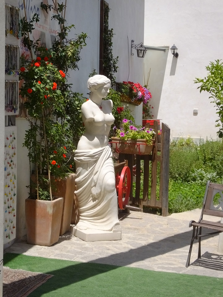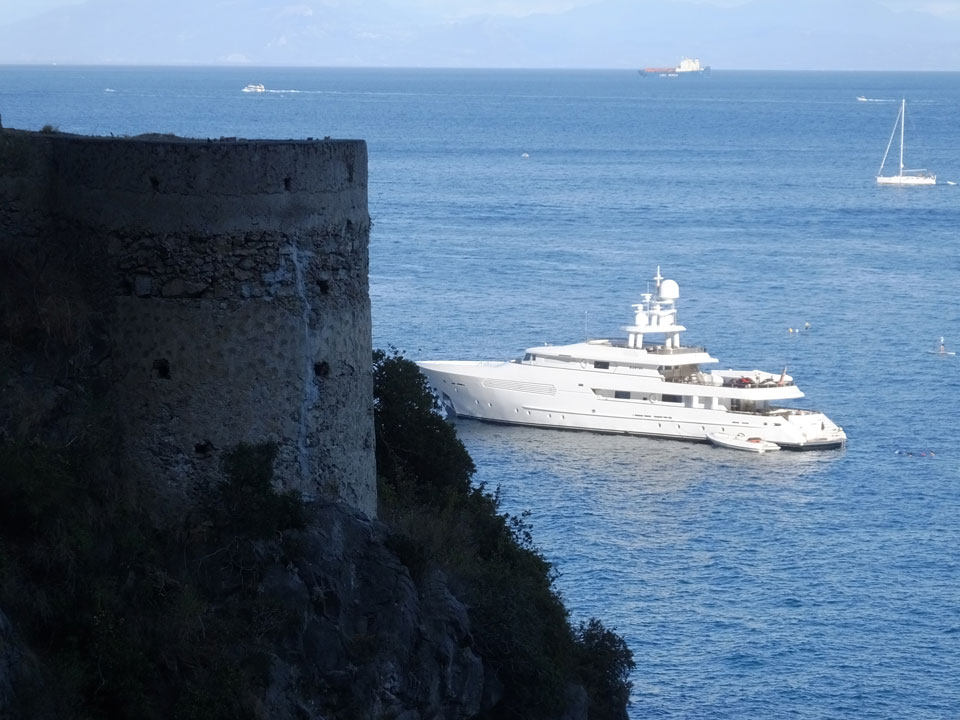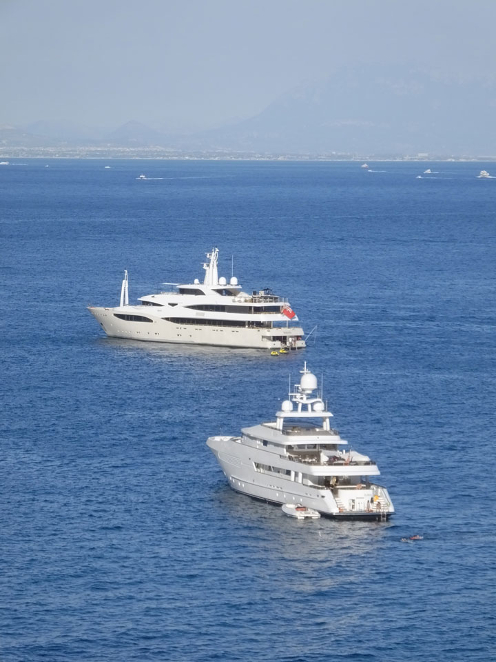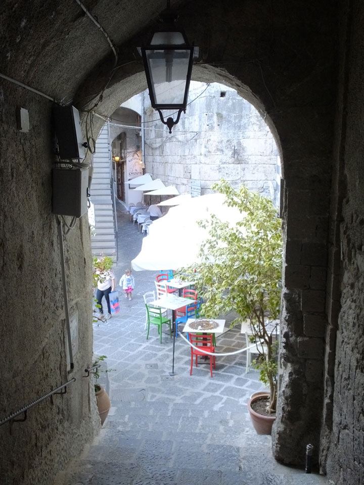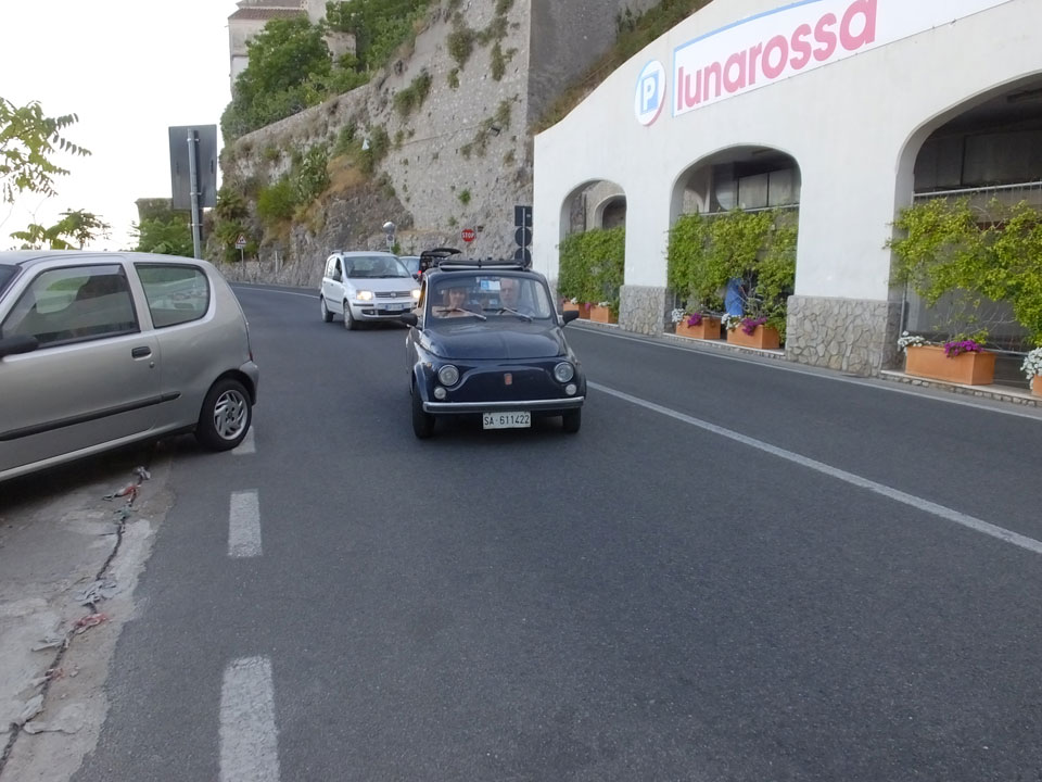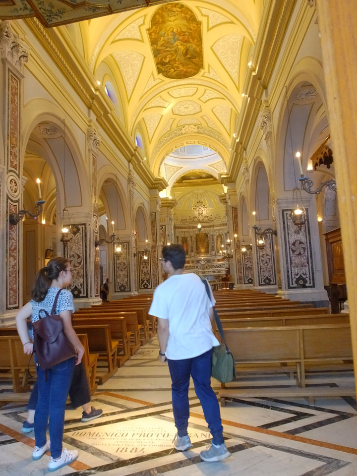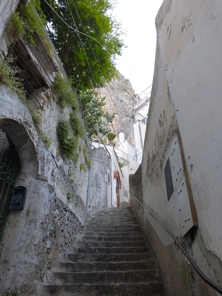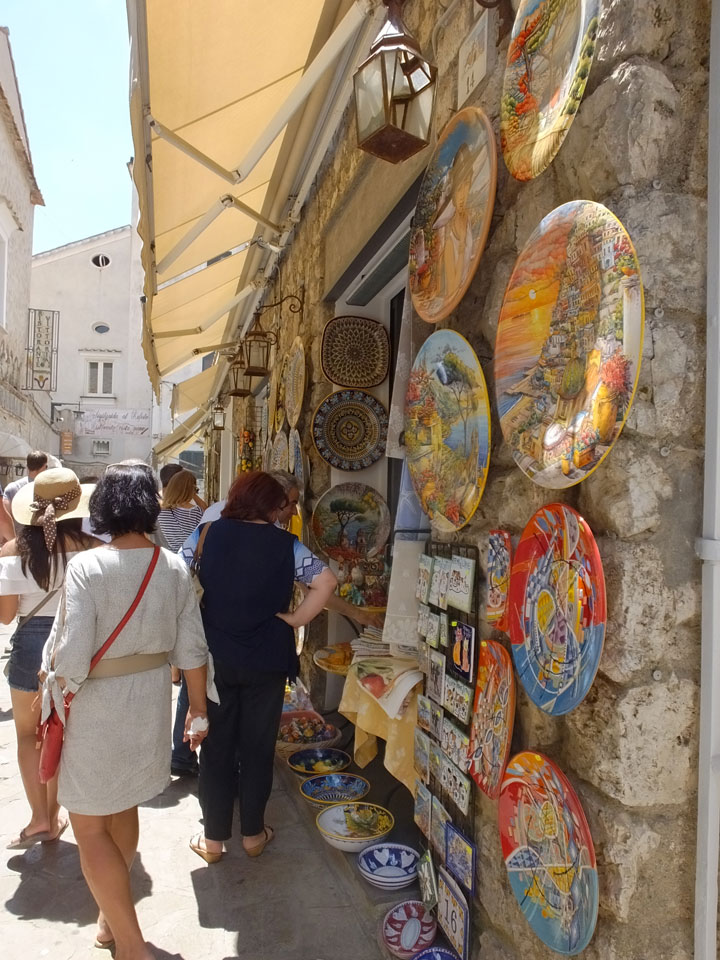 Etwas Marschmusik klang vom Ort aus, war dann aber schon wieder vorbei. Wir gingen in Ravello umher und sahen die Villa Rufolo. Dort wollte man aber €7 Eintritt, was wir uns sparten. Stattdessen ging’s durch den Ort, der klein und fein war. Überall kleine Läden in den alten Gassen. Super Aussicht von Restaurants mit hohen Preisen. Schon toll hier.