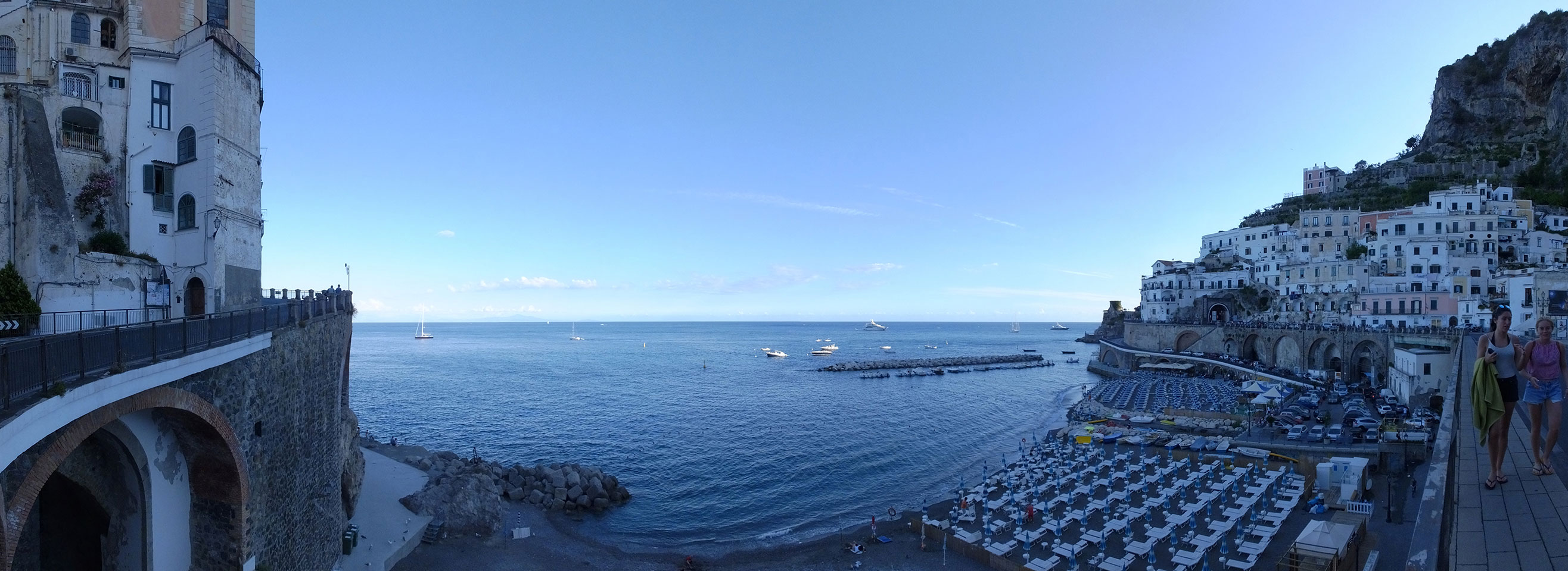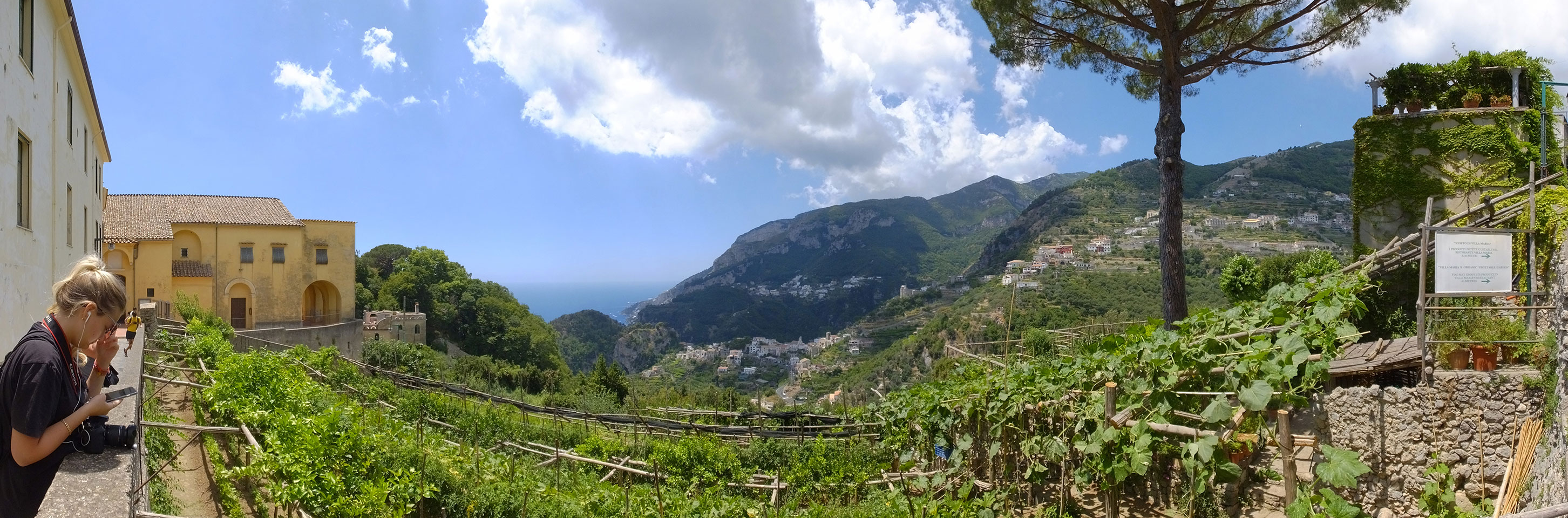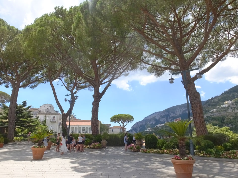 Wir sahen ein paar Strände, die wir später checken wollten und fuhren auf den Berg. In Ravello dann gab’s auf einmal laute Knalle. Explosionen und Schüsse in die Luft. Es war 12 Uhr. Die Aussicht auch hier oben war fantastisch.