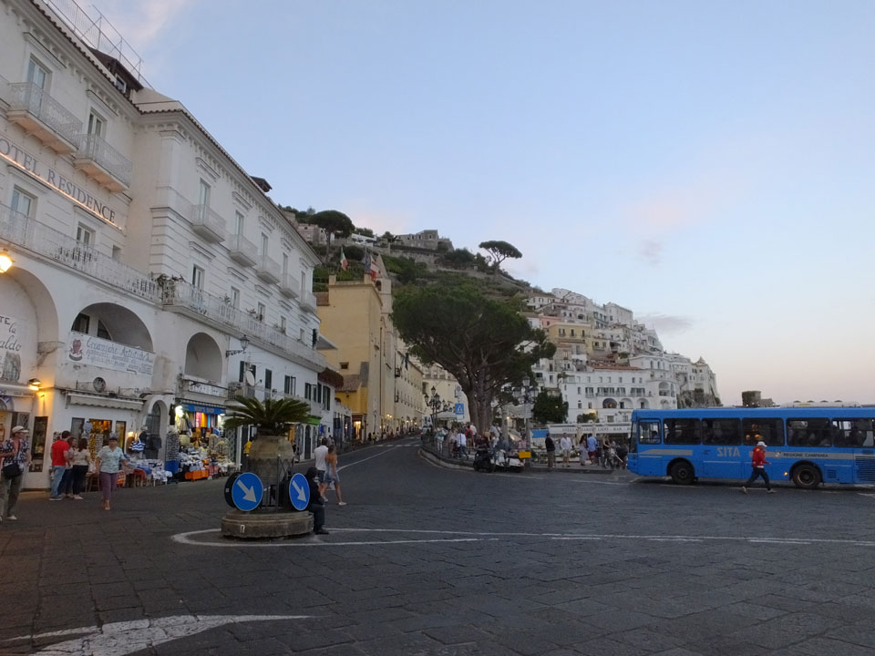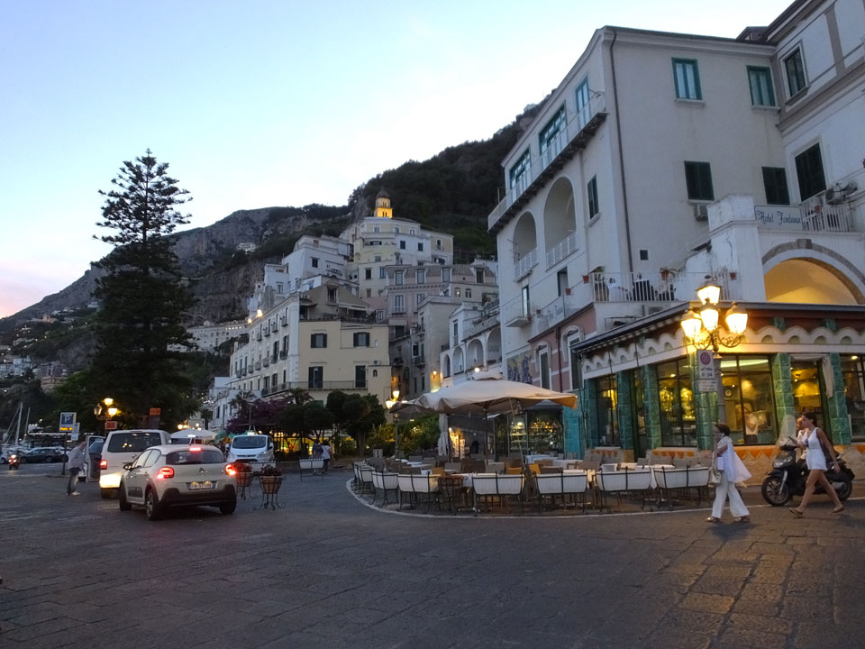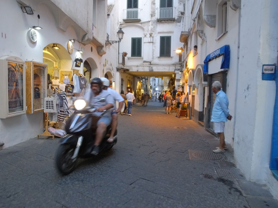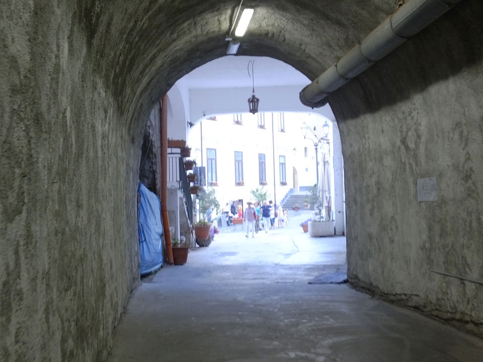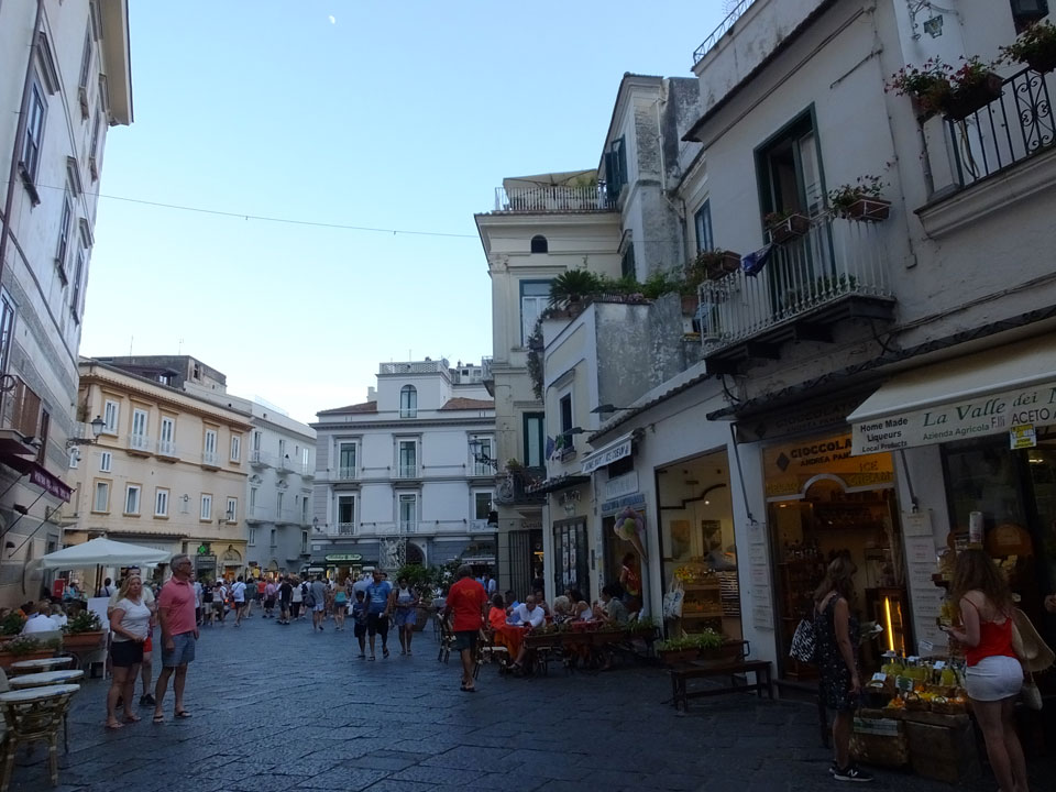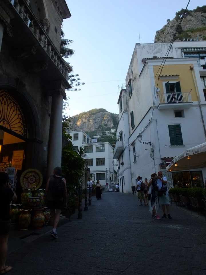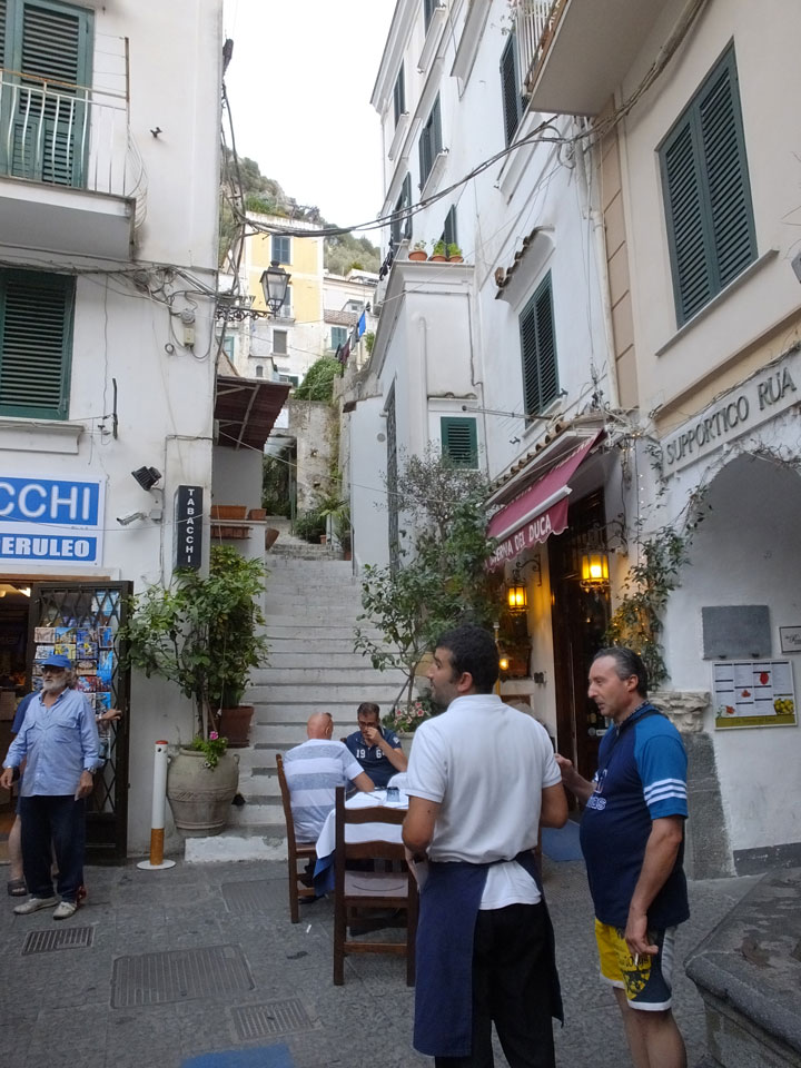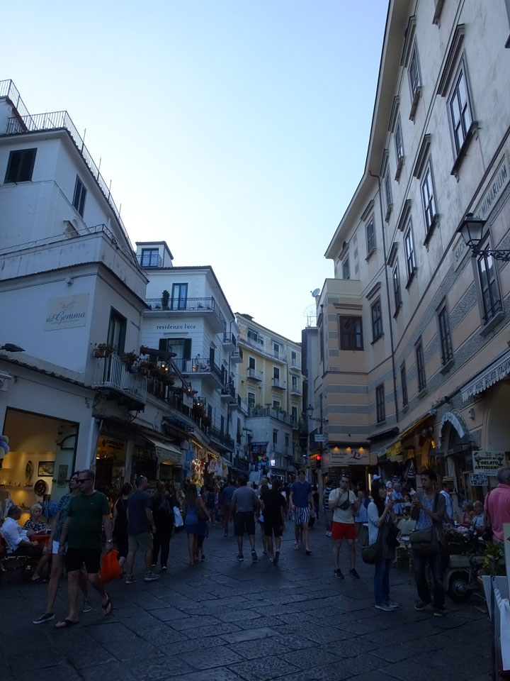 Es ging wieder hoch auf die Straße, an einer Kirche vorbei und dann durch einen langen Tunnel nach Amalfi. Dort schauten wir uns ebenfalls um. Die Stadt mit vielen Gängen war auch etwas Besonderes. Ich hatte inzwischen viel Hunger, sodass wir unser Abendessen gleich dort einnahmen. Ich hatte das Gericht, was ich Mittags verpasste und war zufrieden. Man kommt doch meistens um die €20-€25 für 2 Personen aus dem Restaurant. Ich brauchte nur Bargeld, hier ging mal wieder ein Automat nicht. Für zwei Bustickets reichte es noch.