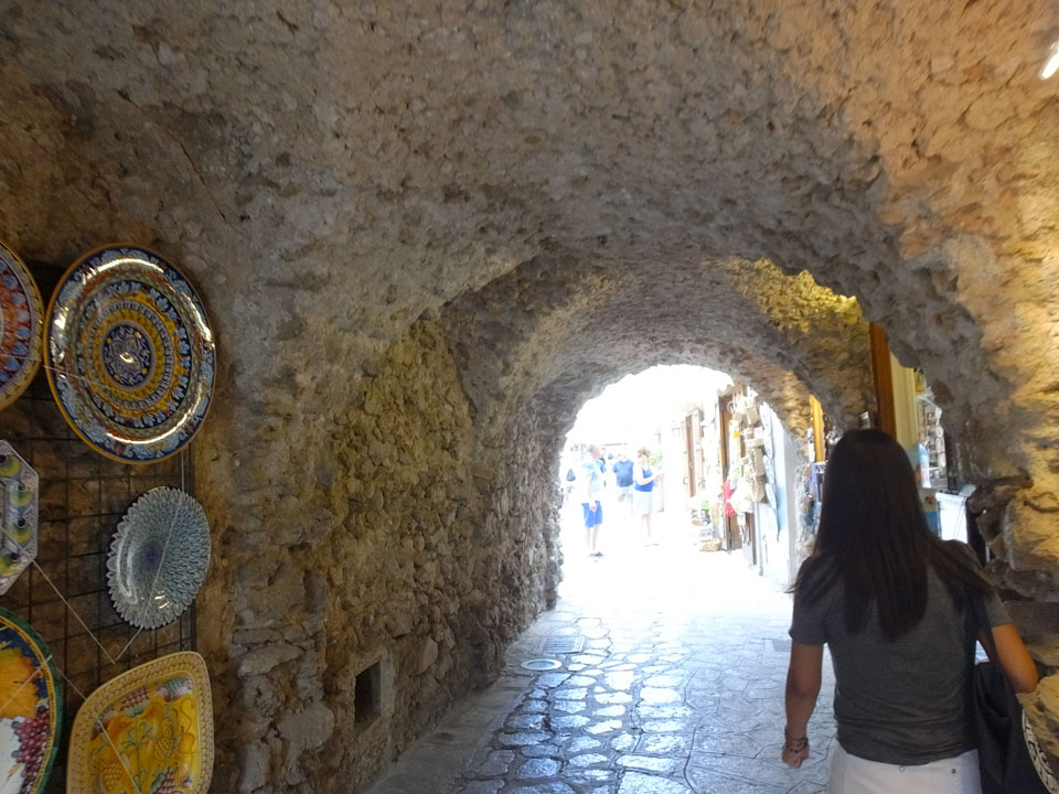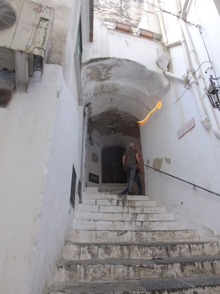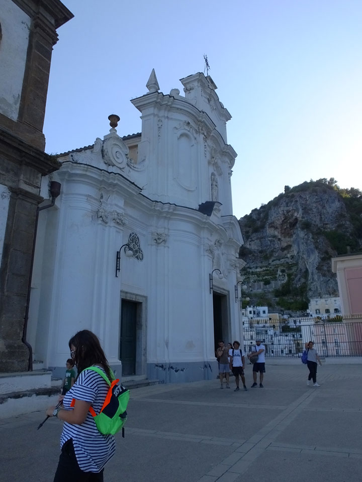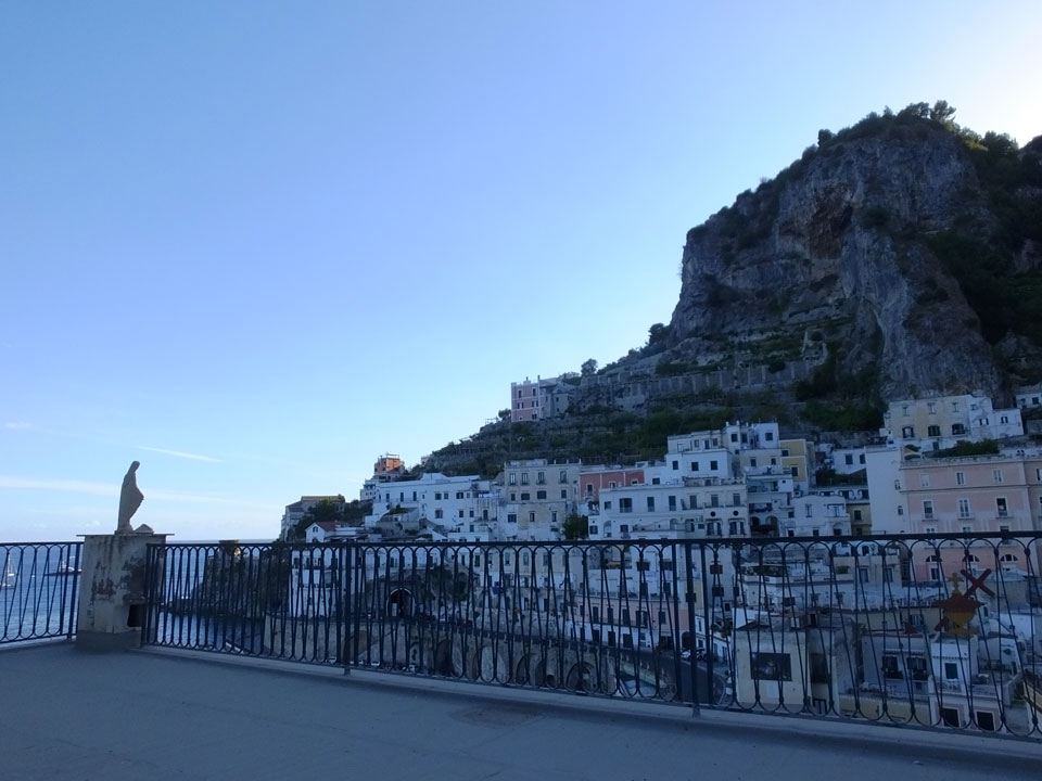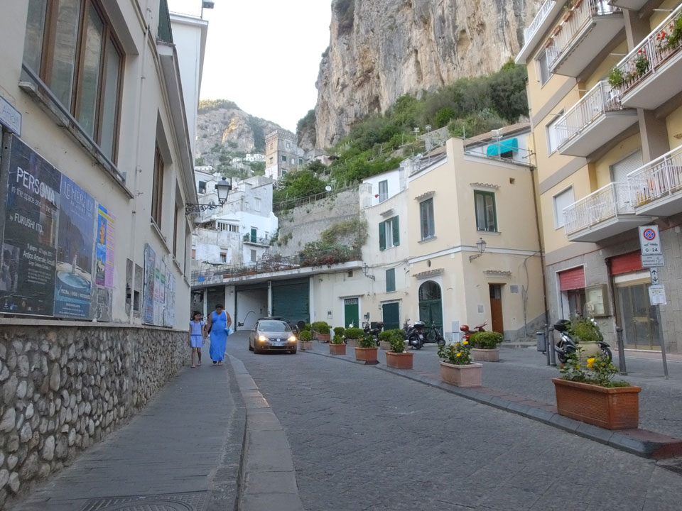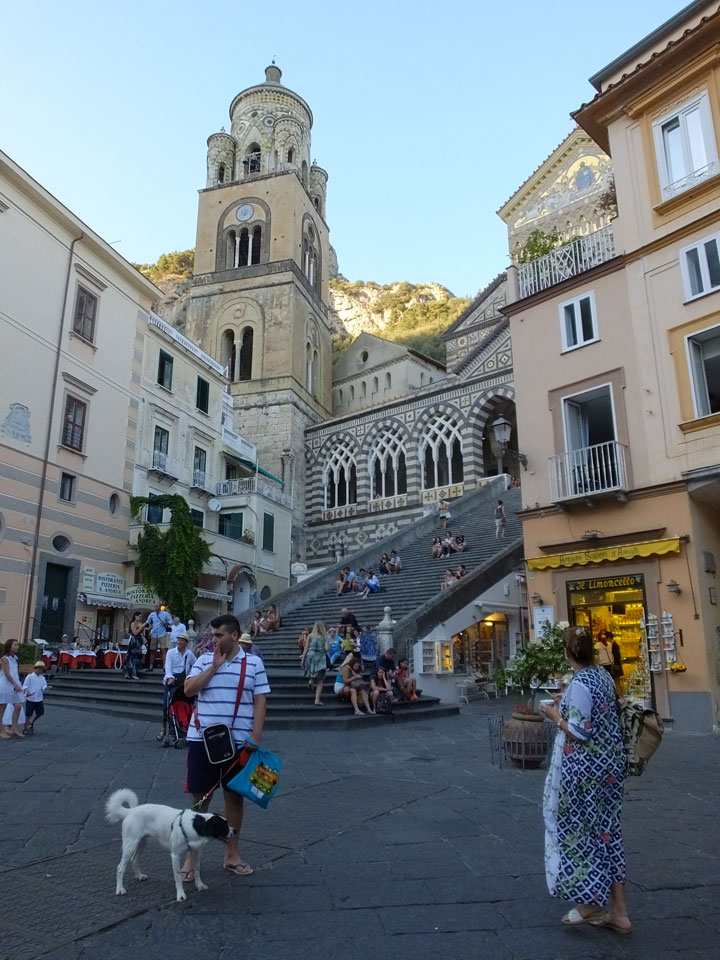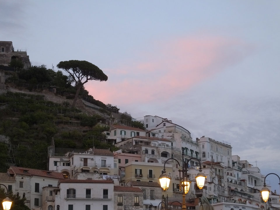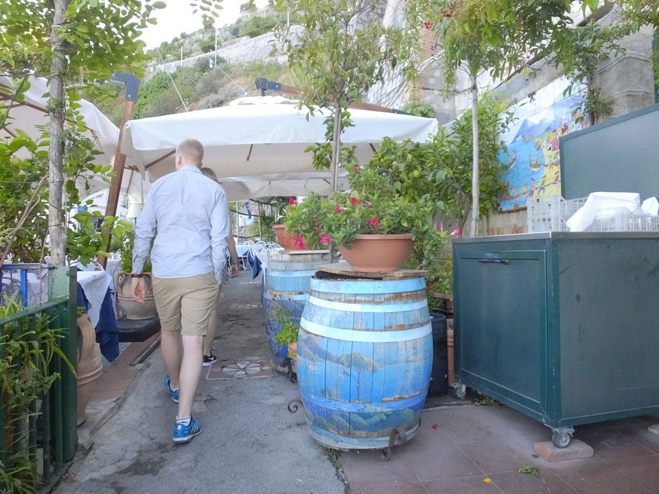 Es ging wieder hoch auf die Straße, an einer Kirche vorbei und dann durch einen langen Tunnel nach Amalfi. Dort schauten wir uns ebenfalls um. Die Stadt mit vielen Gängen war auch etwas Besonderes. Ich hatte inzwischen viel Hunger, sodass wir unser Abendessen gleich dort einnahmen. Ich hatte das Gericht, was ich Mittags verpasste und war zufrieden. Man kommt doch meistens um die €20-€25 für 2 Personen aus dem Restaurant. Ich brauchte nur Bargeld, hier ging mal wieder ein Automat nicht. Für zwei Bustickets reichte es noch.