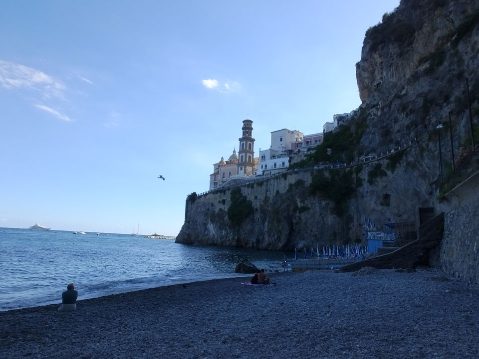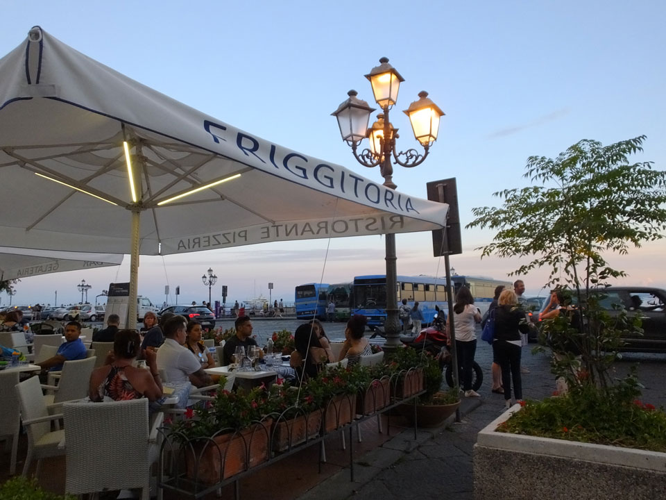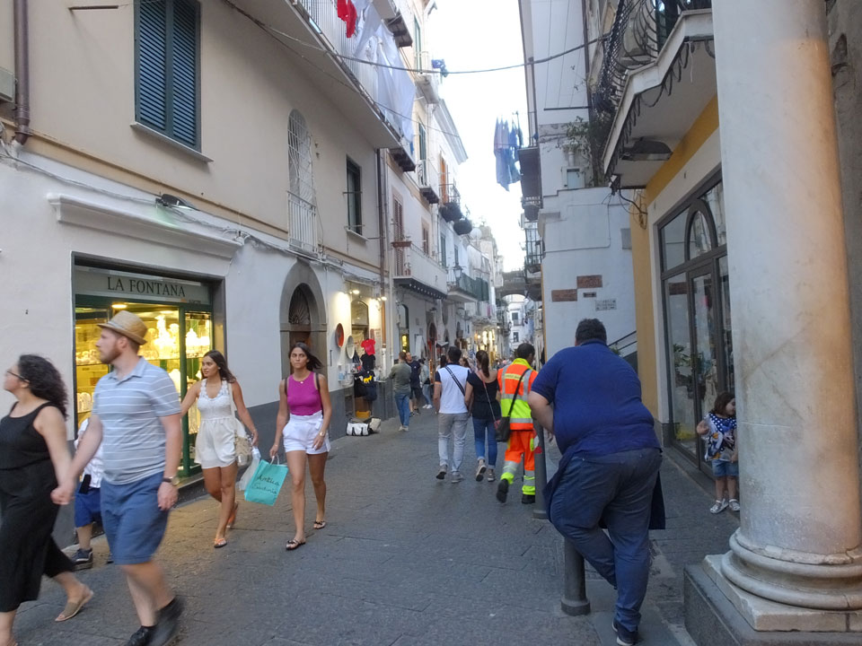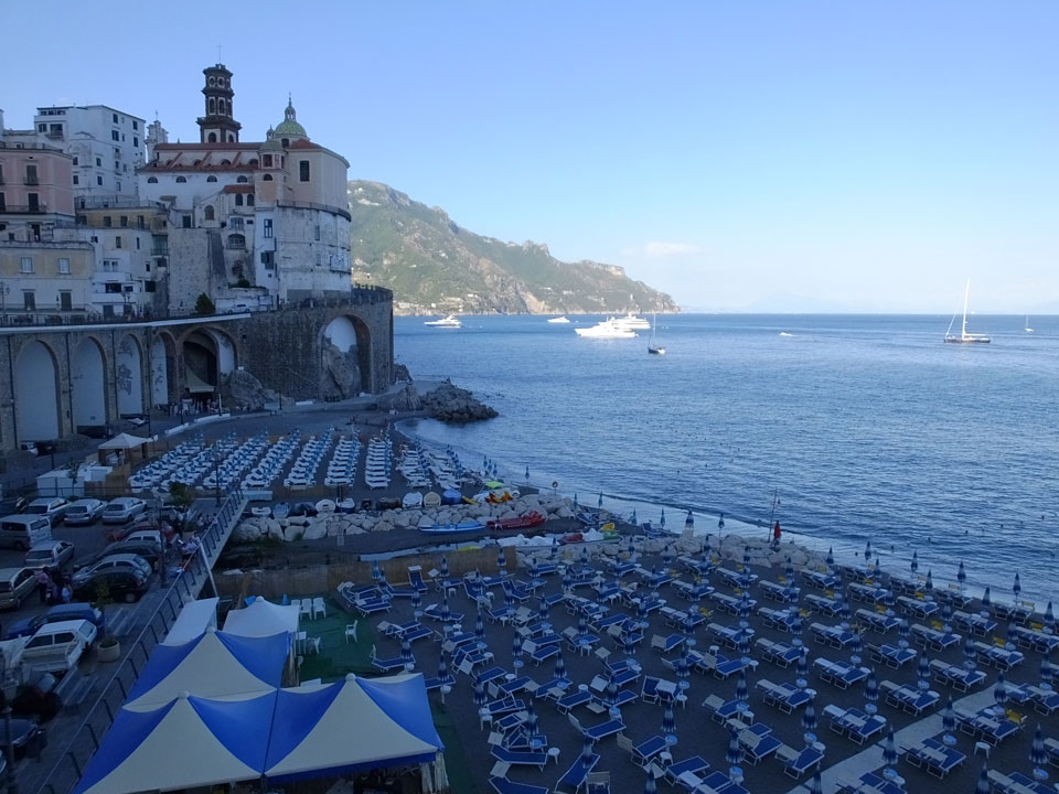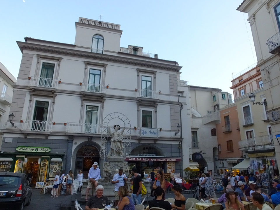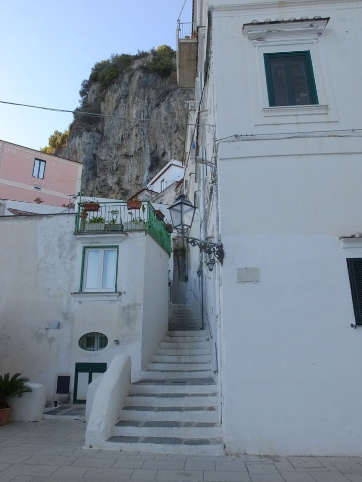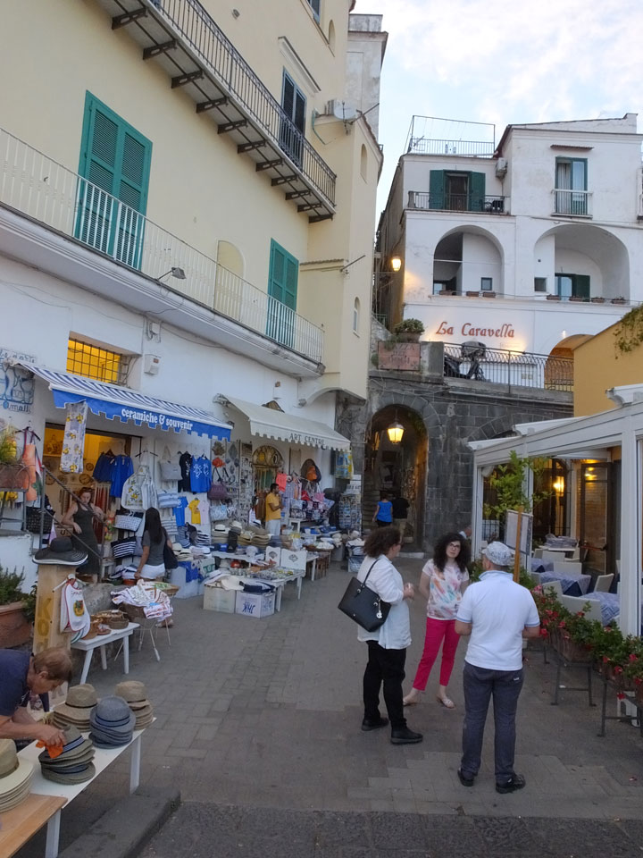 Es ging wieder hoch auf die Straße, an einer Kirche vorbei und dann durch einen langen Tunnel nach Amalfi. Dort schauten wir uns ebenfalls um. Die Stadt mit vielen Gängen war auch etwas Besonderes. Ich hatte inzwischen viel Hunger, sodass wir unser Abendessen gleich dort einnahmen. Ich hatte das Gericht, was ich Mittags verpasste und war zufrieden. Man kommt doch meistens um die €20-€25 für 2 Personen aus dem Restaurant. Ich brauchte nur Bargeld, hier ging mal wieder ein Automat nicht. Für zwei Bustickets reichte es noch.