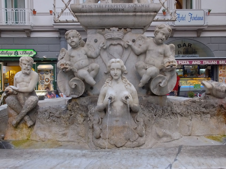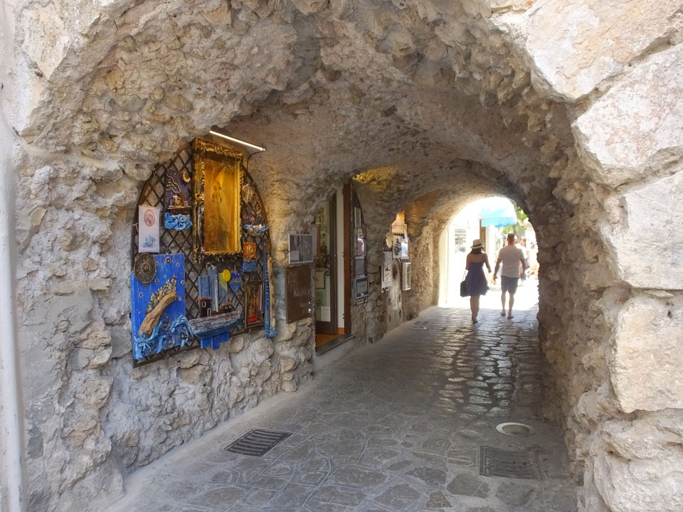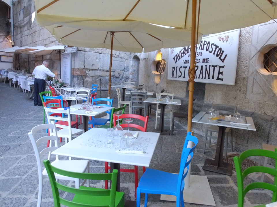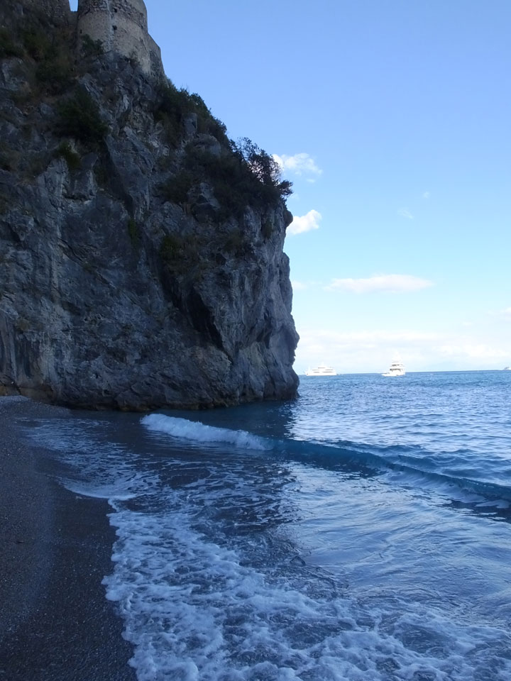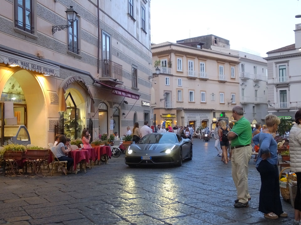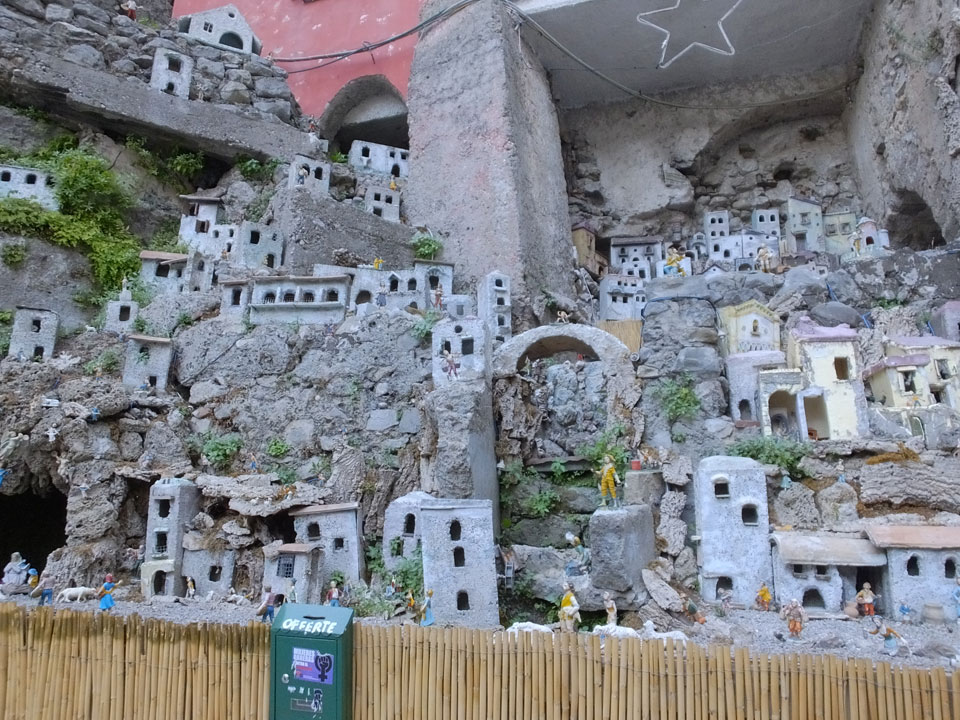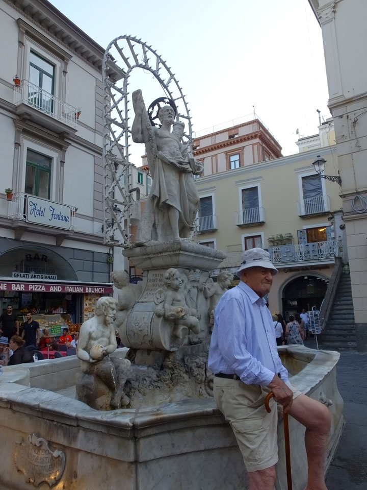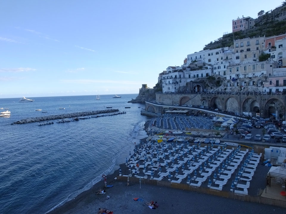 Es ging wieder hoch auf die Straße, an einer Kirche vorbei und dann durch einen langen Tunnel nach Amalfi. Dort schauten wir uns ebenfalls um. Die Stadt mit vielen Gängen war auch etwas Besonderes. Ich hatte inzwischen viel Hunger, sodass wir unser Abendessen gleich dort einnahmen. Ich hatte das Gericht, was ich Mittags verpasste und war zufrieden. Man kommt doch meistens um die €20-€25 für 2 Personen aus dem Restaurant. Ich brauchte nur Bargeld, hier ging mal wieder ein Automat nicht. Für zwei Bustickets reichte es noch.