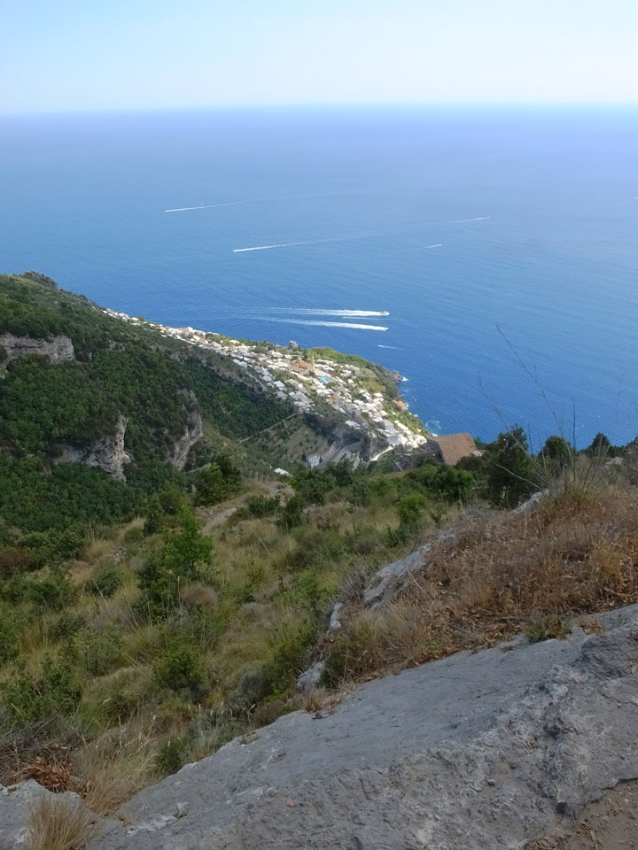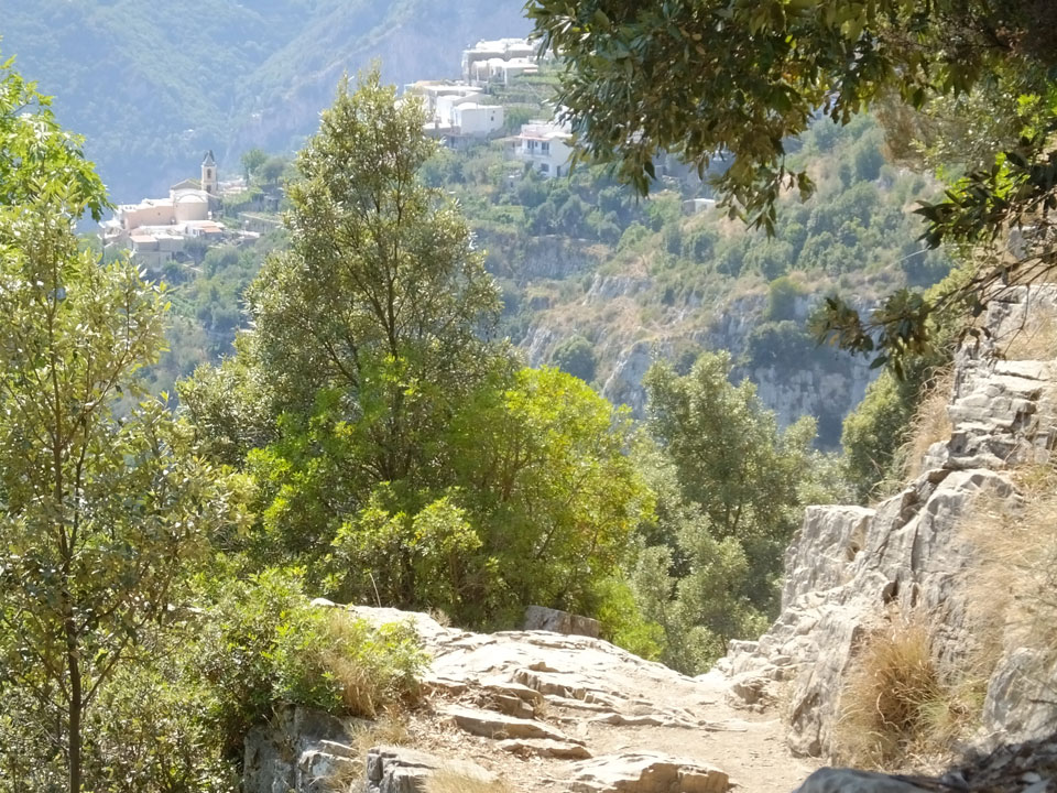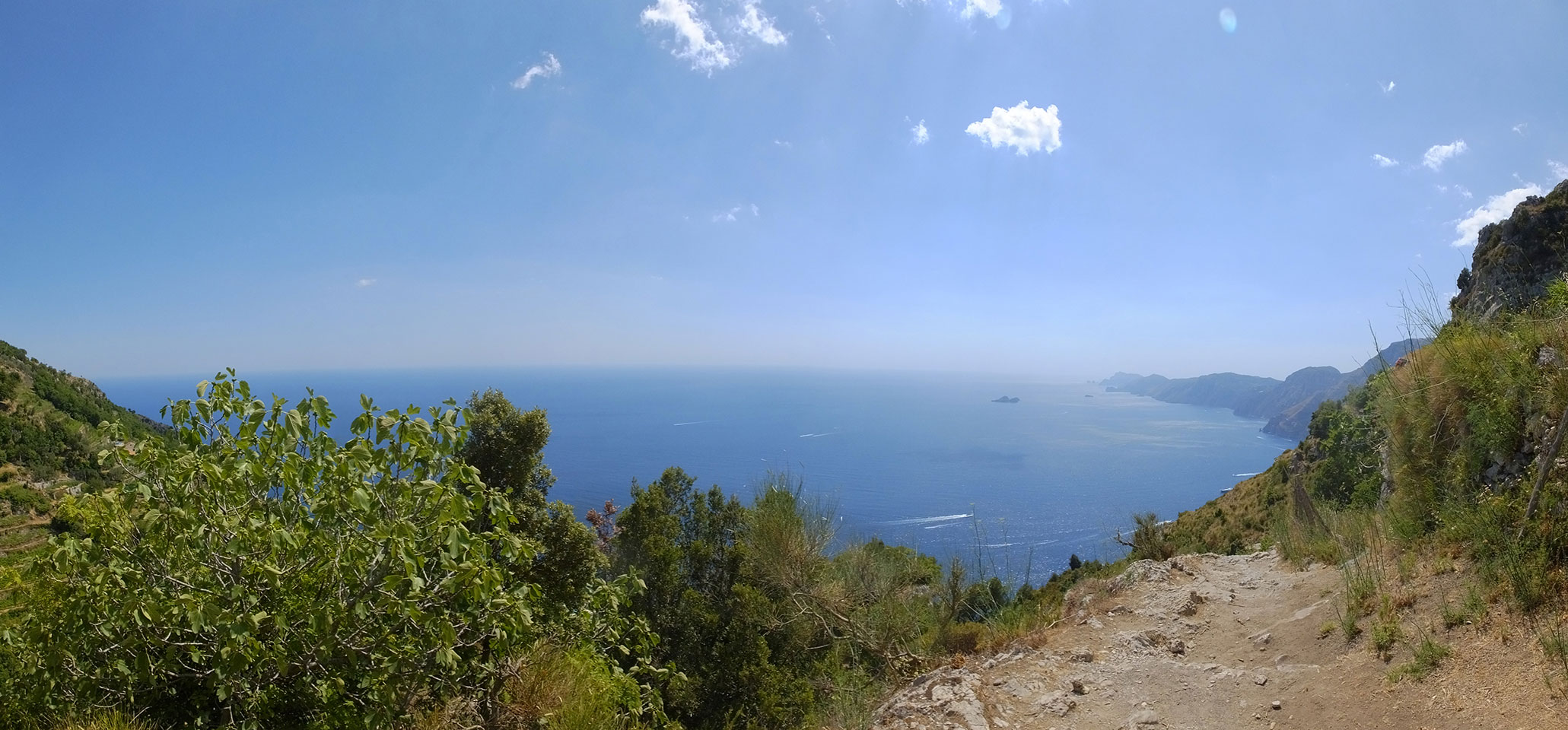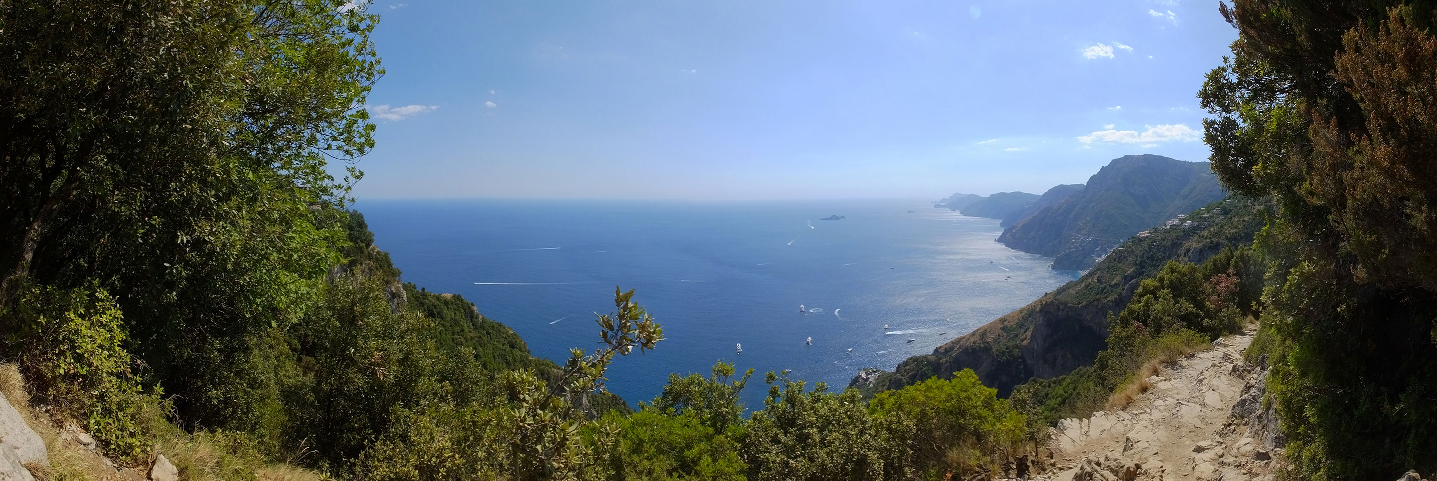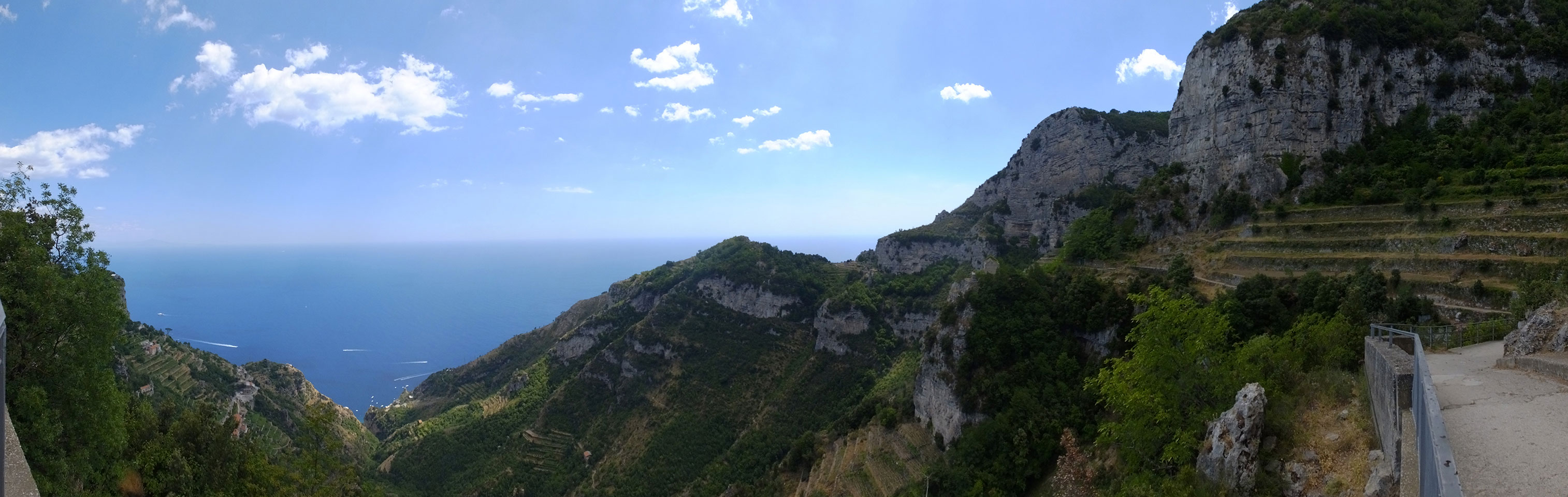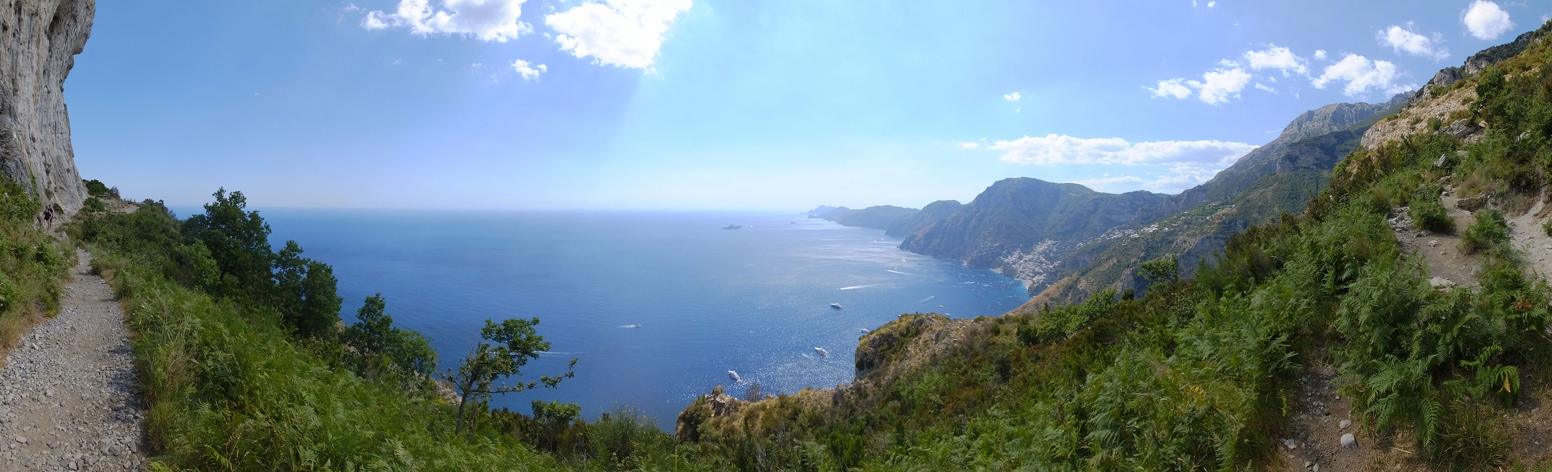 Der Busfahrer sagte auch Bescheid, schnelle Verabschiedung und los. Bomerano ist der Startpunkt für den „Path of the Gods“ (Il Sentiero degli Dei). Dieser Wanderweg am Berg entlang scheint ziemlich berühmt. Sehr gut ausgeschildert ging es zum Start, wo man schon einen Vorgeschmack auf die Aussicht über die Küste bekam. Der Weg wurde mit 3½ h prognostiziert. Mal sehen…