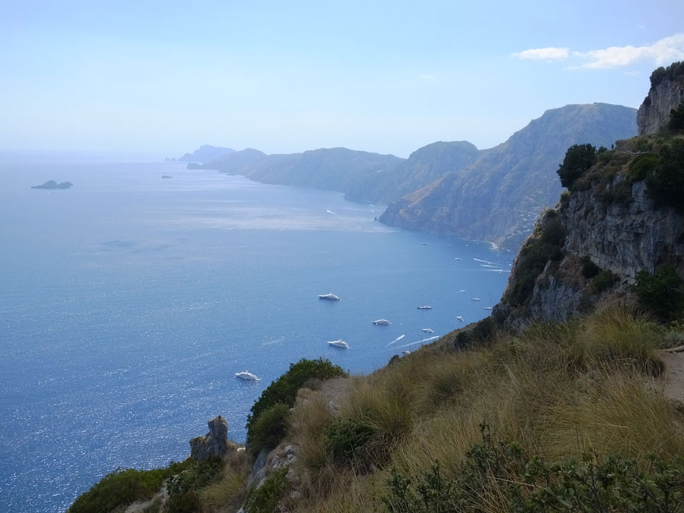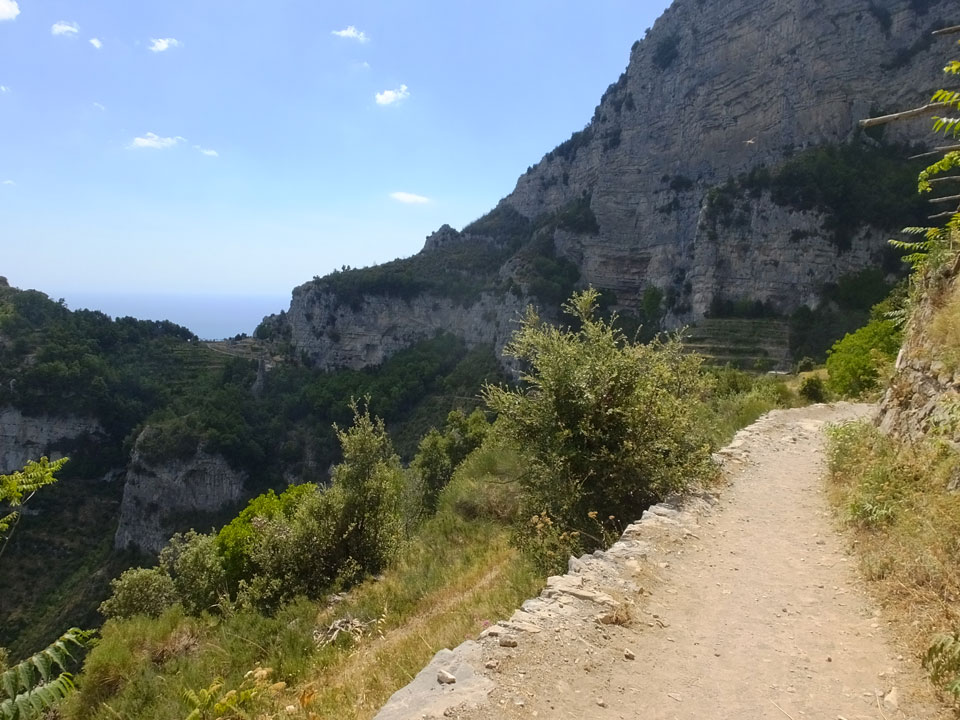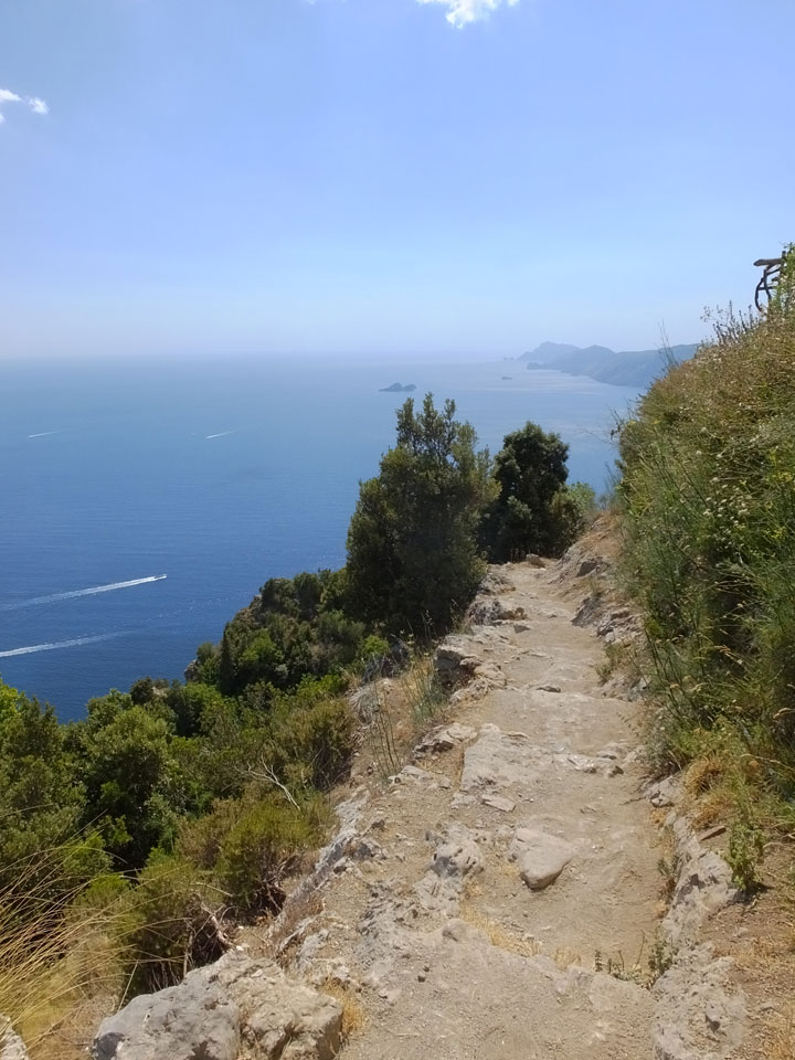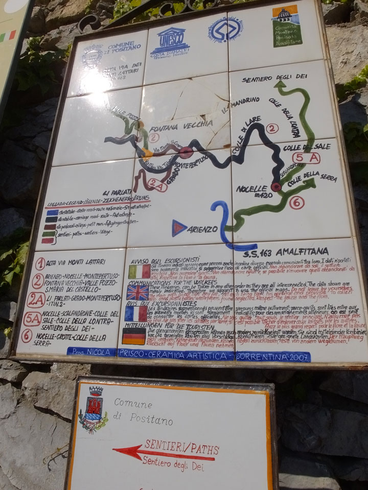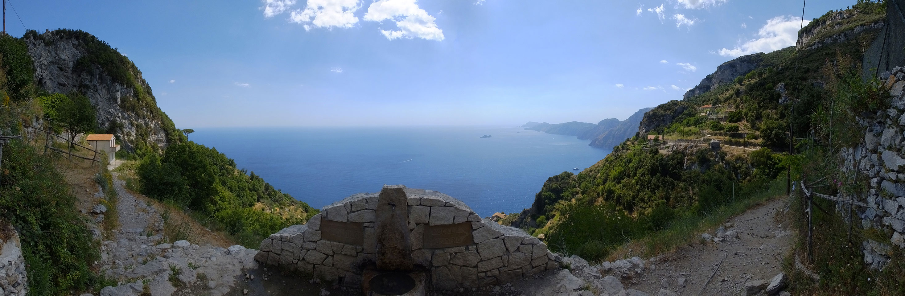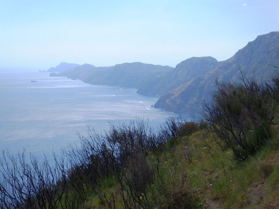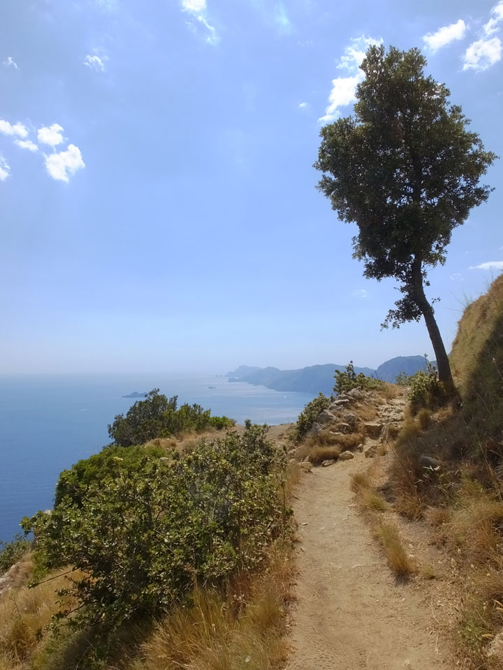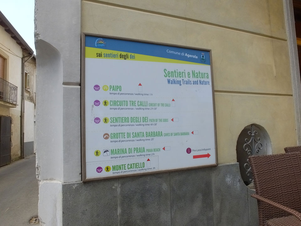 Der Busfahrer sagte auch Bescheid, schnelle Verabschiedung und los. Bomerano ist der Startpunkt für den „Path of the Gods“ (Il Sentiero degli Dei). Dieser Wanderweg am Berg entlang scheint ziemlich berühmt. Sehr gut ausgeschildert ging es zum Start, wo man schon einen Vorgeschmack auf die Aussicht über die Küste bekam. Der Weg wurde mit 3½ h prognostiziert. Mal sehen…