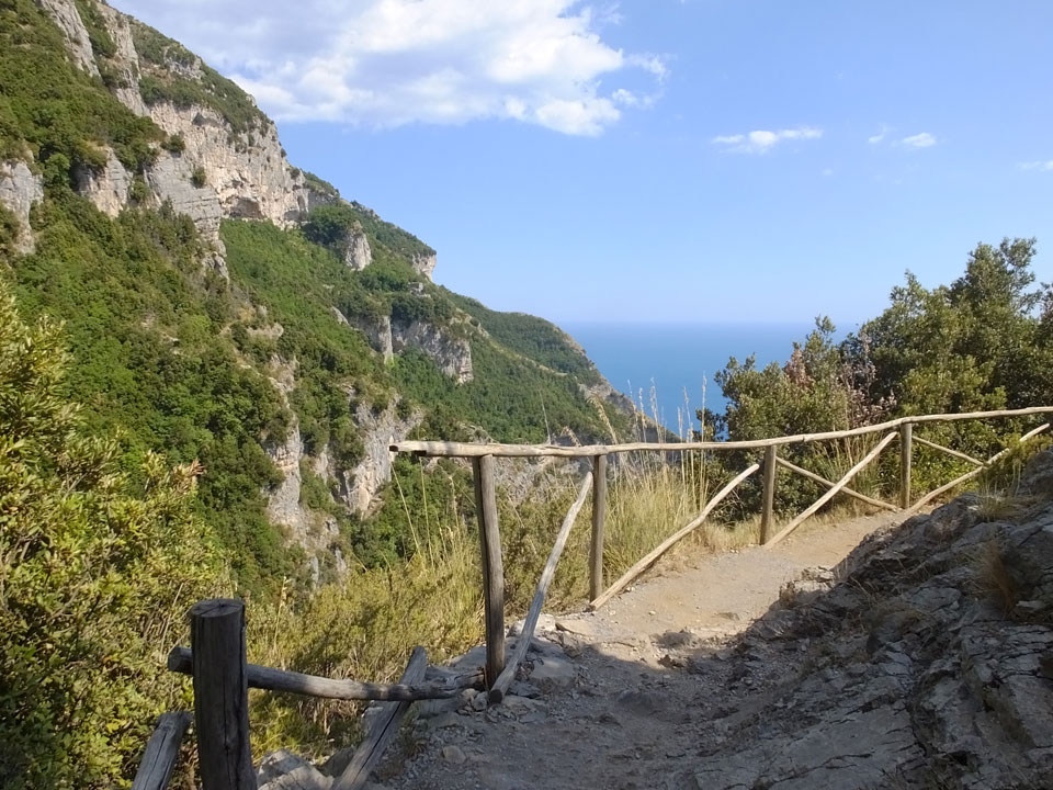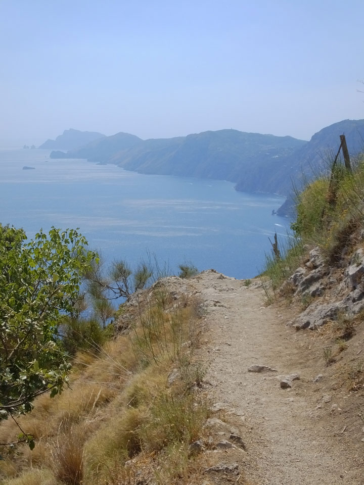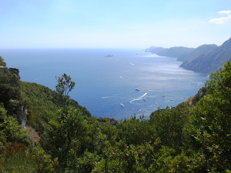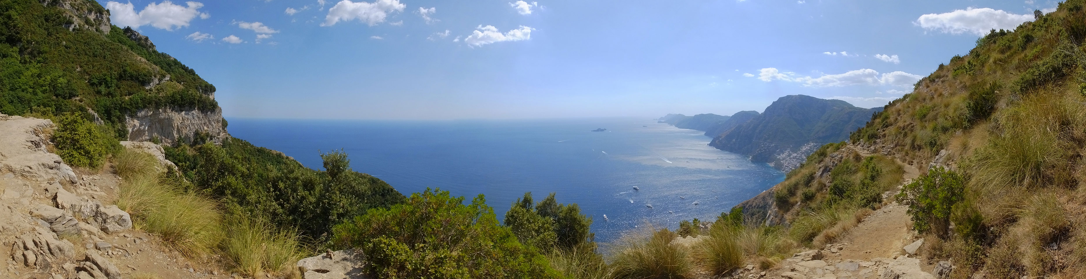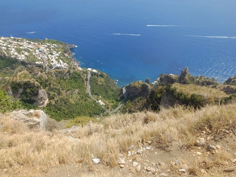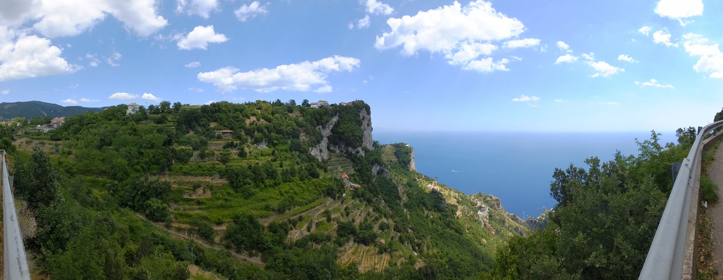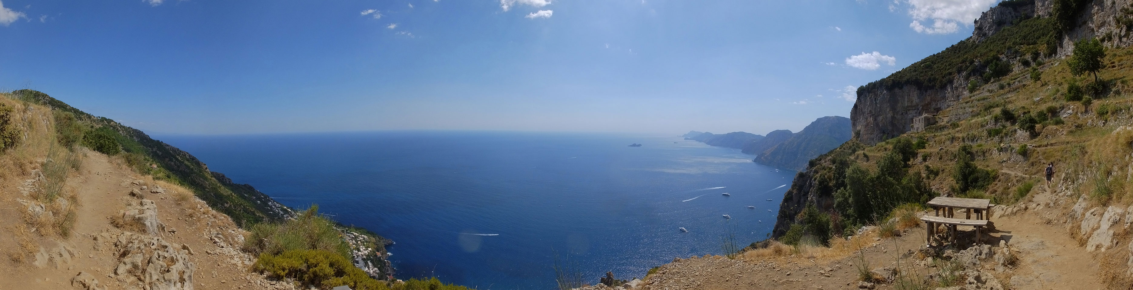 Der Busfahrer sagte auch Bescheid, schnelle Verabschiedung und los. Bomerano ist der Startpunkt für den „Path of the Gods“ (Il Sentiero degli Dei). Dieser Wanderweg am Berg entlang scheint ziemlich berühmt. Sehr gut ausgeschildert ging es zum Start, wo man schon einen Vorgeschmack auf die Aussicht über die Küste bekam. Der Weg wurde mit 3½ h prognostiziert. Mal sehen…