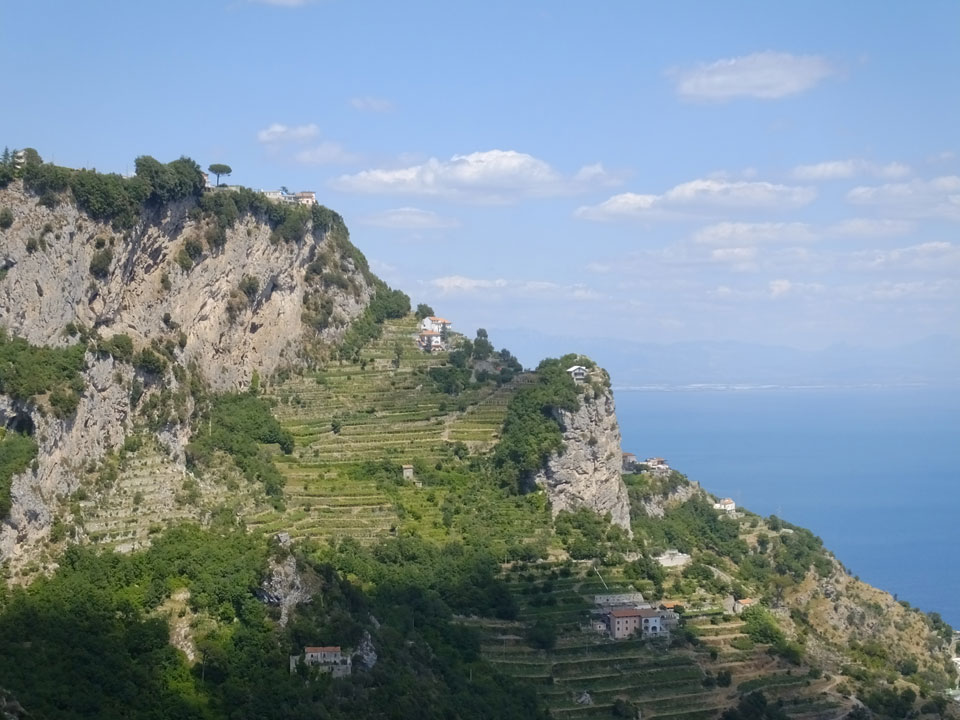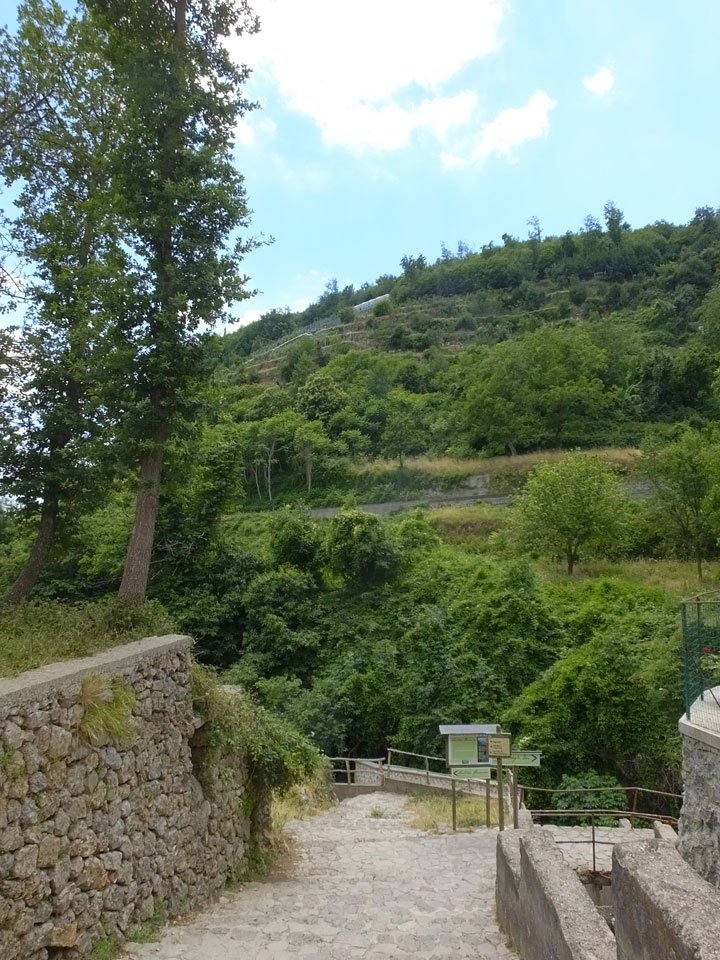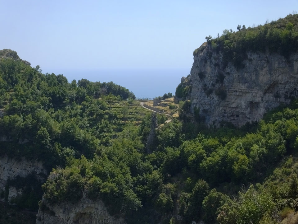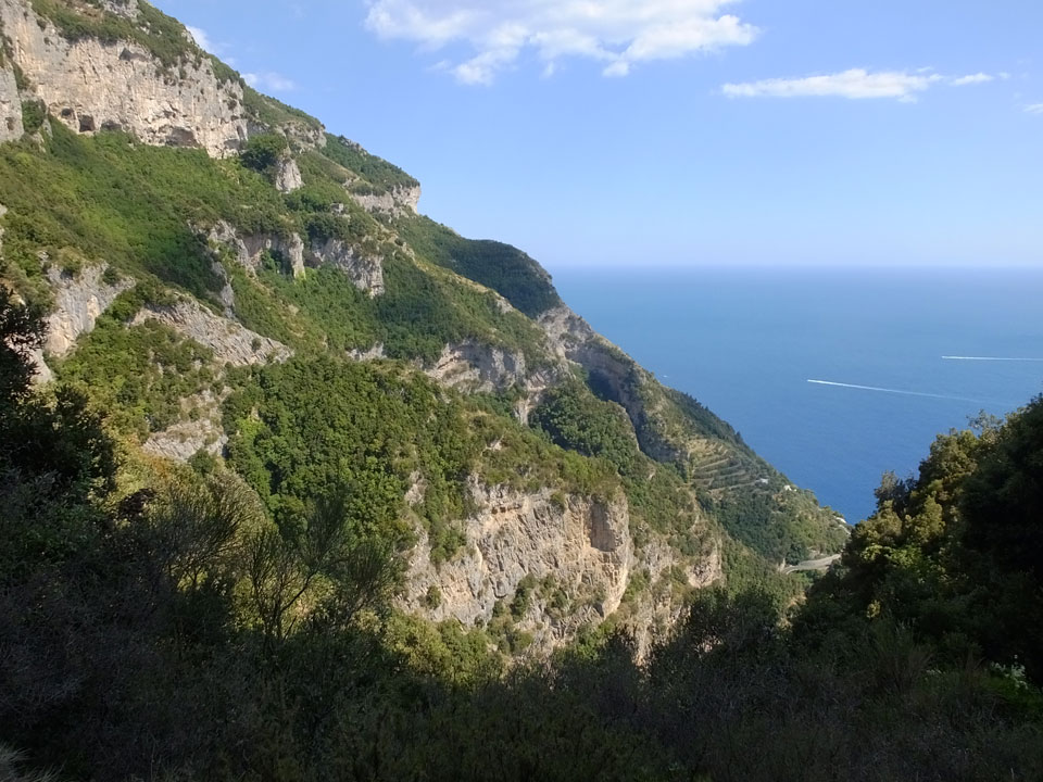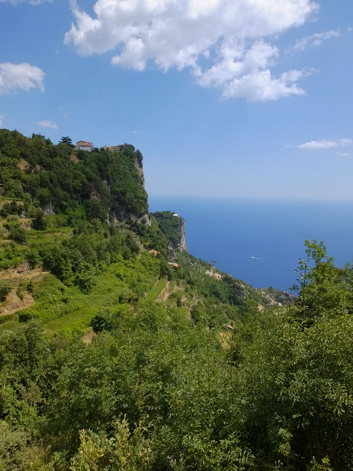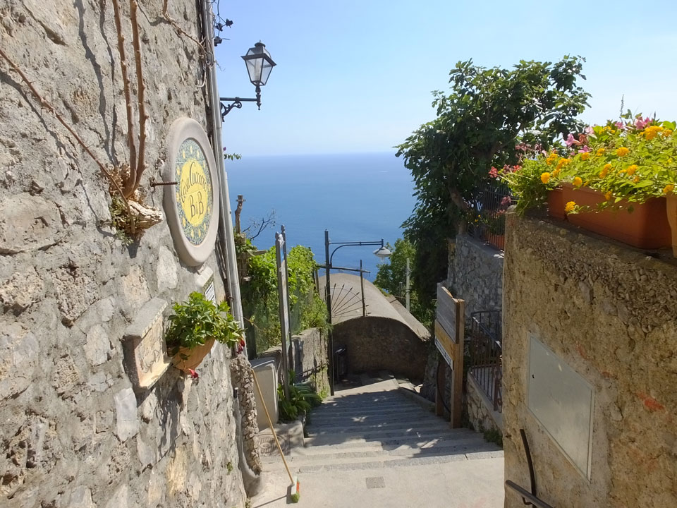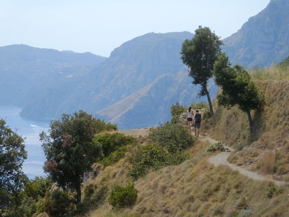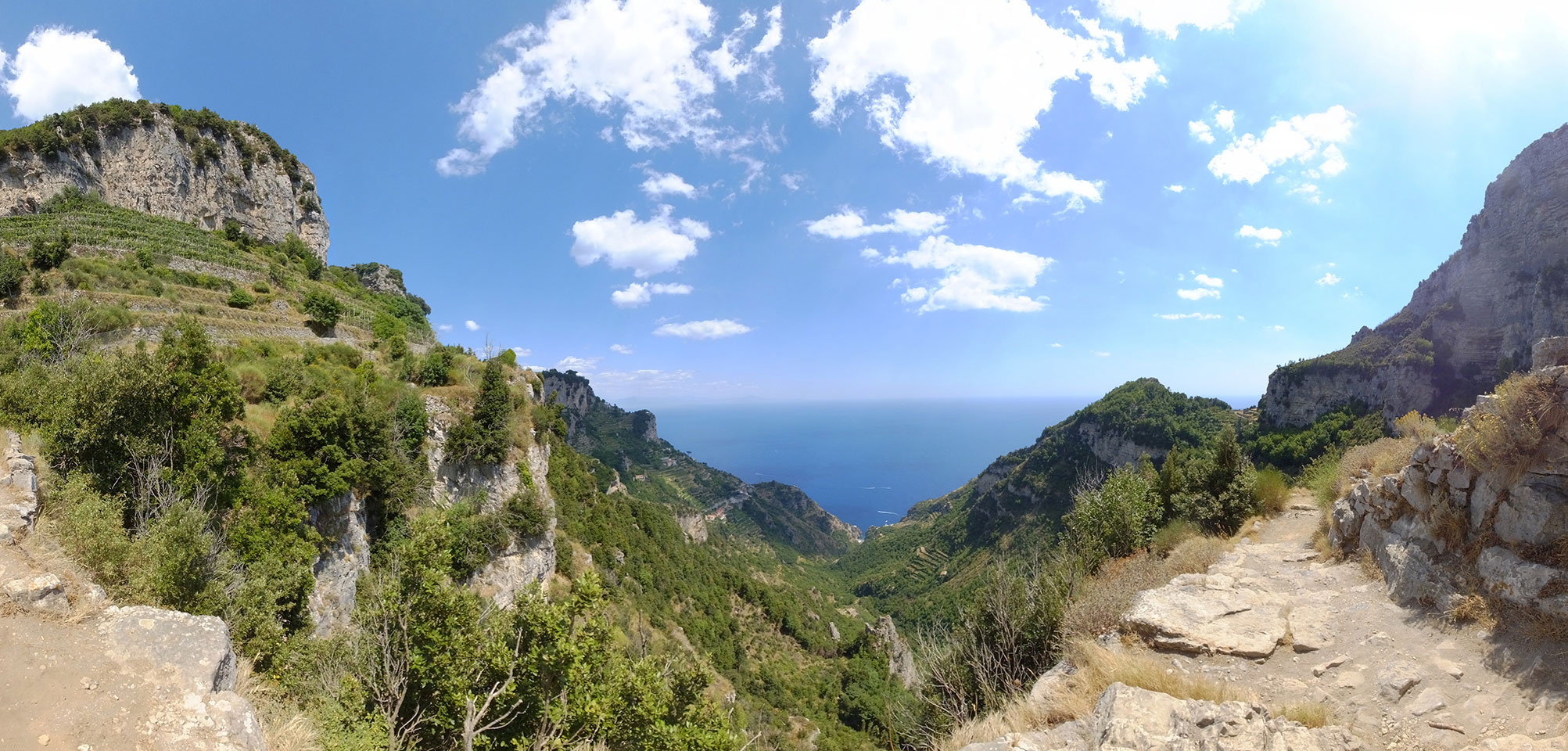 Der Busfahrer sagte auch Bescheid, schnelle Verabschiedung und los. Bomerano ist der Startpunkt für den „Path of the Gods“ (Il Sentiero degli Dei). Dieser Wanderweg am Berg entlang scheint ziemlich berühmt. Sehr gut ausgeschildert ging es zum Start, wo man schon einen Vorgeschmack auf die Aussicht über die Küste bekam. Der Weg wurde mit 3½ h prognostiziert. Mal sehen…
