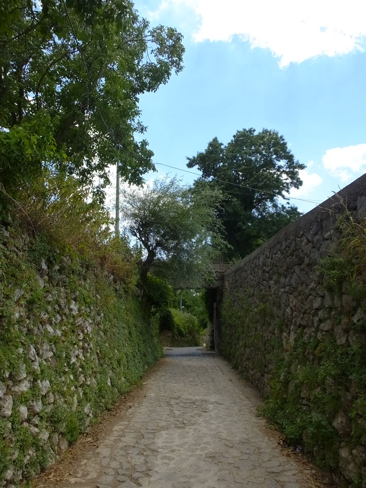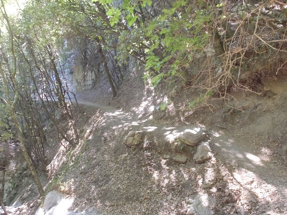 Das Wetter war super. Nicht nur Sonne, auch mal eine Wolke, was beim Wandern gut tut. Mir kamen die ersten Leute nach ca. 10′ entgegen. Sie fragten erschöpft, wie weit es noch sei. Da konnte ich wenigstens gute Nachrichten geben. Während ich bergab nach Nocelle spazierte, gingen echt Leute den Berg hinauf. Ich kam gut voran, knipste herum und war guter Dinge. Wasser hatte ich auch genug dabei, kam natürlich trotzdem in’s Schwitzen.