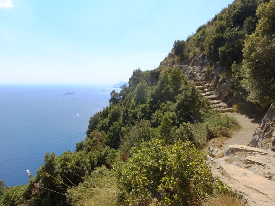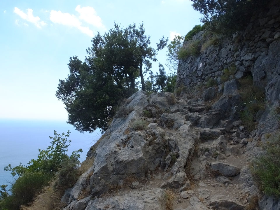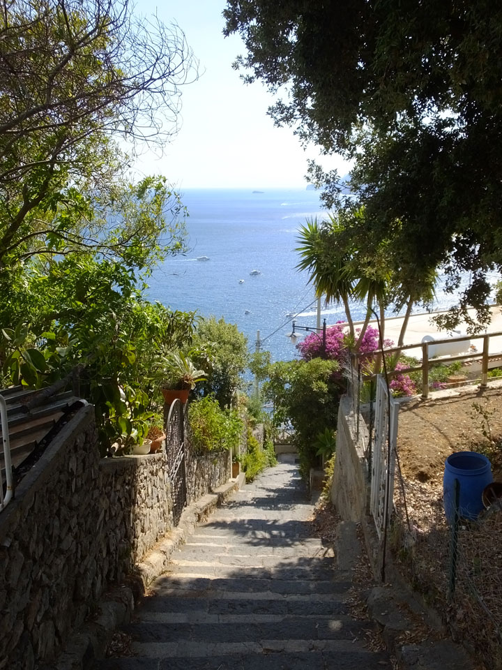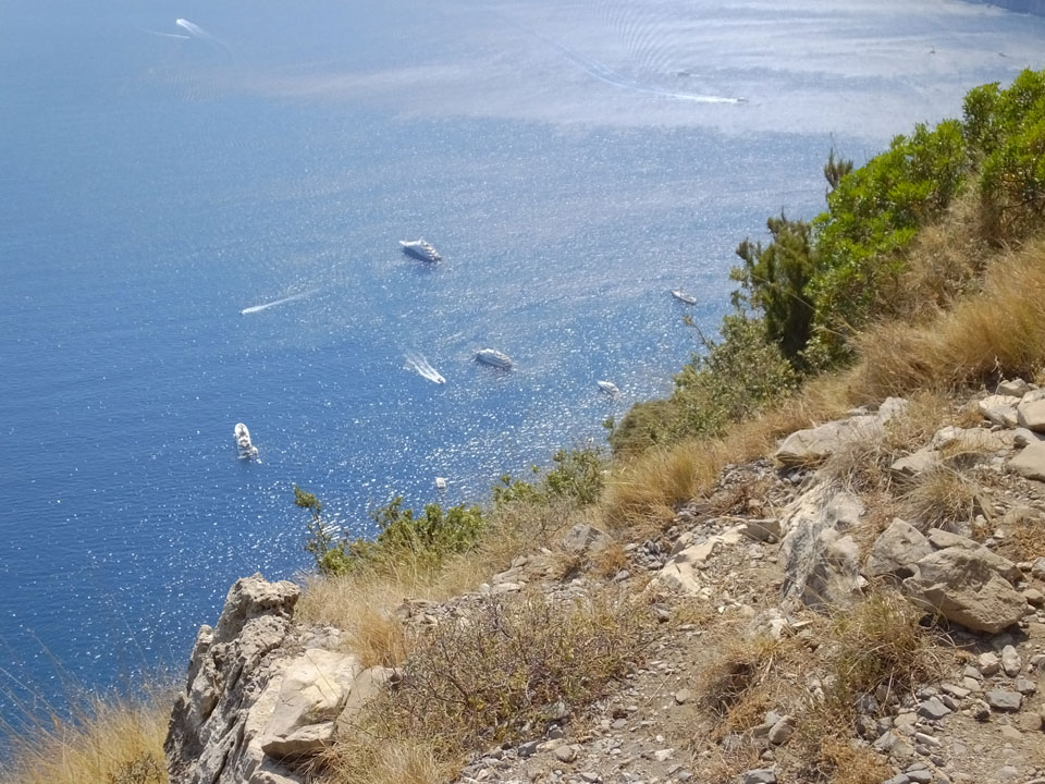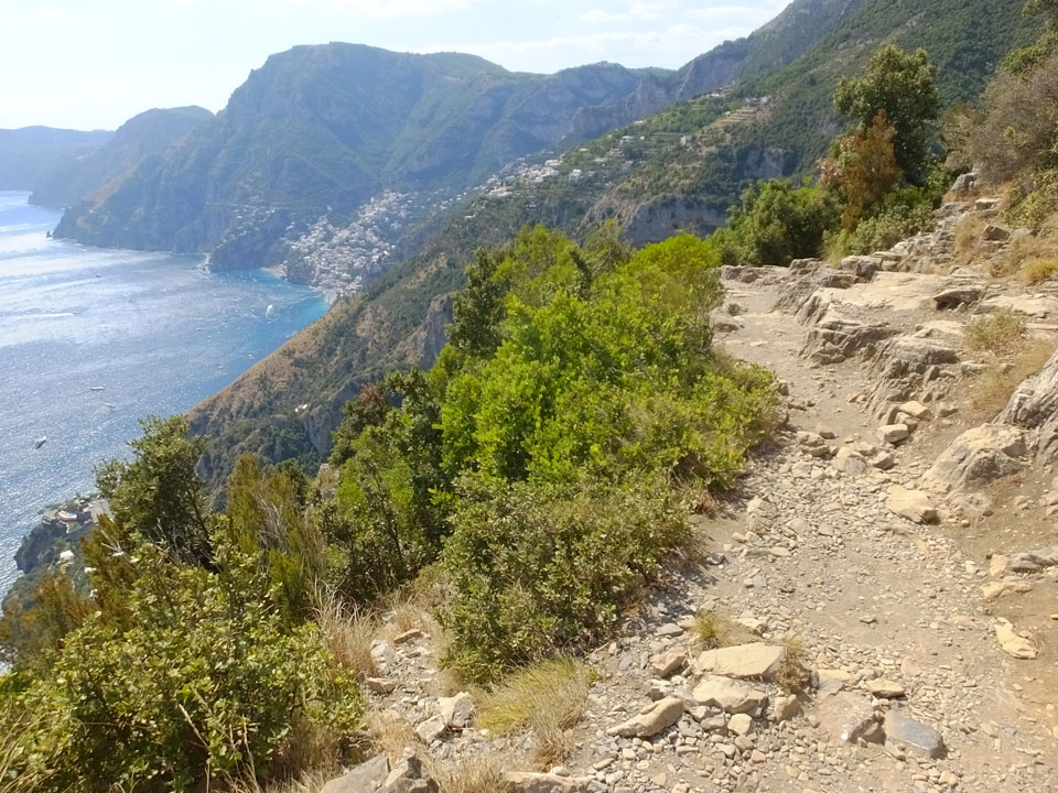 Immer wieder kamen mir Leute entgegen. Weil ich etwas schnell machte, überholte ich aber auch einige. Der Wanderweg war relativ einfach. Mit meinen Straßenschuhen hätte ich bei den vielen Steinen aber auch besser ausgestattet sein können. Meine bekannte fuhr mit dem Bus nach Positano, was ich angesichts einige Felsen dann doch für eine gute Idee hielt. Meine Schuhe nahmen etwas Schaden aber ich schaffte es bis zum Ende in gerade 1 ½h. Das war zwar gut aber eben auch etwas enttäuschend, denn gern wäre ich noch weiter gelaufen.