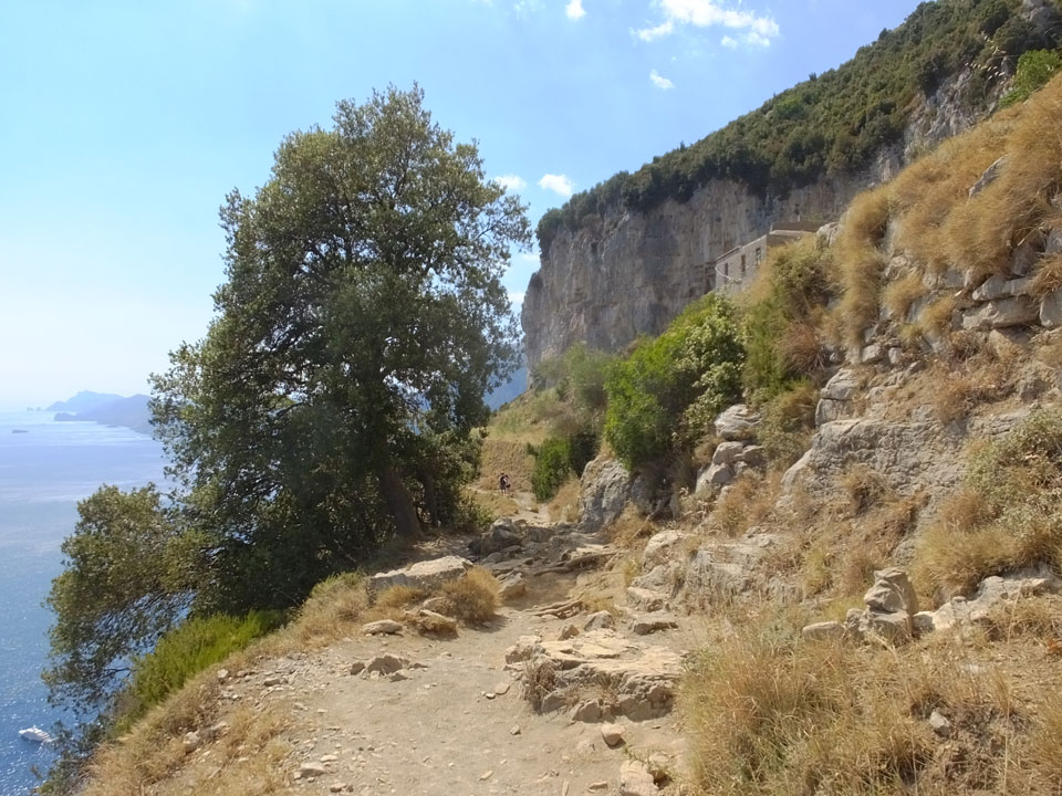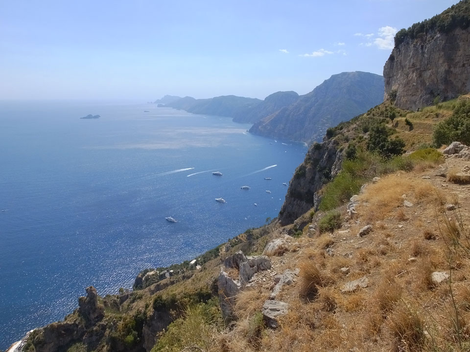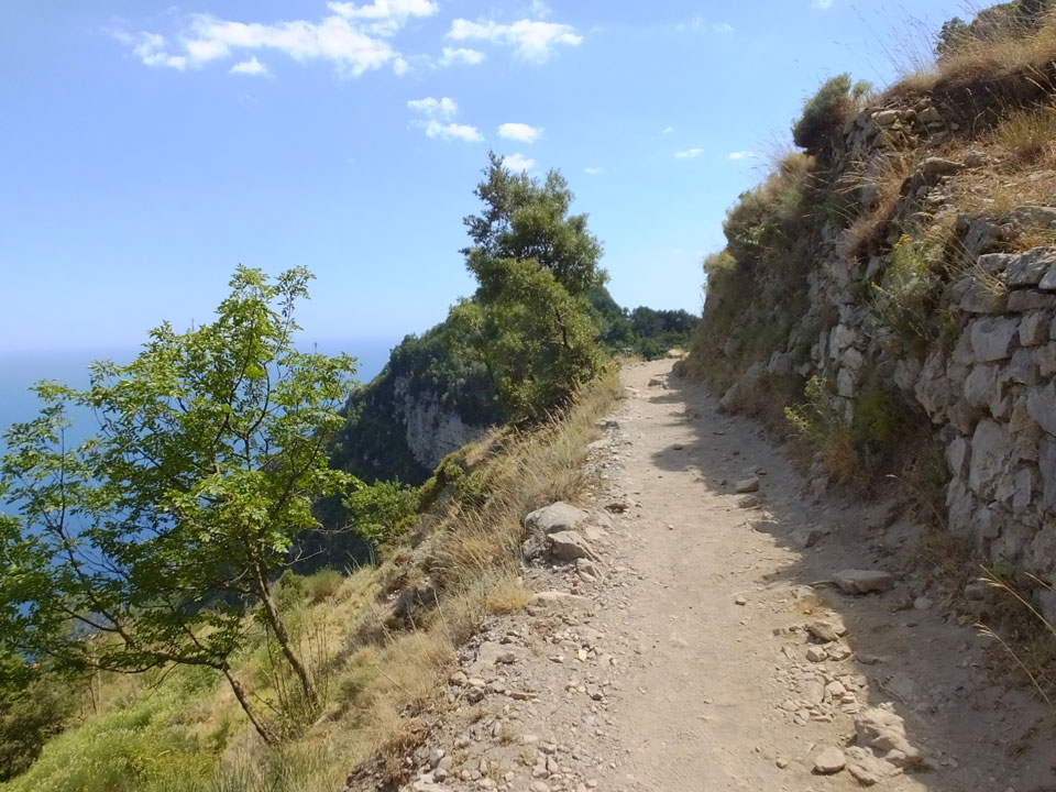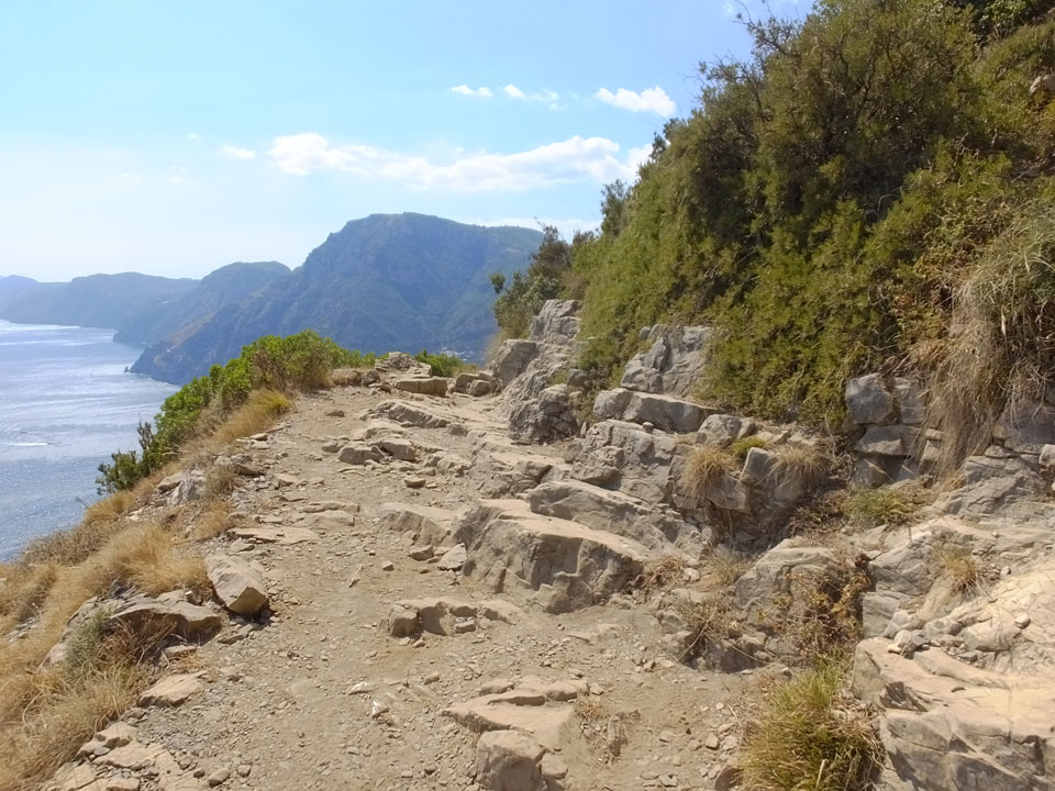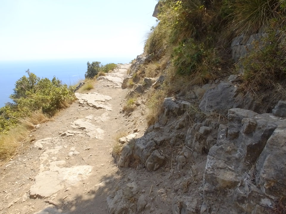 Immer wieder kamen mir Leute entgegen. Weil ich etwas schnell machte, überholte ich aber auch einige. Der Wanderweg war relativ einfach. Mit meinen Straßenschuhen hätte ich bei den vielen Steinen aber auch besser ausgestattet sein können. Meine bekannte fuhr mit dem Bus nach Positano, was ich angesichts einige Felsen dann doch für eine gute Idee hielt. Meine Schuhe nahmen etwas Schaden aber ich schaffte es bis zum Ende in gerade 1 ½h. Das war zwar gut aber eben auch etwas enttäuschend, denn gern wäre ich noch weiter gelaufen.