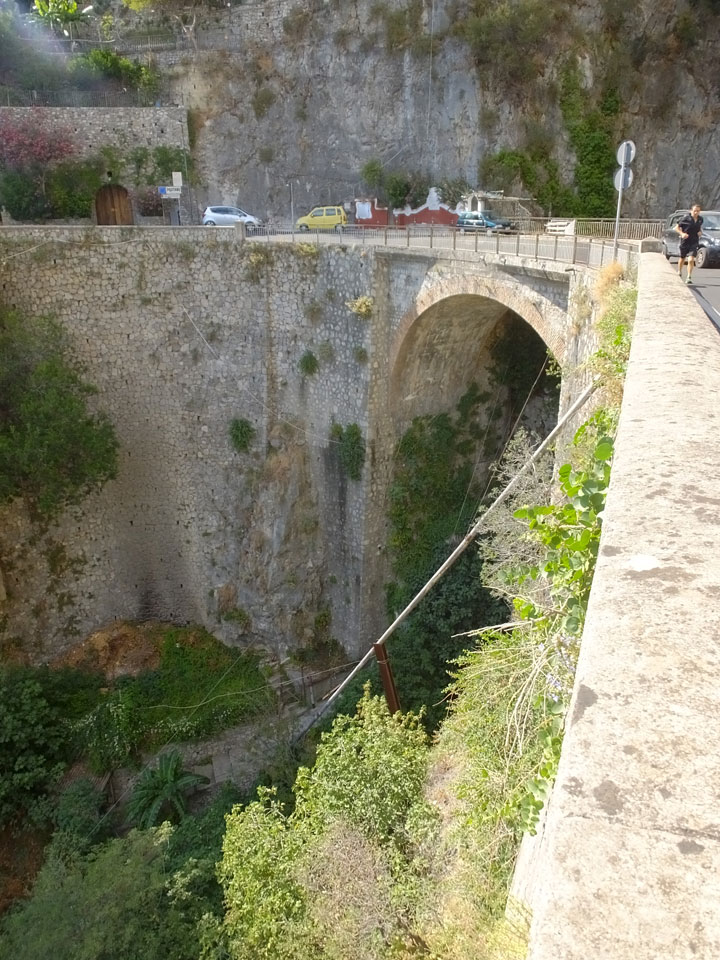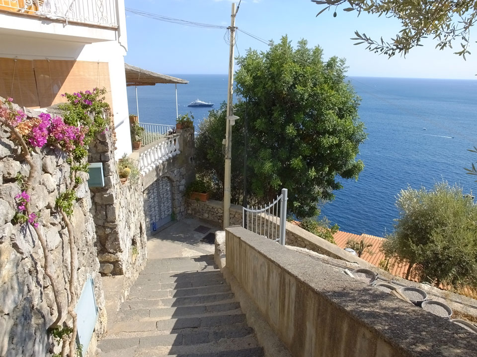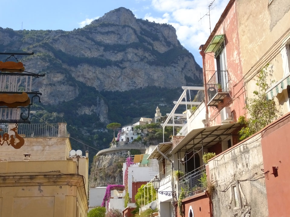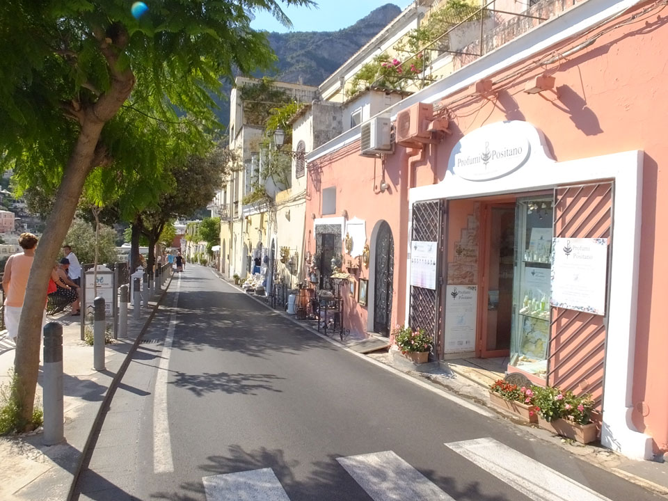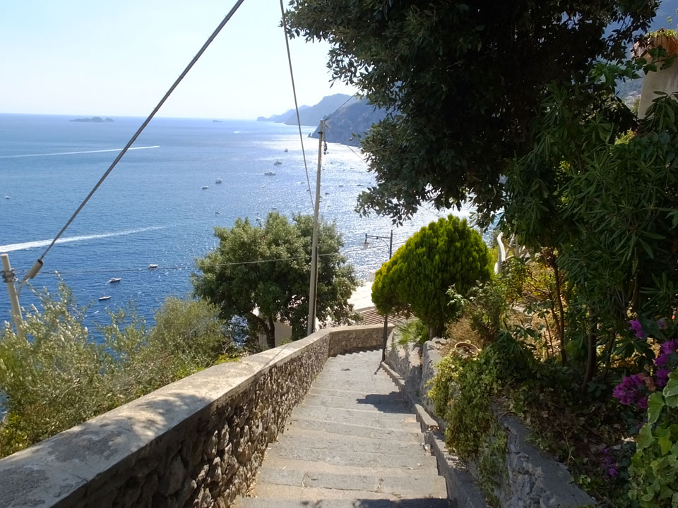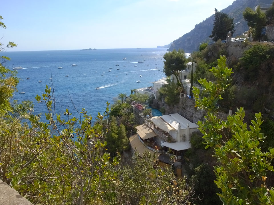Unten angekommen, 2h nach dem Ausstieg aus dem Bus in Bomerano, dachte ich, dass ich mit dem Bus die eine Station bis Positano fahre. Ein Bus kam auf der gegenüberliegenden Straßenseite vorbei und machte für die dort wartenden Leute nicht mal Halt. Der Bus war einfach zu voll. Ich ging also auch gleich los, wartete nicht die 10-15′ auf den nächsten. Das wäre doch witzig gewesen, wenn ich die Bekannte im Bus getroffen hätte aber dazu war ich nun doch zu spät dran.