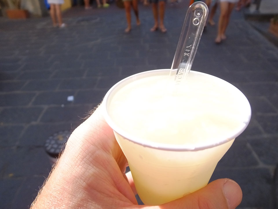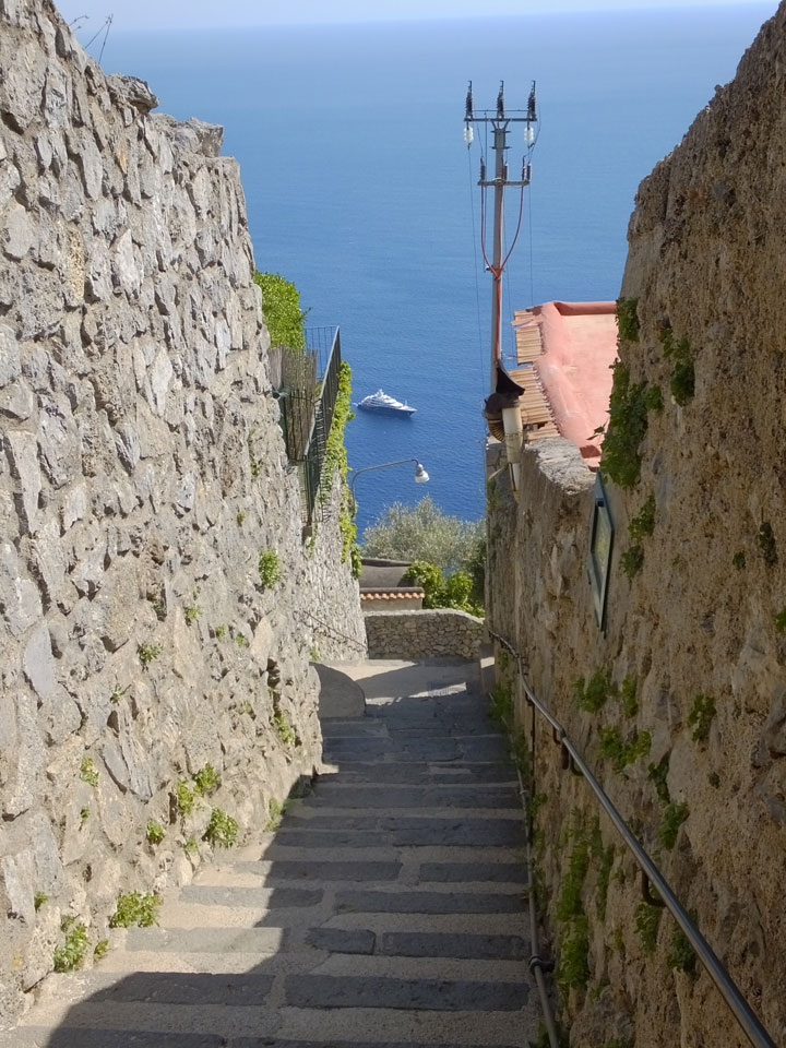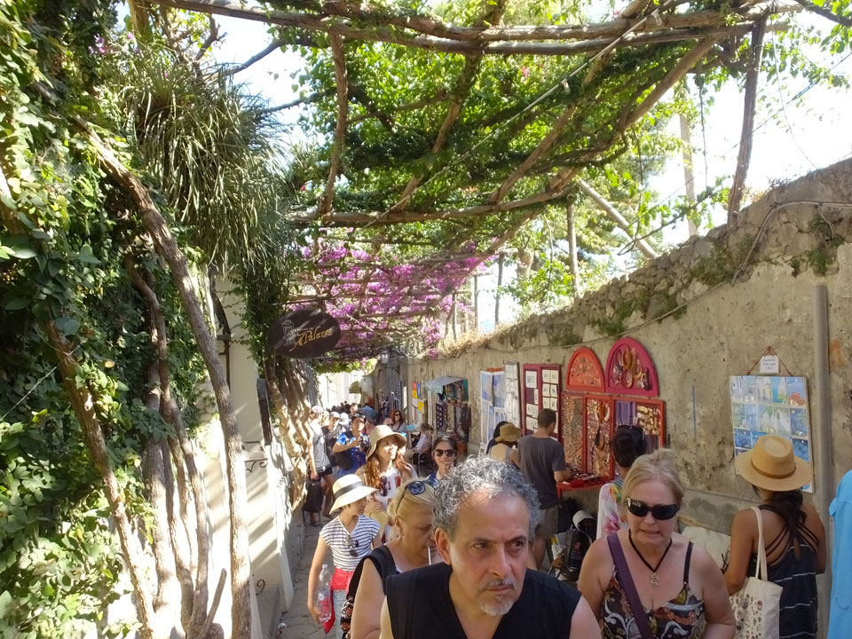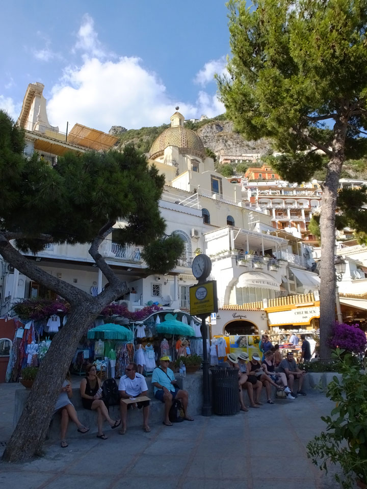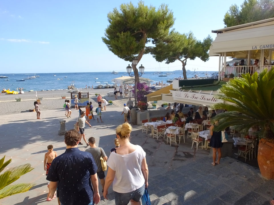 Am Straßenrand spazierte ich nach Positano. Mit den vielen Autos und wenig Platz war das wneiger angenehm. In Positano dann war ich beeindruckt. Der Ort ist fein herausgeputzt, viele Touristen schlendern durch die Gassen. Ich holte mir Cash, ein Zitronen-Eis, ging zum Strand. Dort sah ich jemanden nicht, versuchte sie zu erreichen. Ich hatte meine polnische SIM in ihr Handy gesteckt, damit sie wenigsten angerufen werden kann. Internet Roaming ging hier nicht aber so trafen wir und schließlich – alles gebongt.