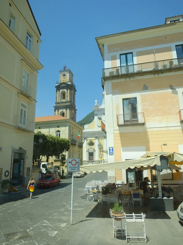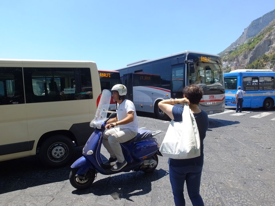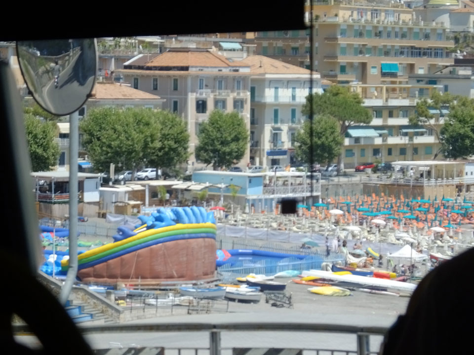 Der erstbeste Bus war jedoch der Falsche. Das erste Mal standen zwei Busse da. Der Kontrolleur wies uns an den richtigen Bus nach Amalfi. So ging alles gut, mit dem 24h Ticket. In Amalfi stiegen wir in den Bus nach Salerno um. Diesen Teil der Küste sahen wir bisher noch nicht. Auch da waren die Straßen eng. Einige nette Urlaubsorte gibt’s auch da.