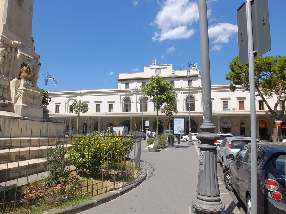 Durch den zähen Verkehr kamen wir ein paar Minuten zu spät für die Verbindung nach Paestum an. Der nächste Bus sollte erst in 1 1/2h fahren. Wir machten etwas Rast doch ich checkte die Site der Deutschen Bahn und sah eine Zugverbindung früher. Also liefen wir zum Bahnhof.