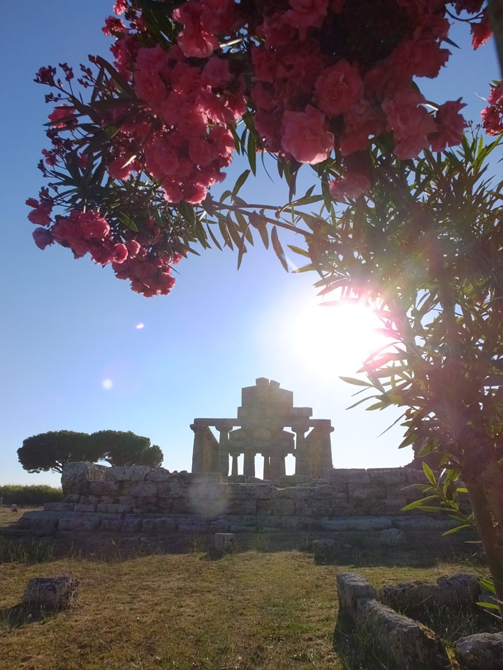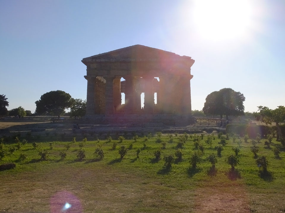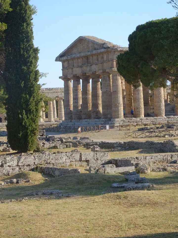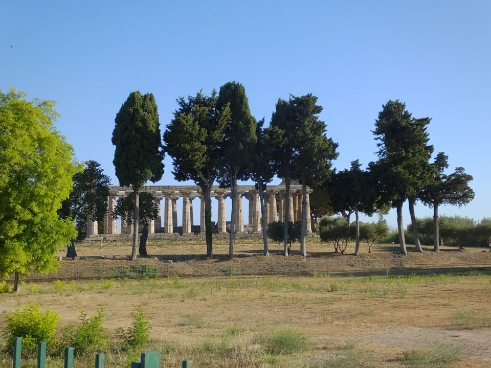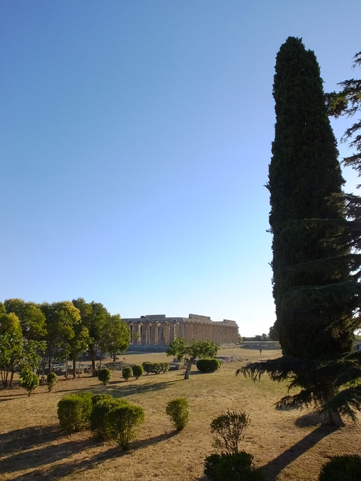 Ich kaufte Tickets für den Regionalzug – €2,80 statt €9 pro Person. Das war eine gute Idee, denn der Intercity hatte am Ende eine Stunde Verspätung. Im Raionalzug dann ging’s auch fix nach Paestum – ca 40′ Fahrt.