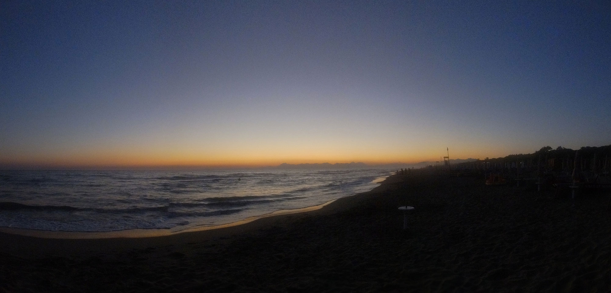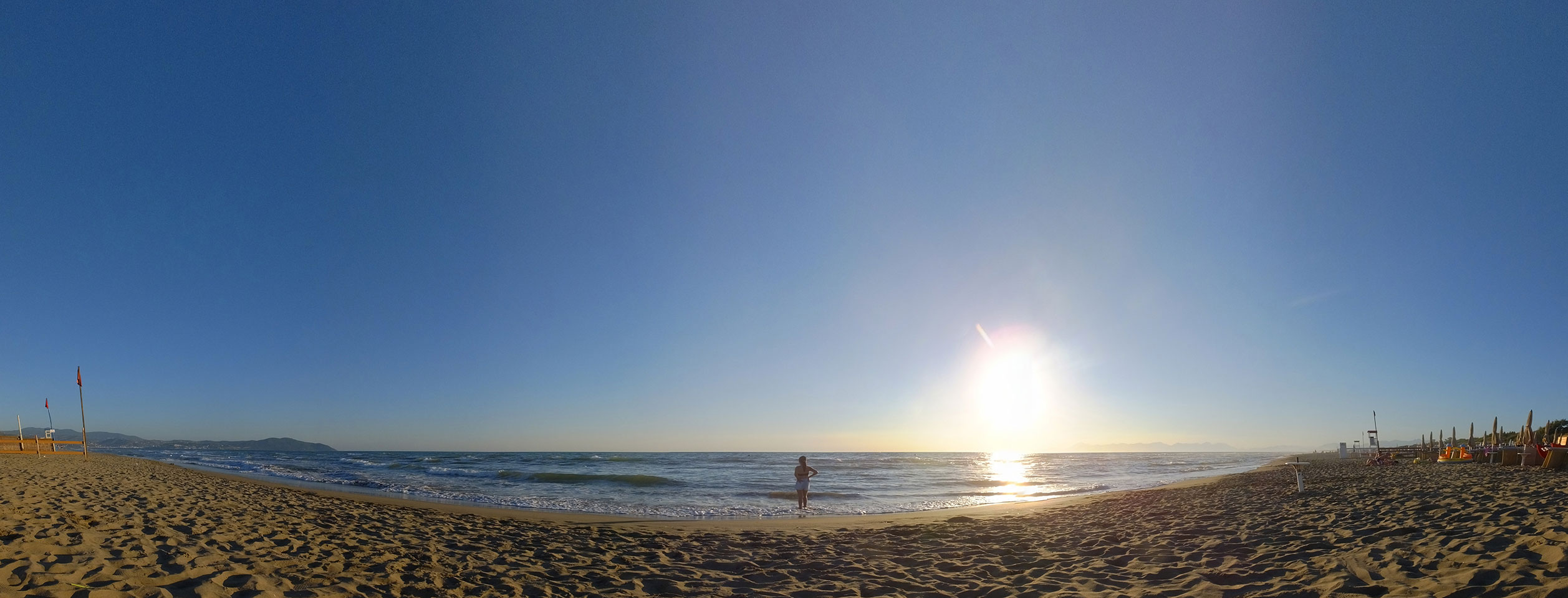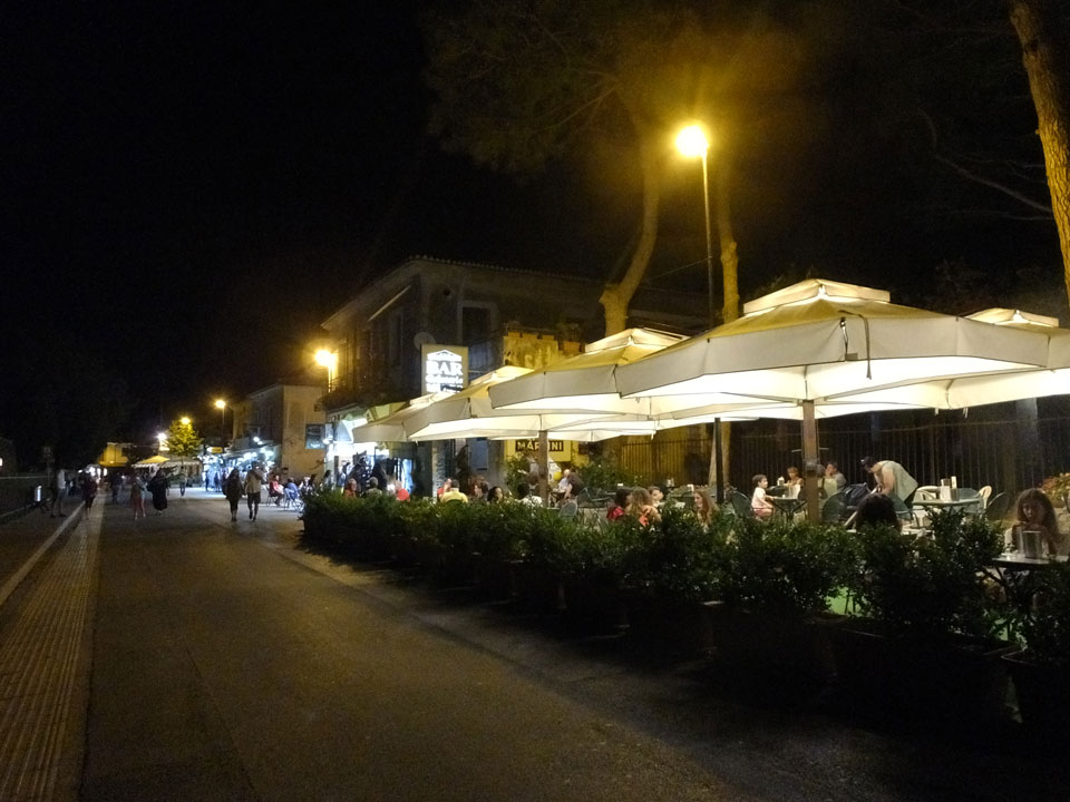 Ein ganzen Stückchen liefen wir, vorbei an uralten Ruinen Paestums kamen dann in die touristische Strandgegend. Die meisten Leute kamen uns entgegen. Zum Sonnenuntergang dann aber war alles fantastisch super. Man sah die Amalfi-Küste in der Ferne. Der Sonnenuntergang mit der Steilküste sah super aus. Mit Limoncello stießen wir auf eine fantastische Reise an. Das Meiste lief perfekt. Beschwipst ging es schneller zurück, Abendessen mit Blick auf einen Tempel und dann in’s Hotel.