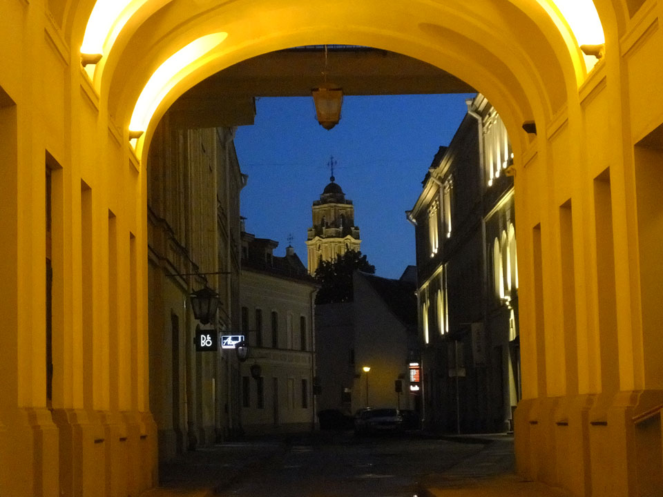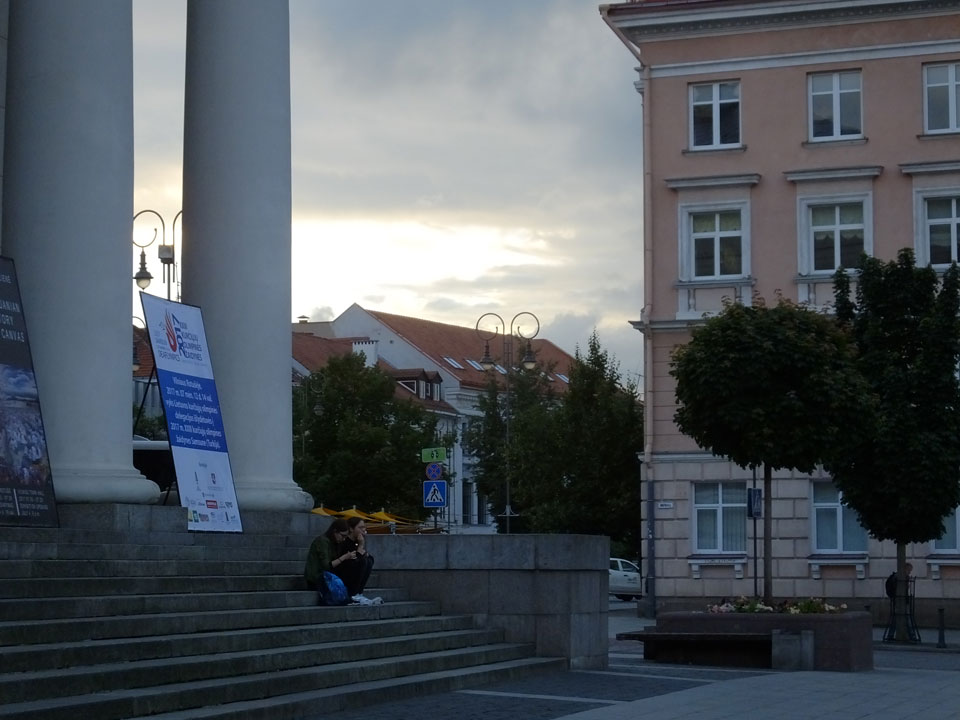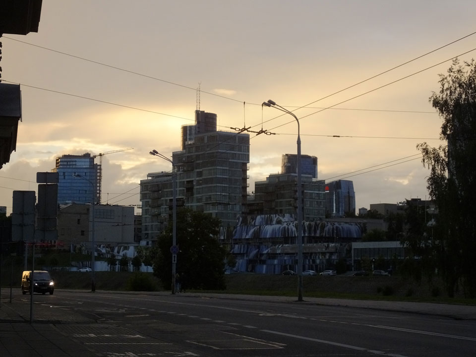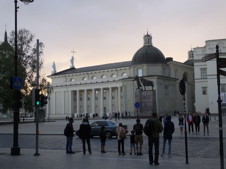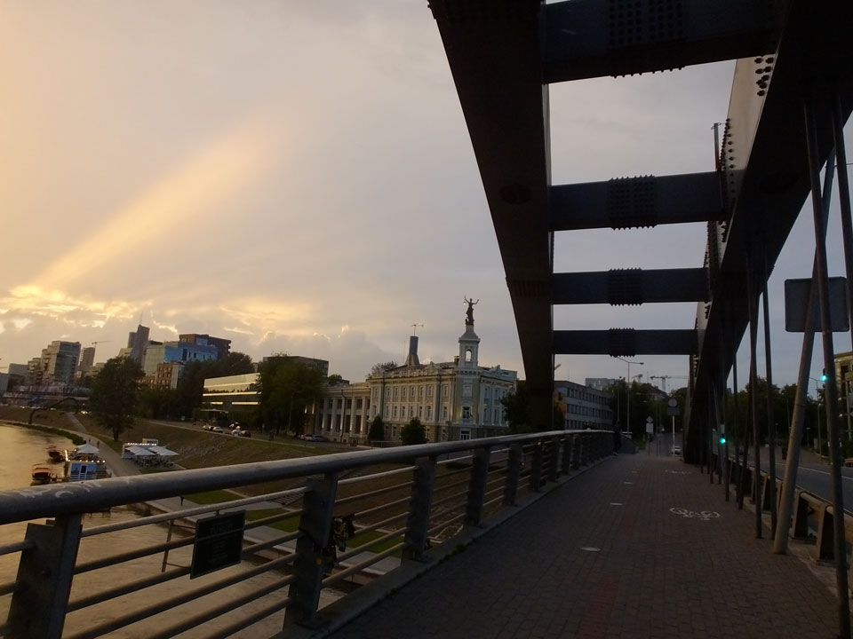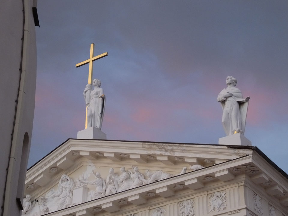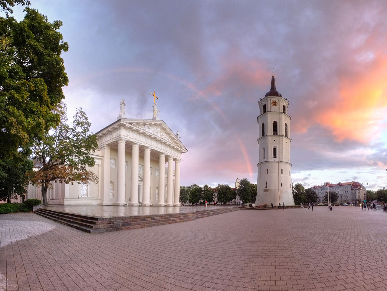Die Wolken, der Sonnenuntergang und Regen brachten Regenbogen hervor. Ich knipste einige Bilder, die ich so noch nicht von Vilnius vor die Linse bekam. Die Panoramen an der Kathedrale waren dann auch was Besonderes – kitschig aber eben farblich neu.