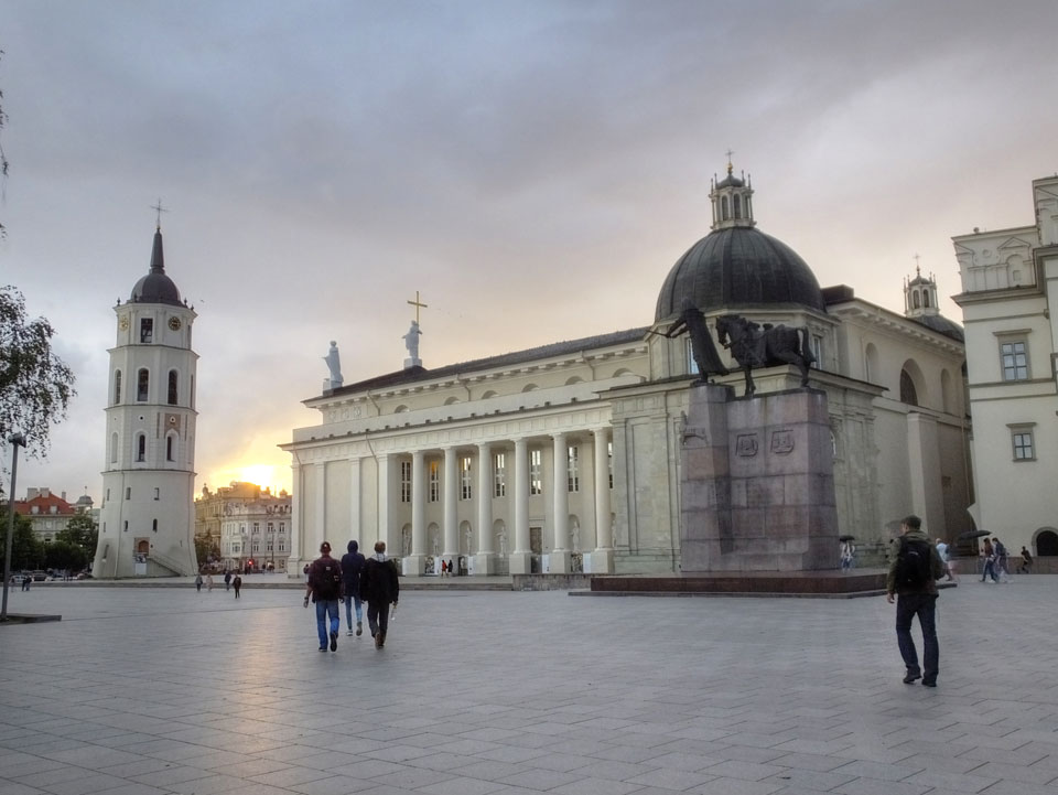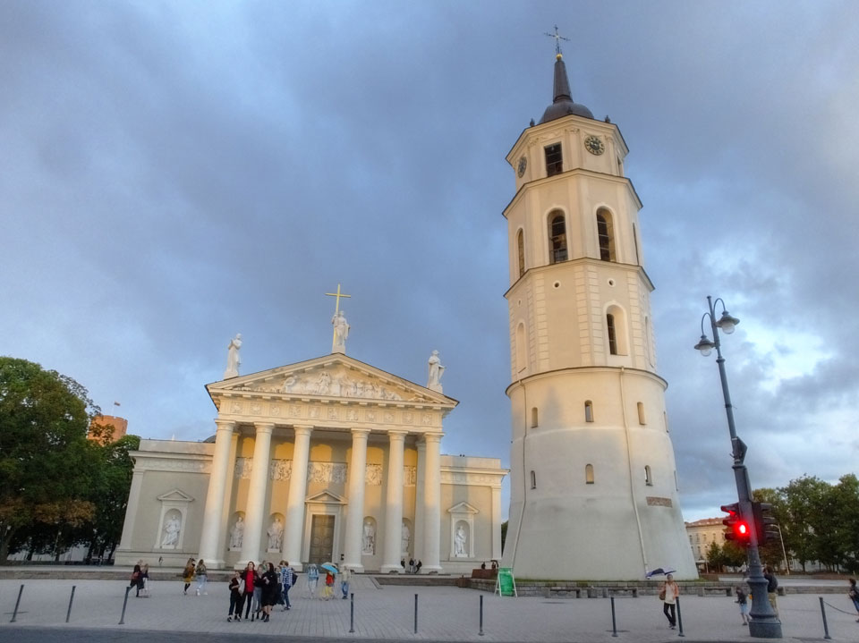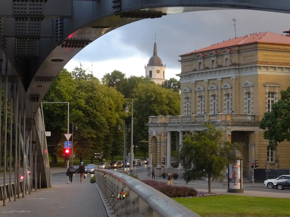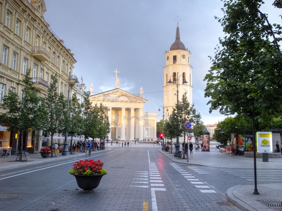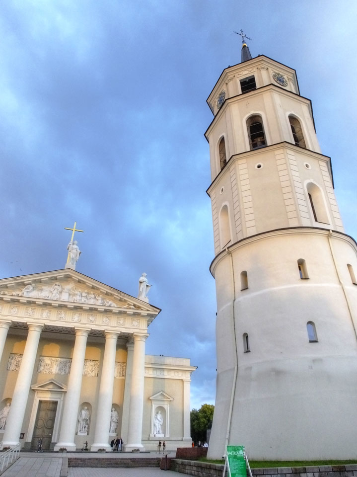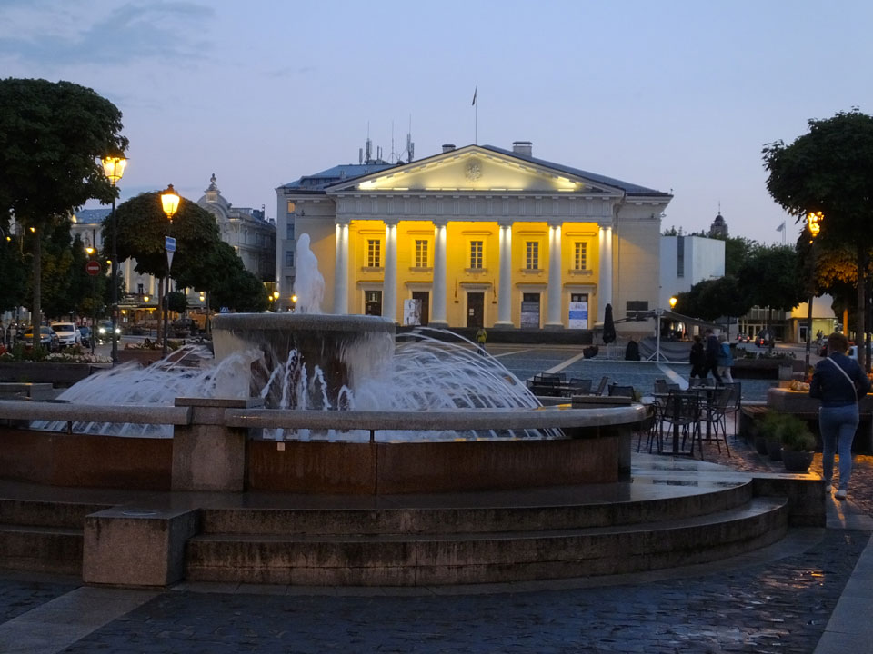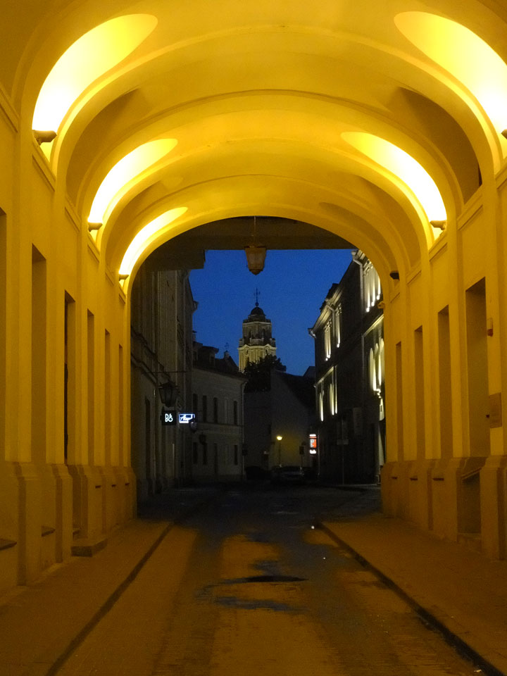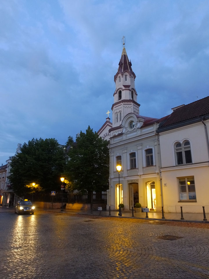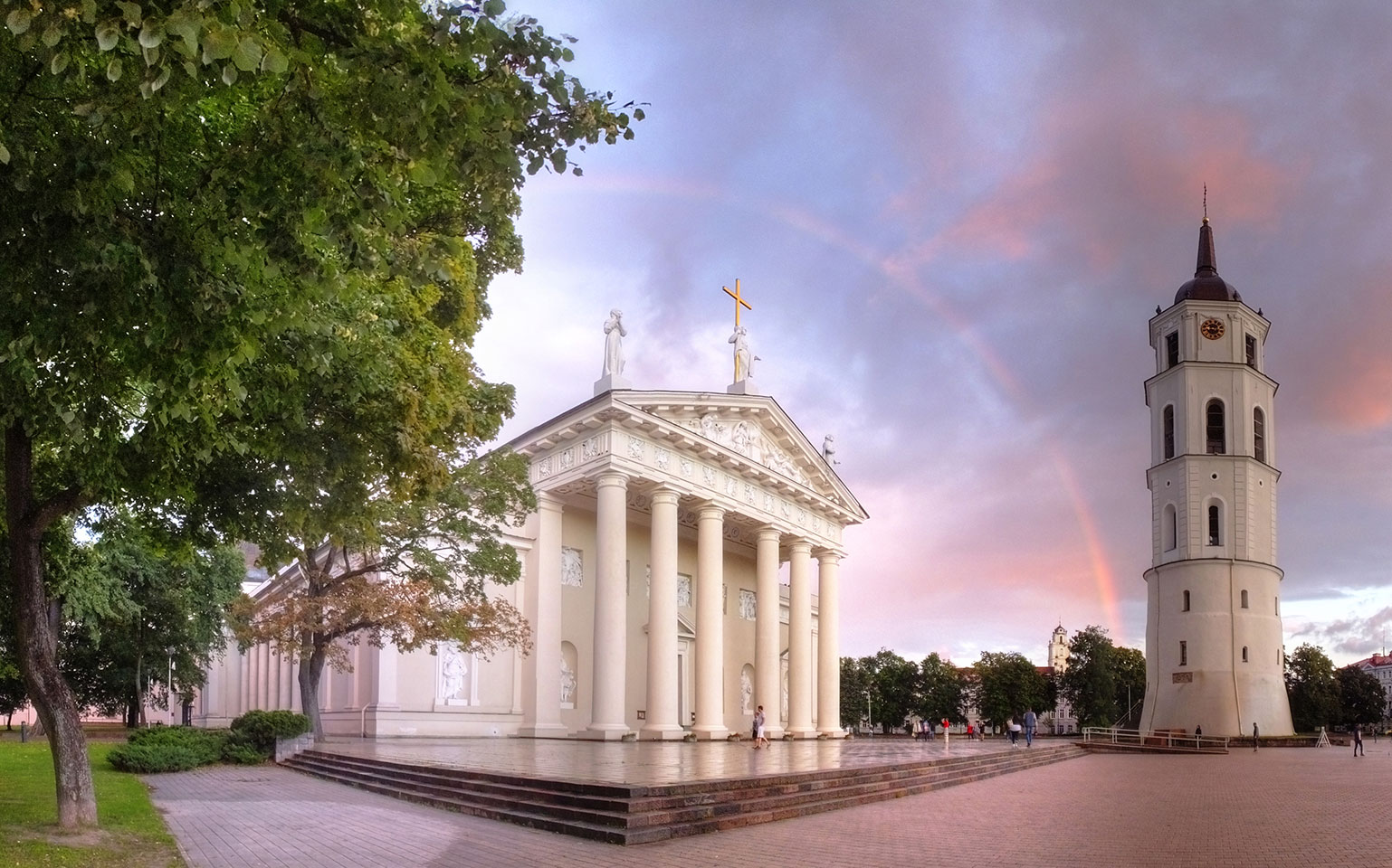 Die Wolken, der Sonnenuntergang und Regen brachten Regenbogen hervor. Ich knipste einige Bilder, die ich so noch nicht von Vilnius vor die Linse bekam. Die Panoramen an der Kathedrale waren dann auch was Besonderes – kitschig aber eben farblich neu.