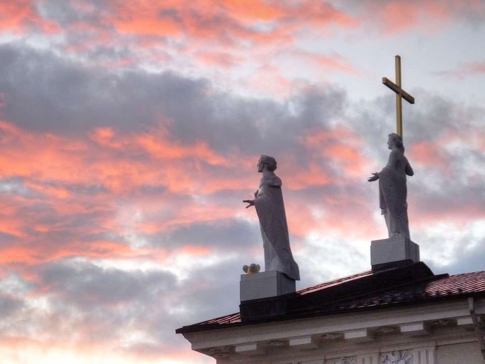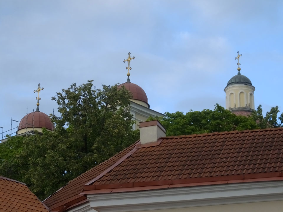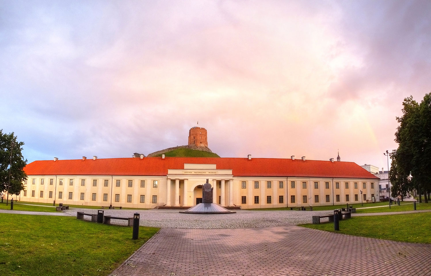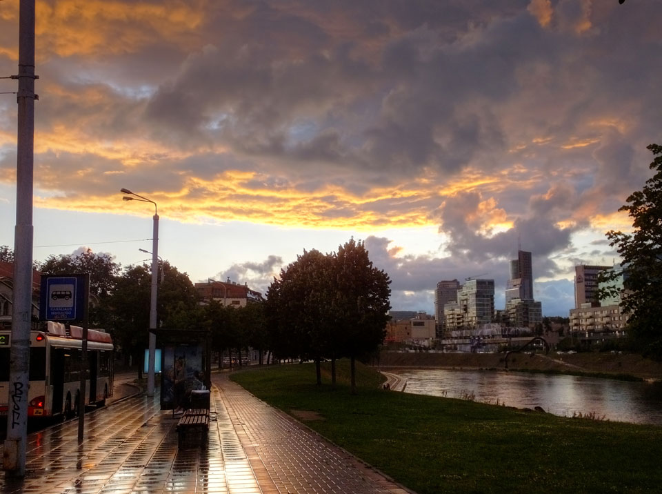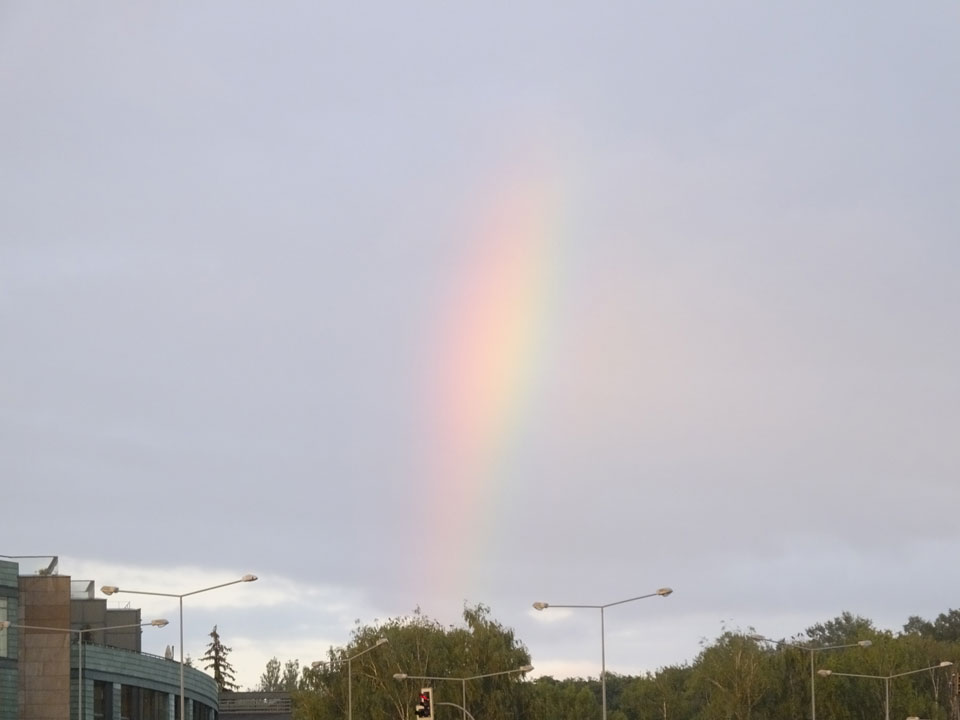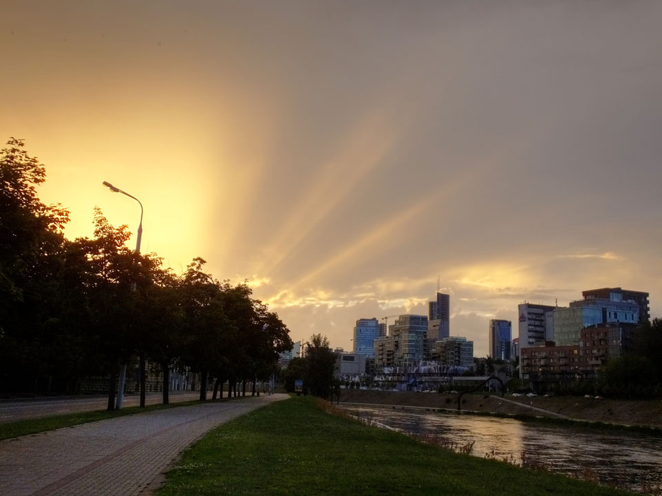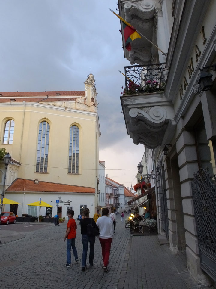 Die Wolken, der Sonnenuntergang und Regen brachten Regenbogen hervor. Ich knipste einige Bilder, die ich so noch nicht von Vilnius vor die Linse bekam. Die Panoramen an der Kathedrale waren dann auch was Besonderes – kitschig aber eben farblich neu.