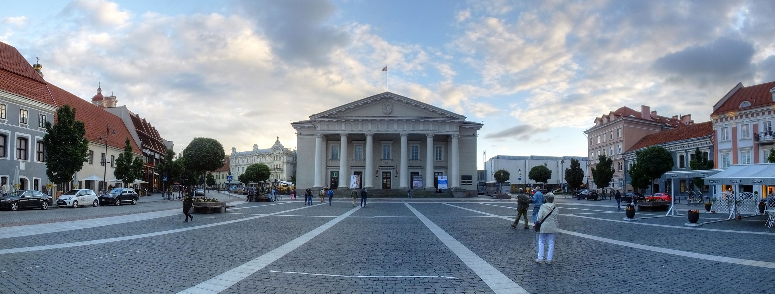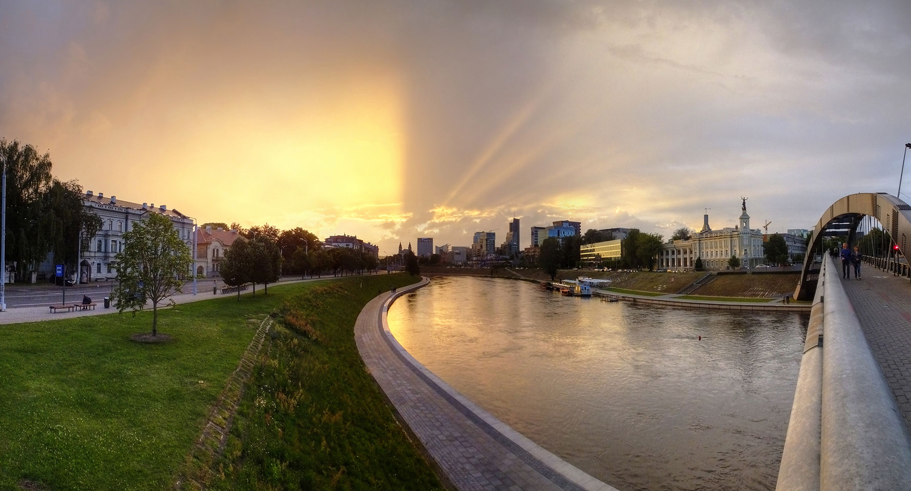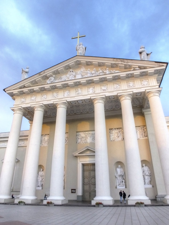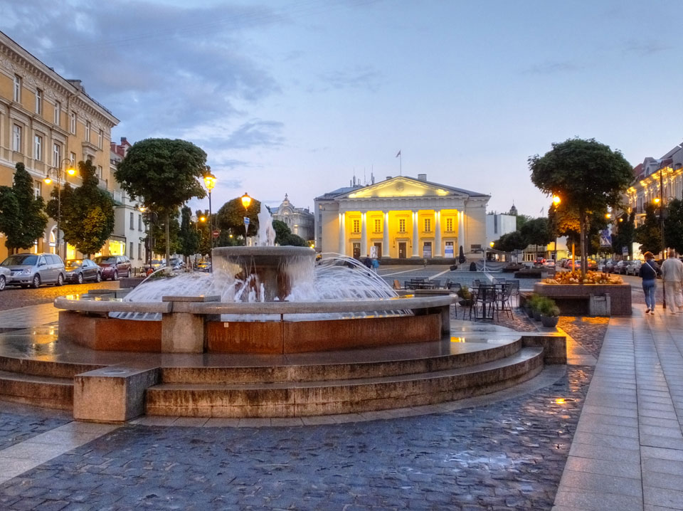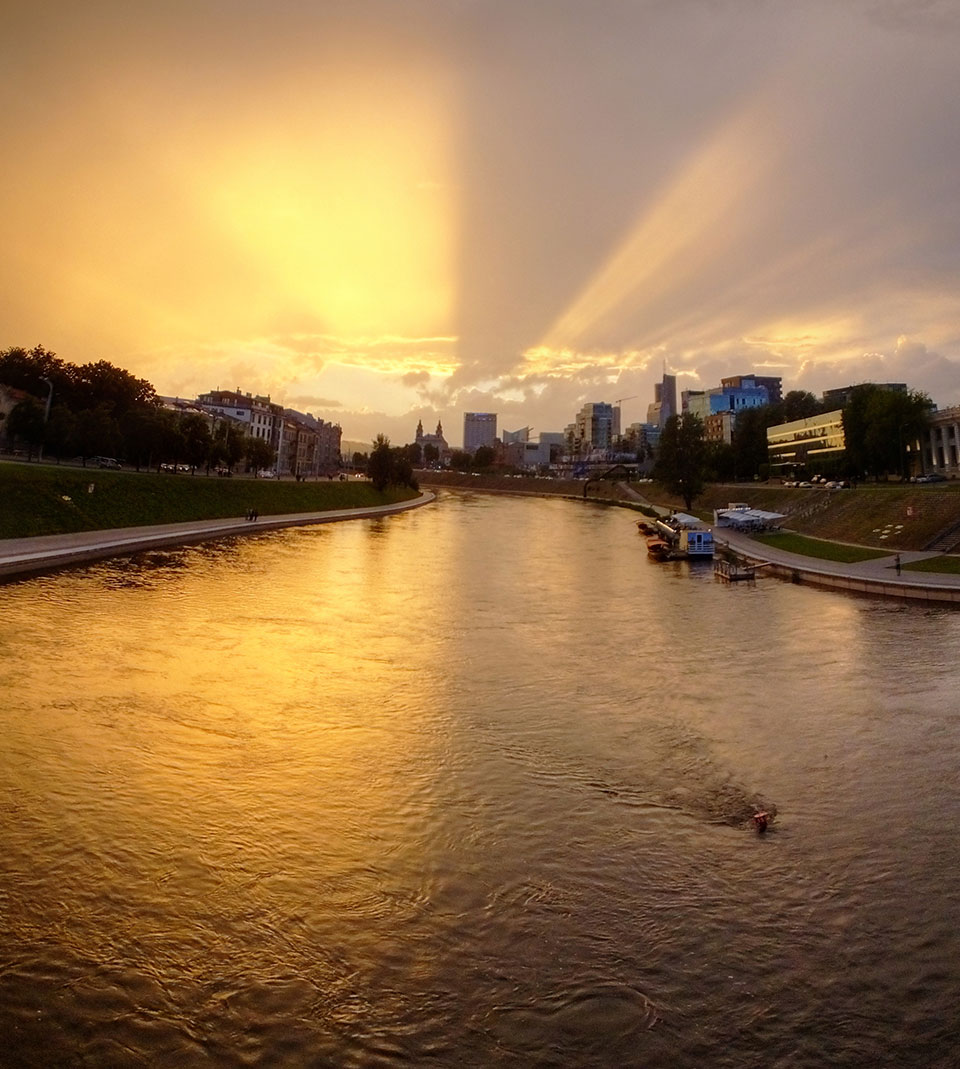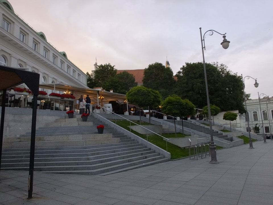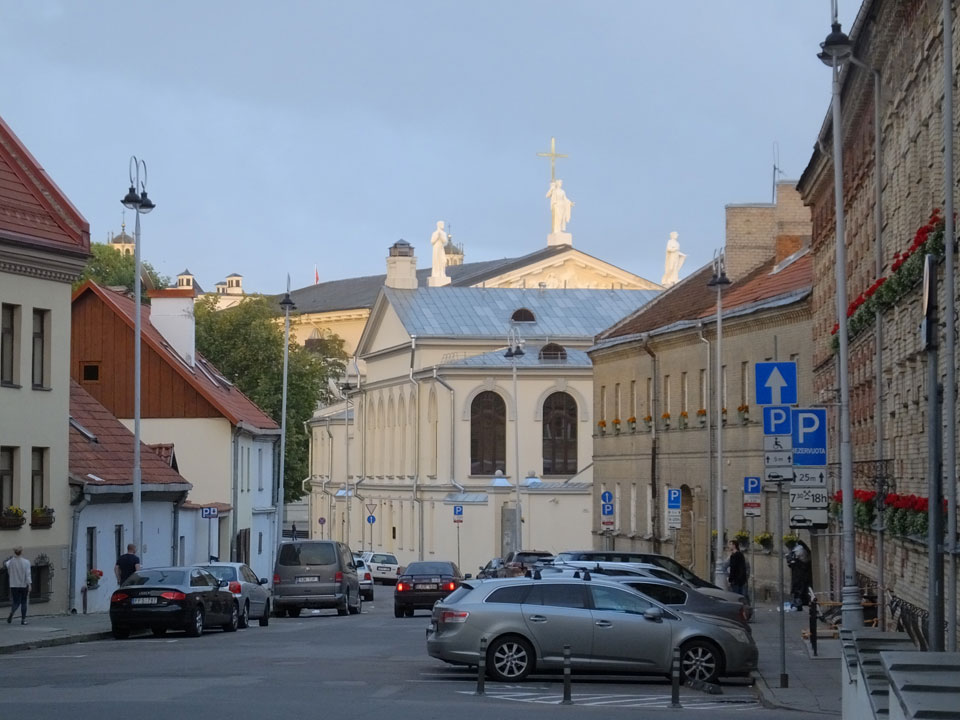 Die Wolken, der Sonnenuntergang und Regen brachten Regenbogen hervor. Ich knipste einige Bilder, die ich so noch nicht von Vilnius vor die Linse bekam. Die Panoramen an der Kathedrale waren dann auch was Besonderes – kitschig aber eben farblich neu.