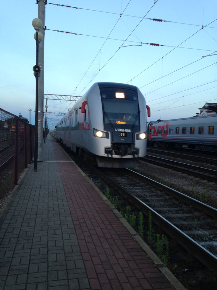 Auf dem Bahnhof in Vilnius wurde dann mein Pass kontrolliert. Ich stieg in den neuen kleinen Zug, der vom Typ wie der MRB Zug Chemnitz/Dresden schien. Alles neu und sauber – bereit für die Abfahrt.