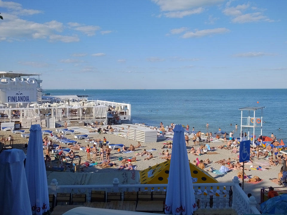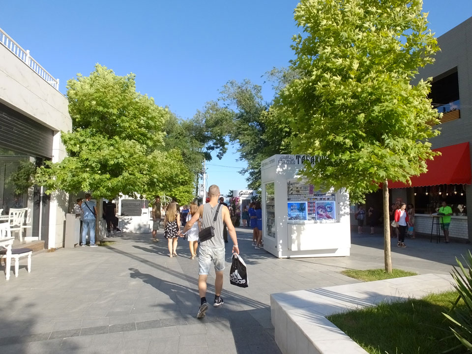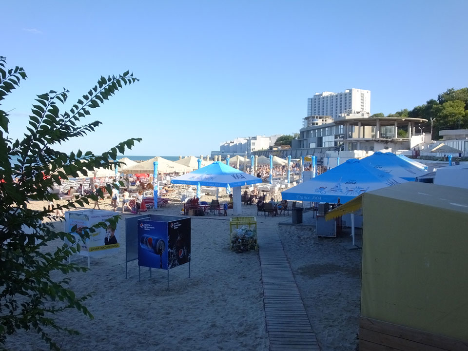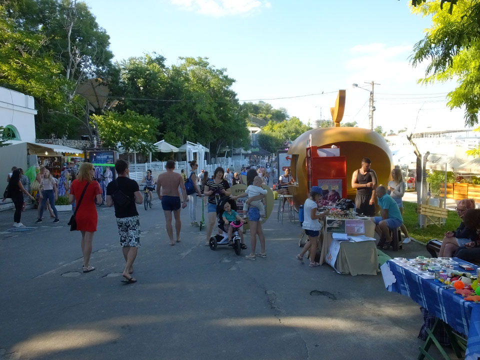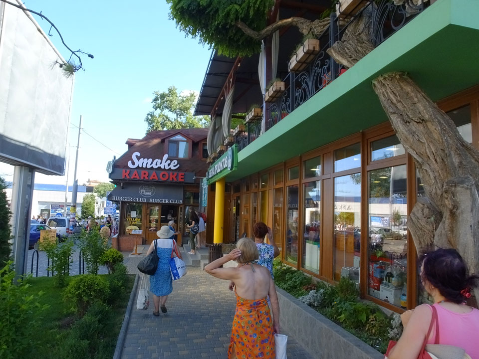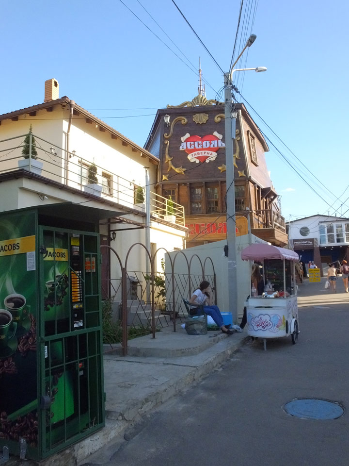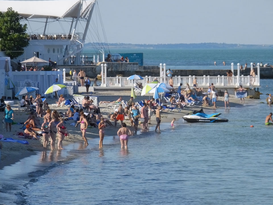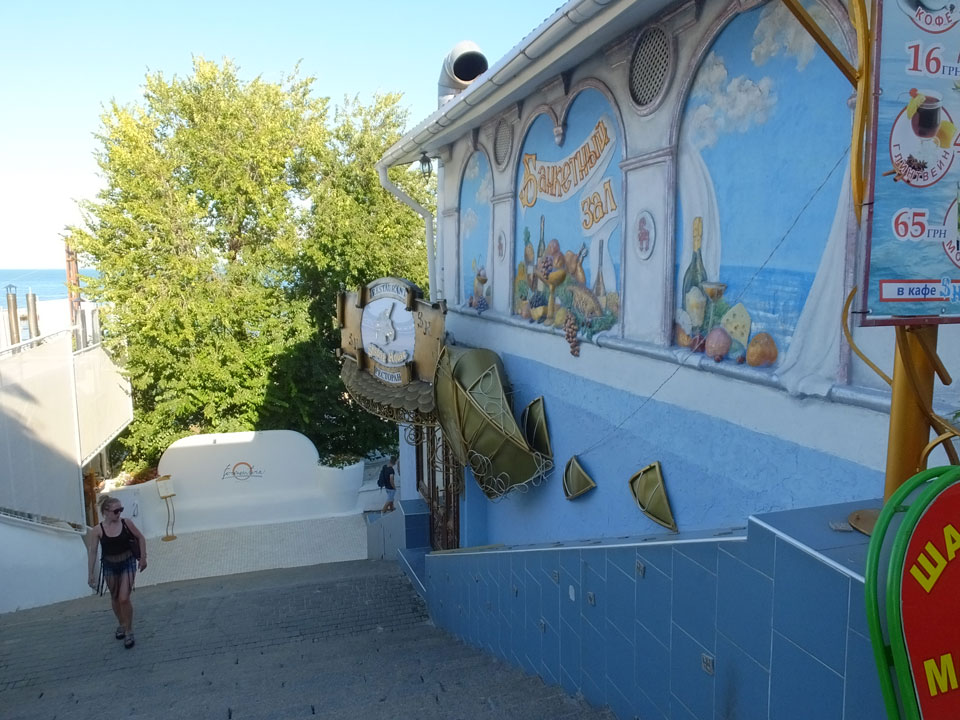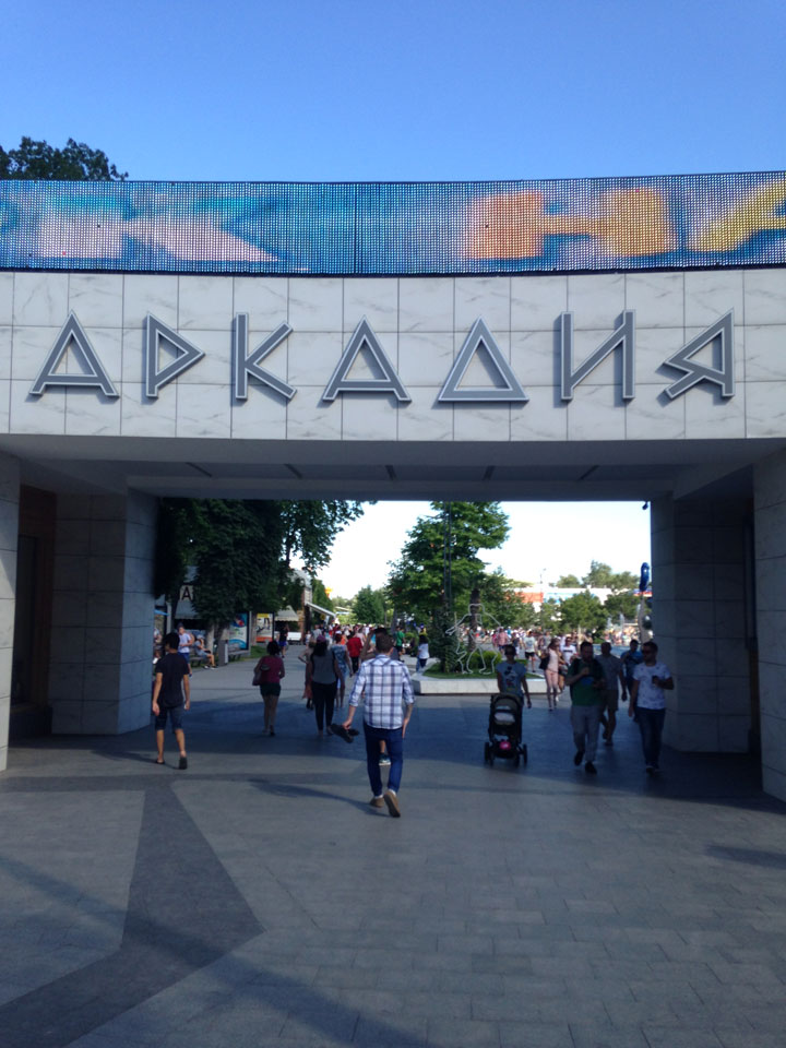 Vom Regen der Nacht war heute nichts mehr zu sehen. Strahlender Sonnenschein. Viele Leute in Odessa Arkadia, neue Läden mit ganz netter Atmosphäre. Die westlichen Touristen sind noch immer rar. Zur Hochsaison war ordentlich Betrieb am Strand.