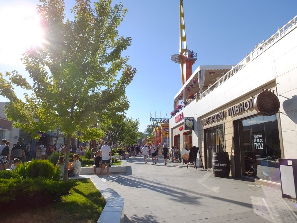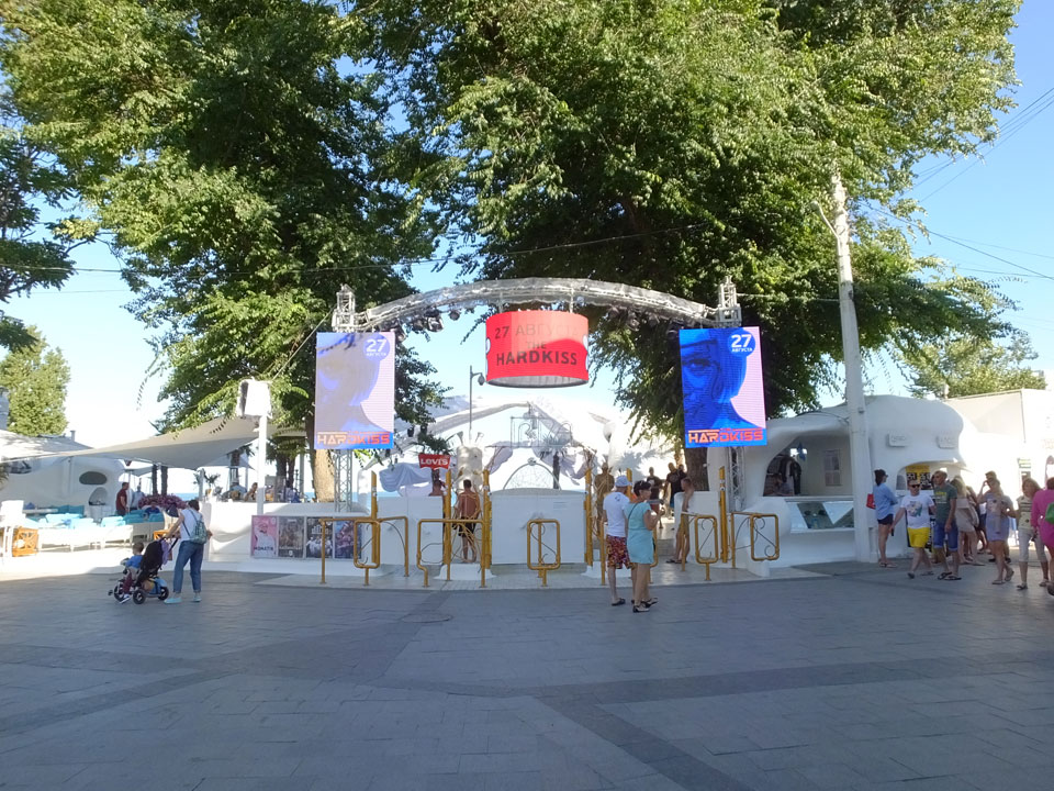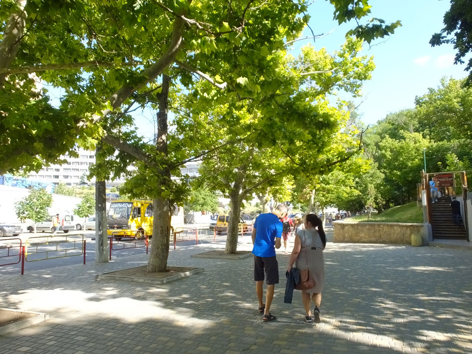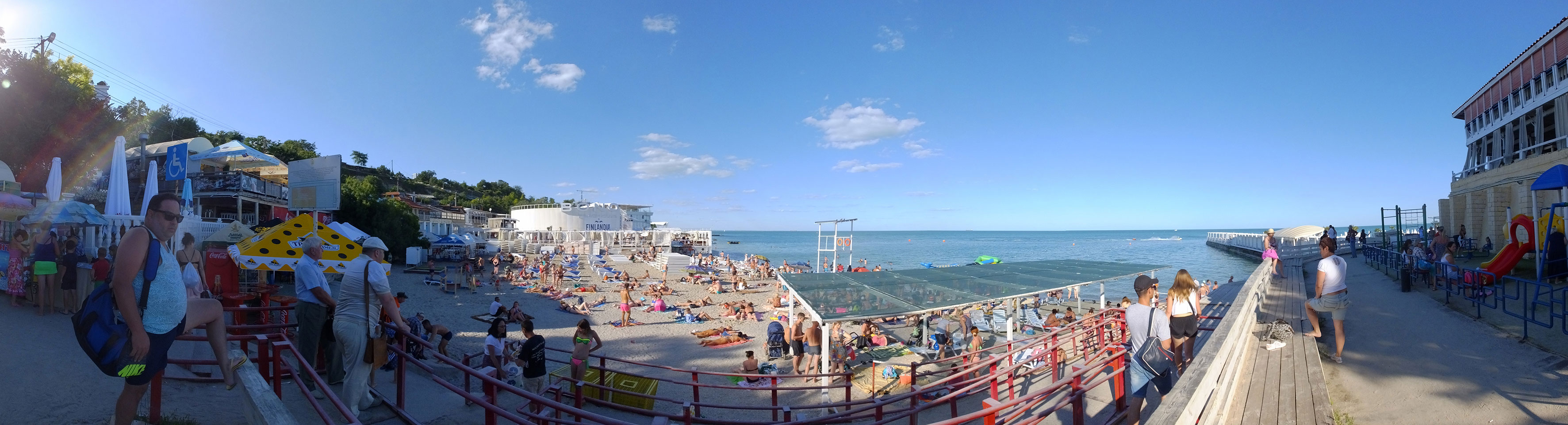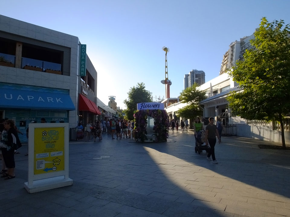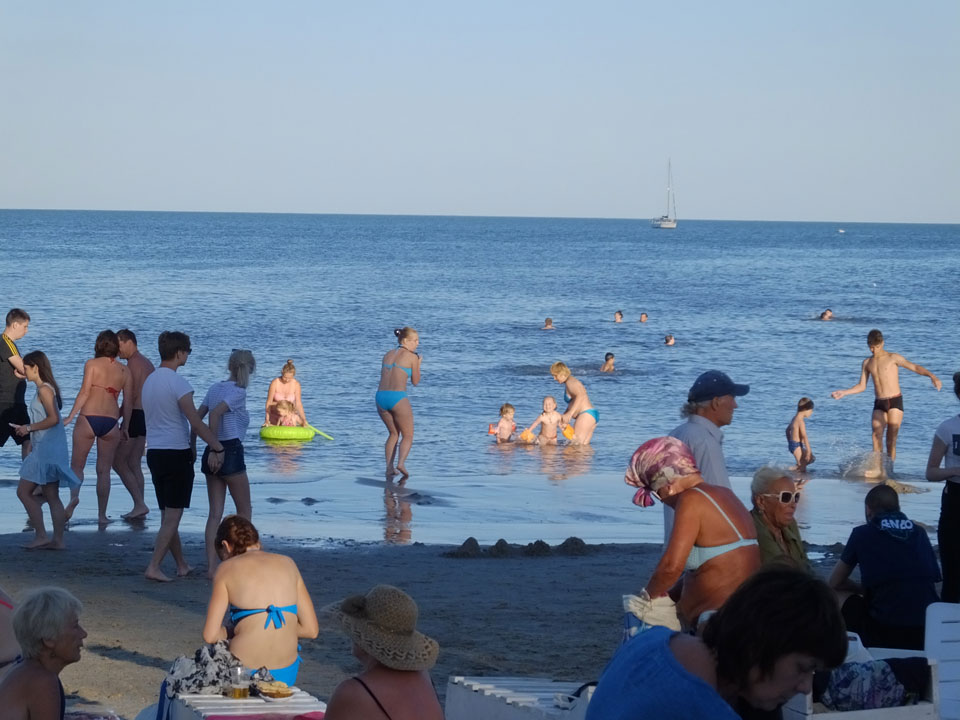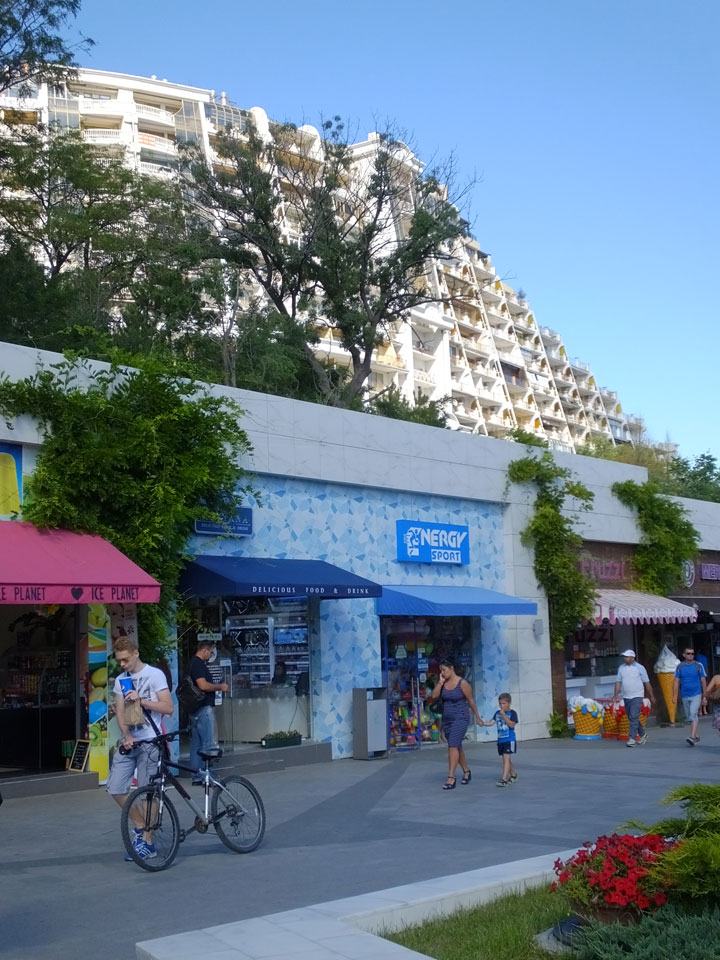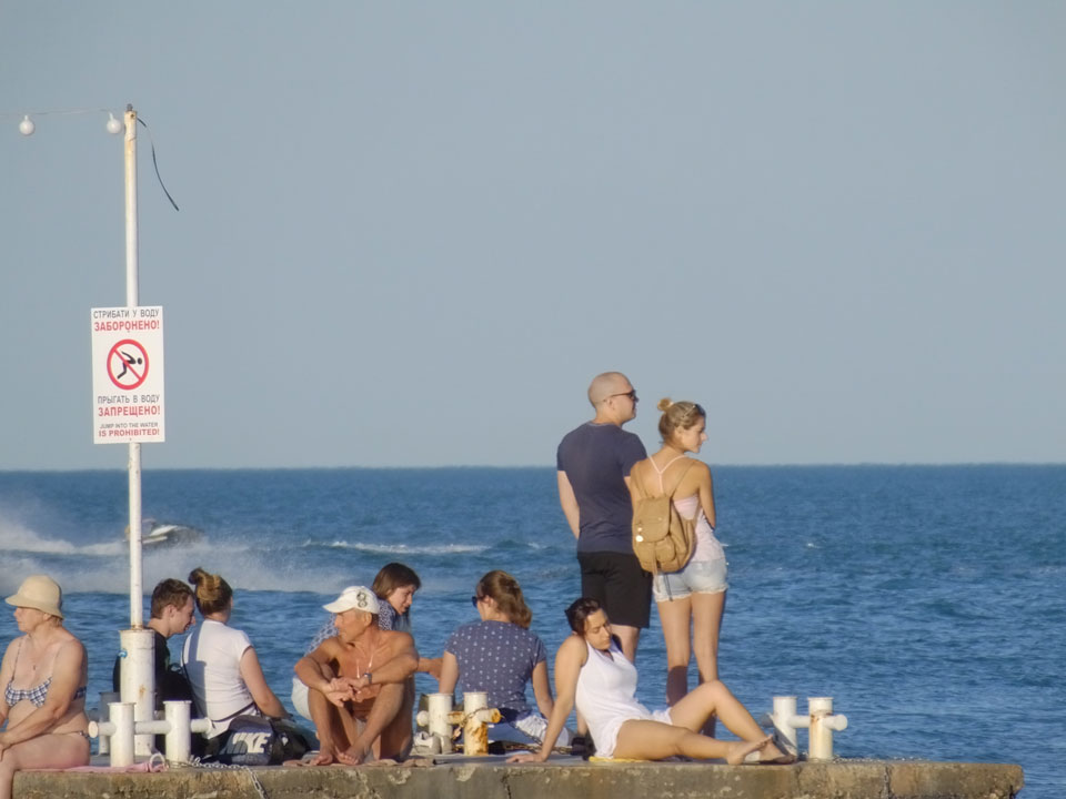 Vom Regen der Nacht war heute nichts mehr zu sehen. Strahlender Sonnenschein. Viele Leute in Odessa Arkadia, neue Läden mit ganz netter Atmosphäre. Die westlichen Touristen sind noch immer rar. Zur Hochsaison war ordentlich Betrieb am Strand.