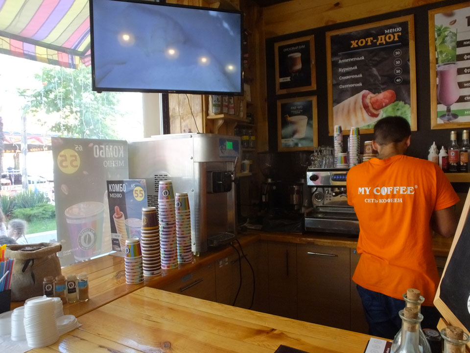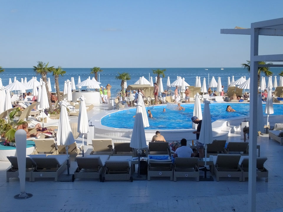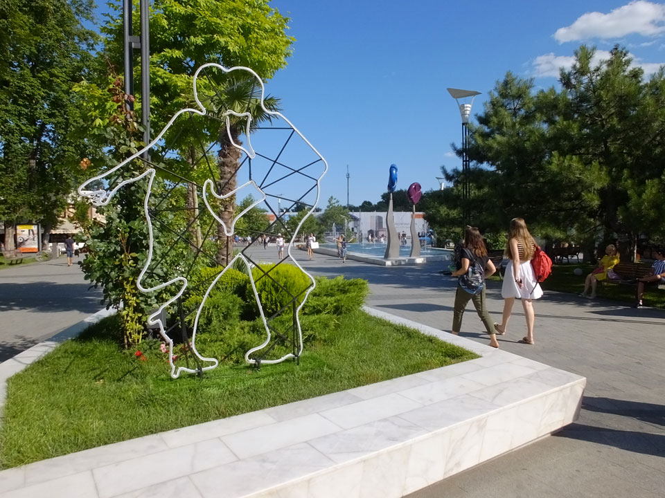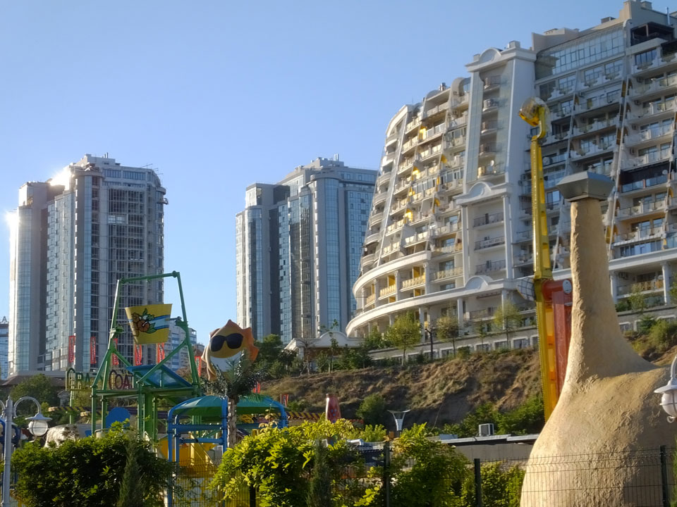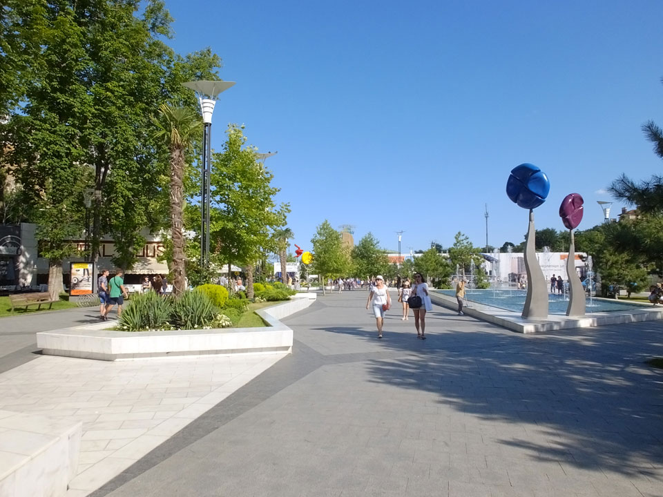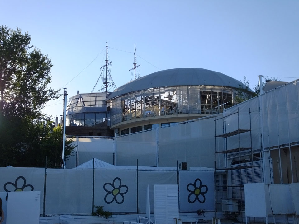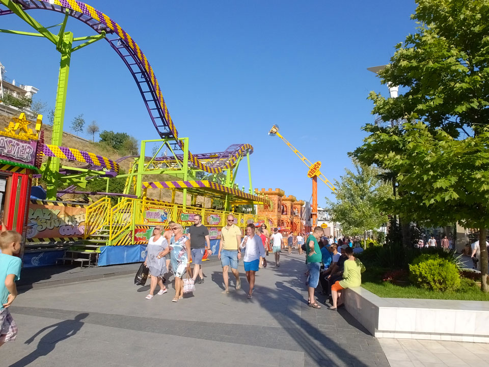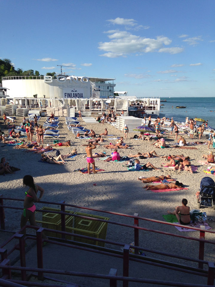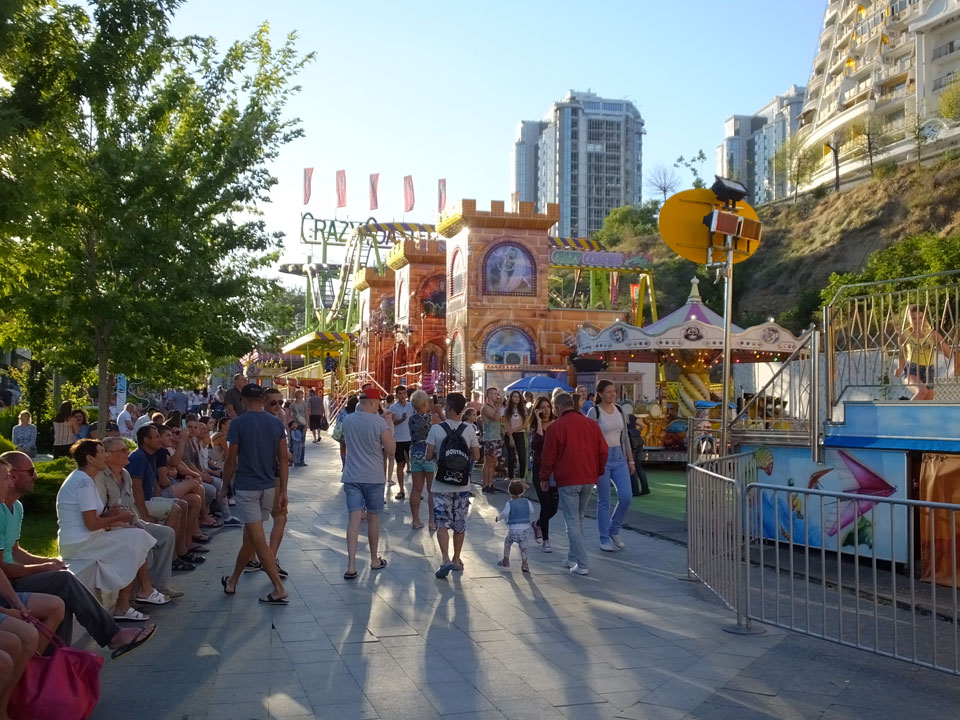 Vom Regen der Nacht war heute nichts mehr zu sehen. Strahlender Sonnenschein. Viele Leute in Odessa Arkadia, neue Läden mit ganz netter Atmosphäre. Die westlichen Touristen sind noch immer rar. Zur Hochsaison war ordentlich Betrieb am Strand.