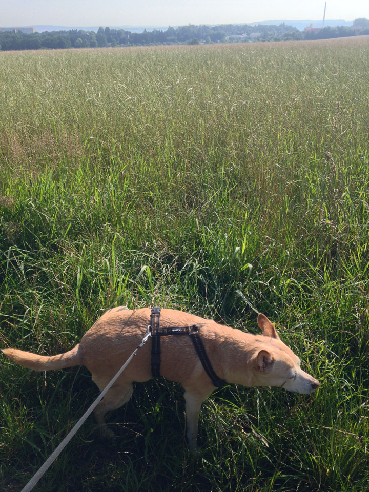 Etwas später heute ging’s mit dem Hund auf die Runde. Sein Magen machte wohl Probleme. Wenig los mit ohm heute – und auch mir. Ich brauchte einige Nickerchen, wie er auch.