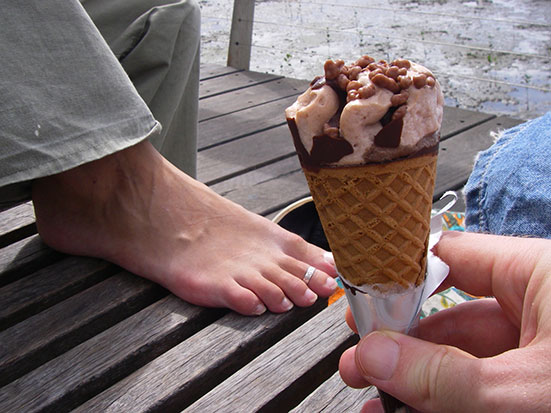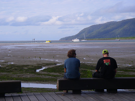 Aus der Tiefkühltruhe mussten 3 Cornetto Eis verdrückt werden. Ich schaffte zwei. Dann setzten wir und ins Gras, ich machte mal wieder ein paar Dummheiten und schlief dann eine Weile. Gegen 3 oder später gingen wir nach Cairns Central. In der Noodlebox wieder was zu Essen. Interessante Diskussion über Psychologie mit noch interessanten unterschiedlichen Ansichten. Das schlauchte.