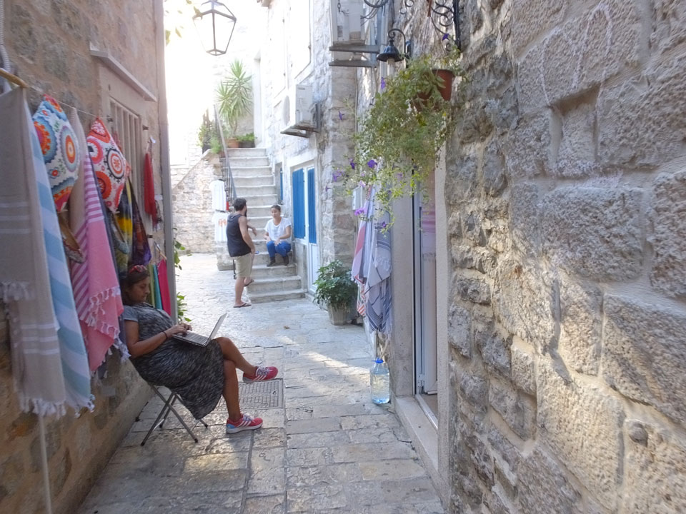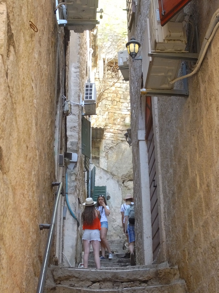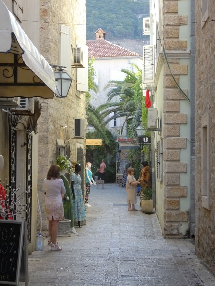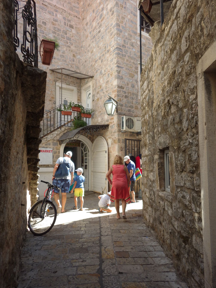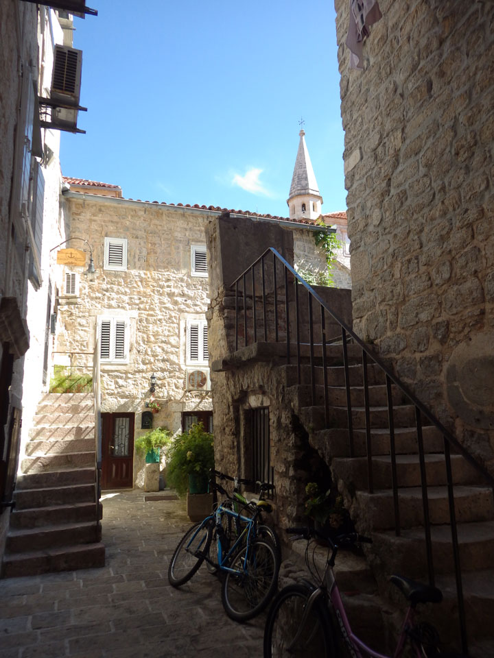 Der Busbahnhof in Budva ist auch etwas weiter von der Altstadt entfernt als in Kotor. Hier liegt aber auch eher das touristische Zentrum. Alles ist größer und noch mehr voller Leute. Mein Hostel (Montenegro Hostel Budva) fand ich fix dank GPS. Die Altstadt hat genauso enge Gassen wie in Kotor.