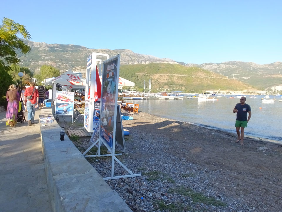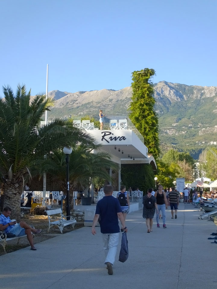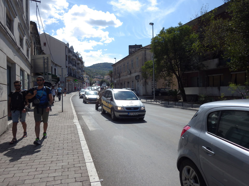 Ich ging zum Busbahnhof. An der Kasse warteten schon ein paar Leute, sie war nur nicht besetzt. Ein Mann kam an rief Tivat und Budva und auf ging’s. Das Ticket kaufte ich im Bus (€3) und da war ich froh: Erstens: weil es sofort los ging und Zweitens: weil ich einen Sitzplatz hatte. Ein paar Leute mussten nämlich stehen.