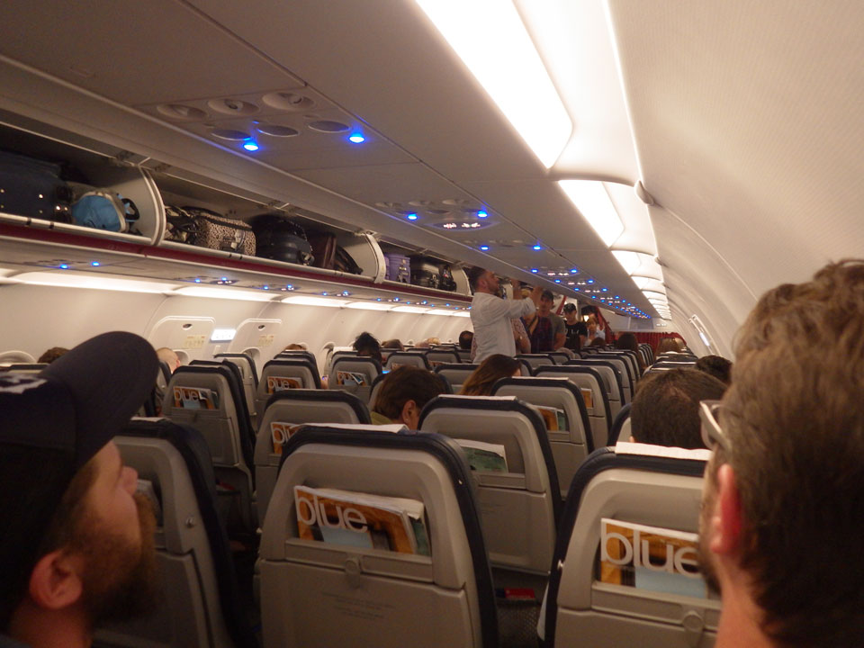 Ich redete etwas mit einem Deutschen, der hier mit dem Auto unterwegs ist. Ärgerlich war, als man mir die Toilette verweigerte – ich war eben ausgecheckt. Naja. Mangels Cash wollte ich mit dem Bus zum Flughafen. Ich hatte über Internet die ungefähre Adresse gefunden, doch dann war das noch einfacher. Gleich vor dem Platz sah ich einen Bus mit „Airport“.