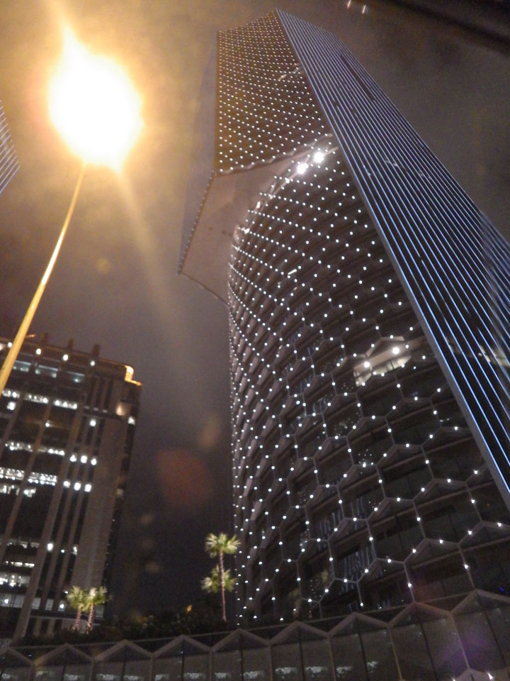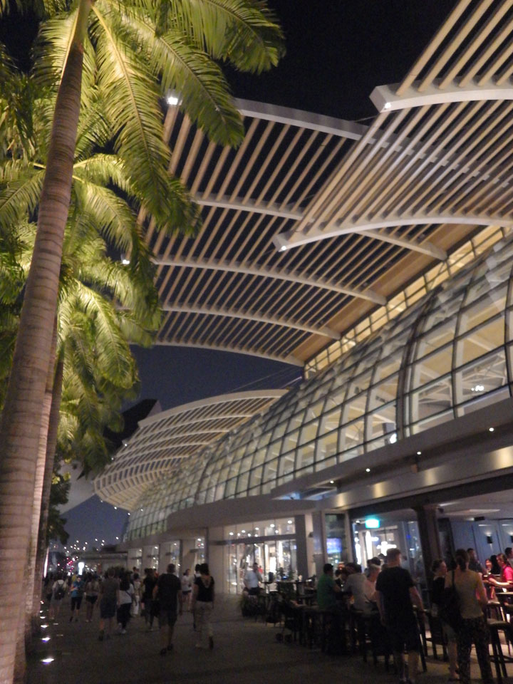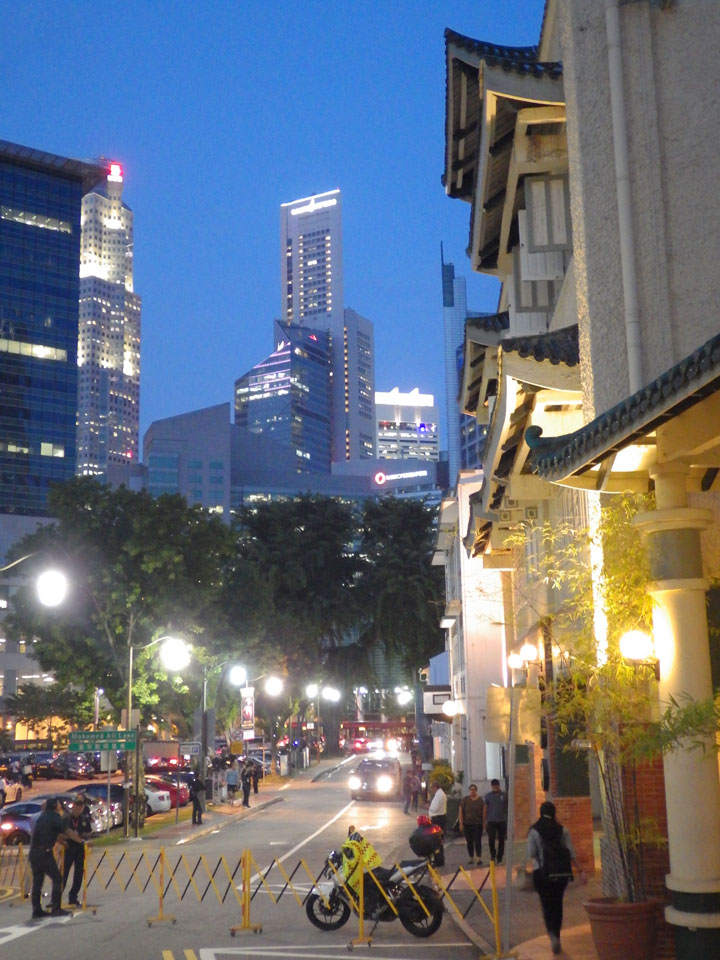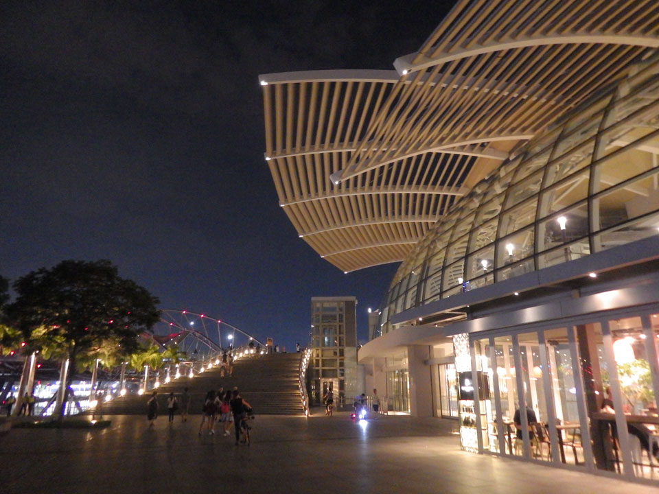 Ich fuhr zum nächsten Hostel, was besser an Marina gelegen ist. Das 5 Stones Hostel machte schon mal einen guten Eindruck. Blitzsauber, wenn auch ein Zimmer ohne Fenster. Weniger Platz hier bei höherem Preis, doch damit fand ich mich erst mal ab. Ich hatte eine Verabredung mit einer alten Bekannten, die zufällig in der Stadt ist. Ich brauchte eine Weile mit meinem halbkaputten Handy, bis ich einen Transport zur Ninja Bowl fand. Der Stau durch die Formel 1 Absperrungen verlängerte die Fahrt. Sie hatte sich schon ein Essen bestellt, ich bestellte auch was gesundes gutes mit Quinoa – musste bar zahlen und hatte nun null Cash.