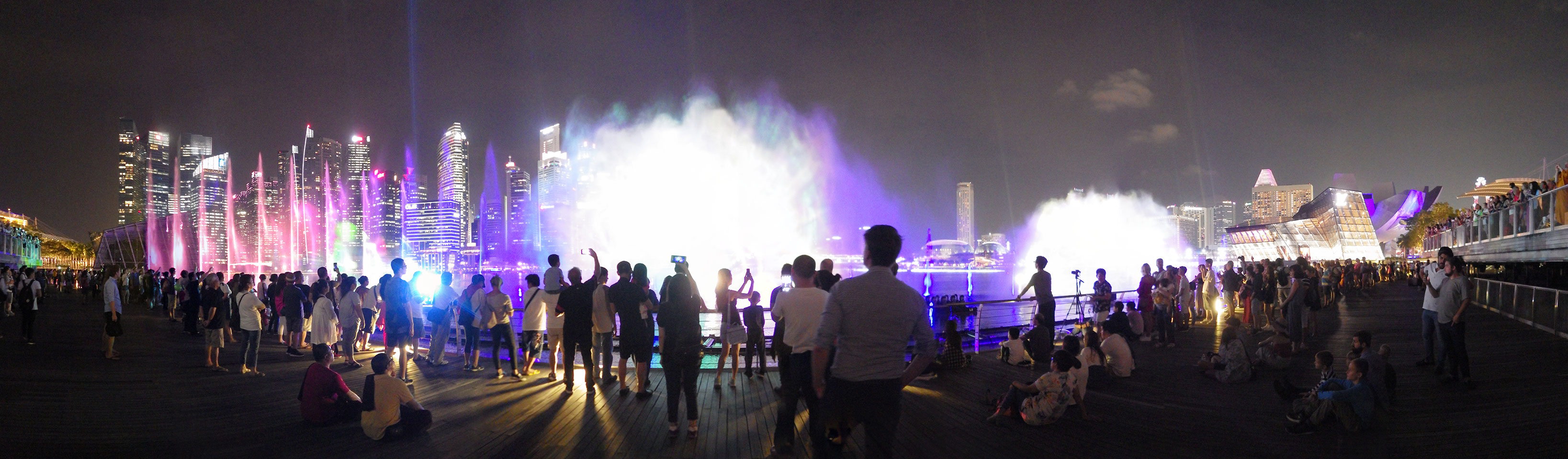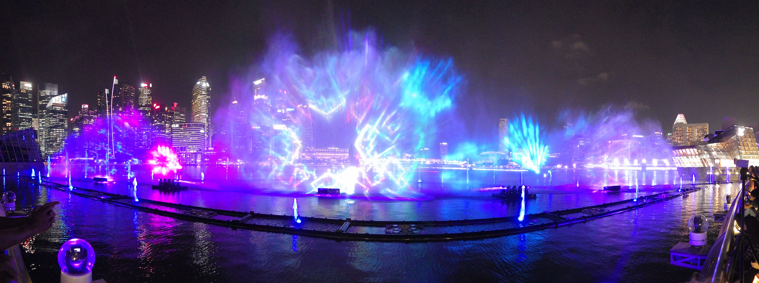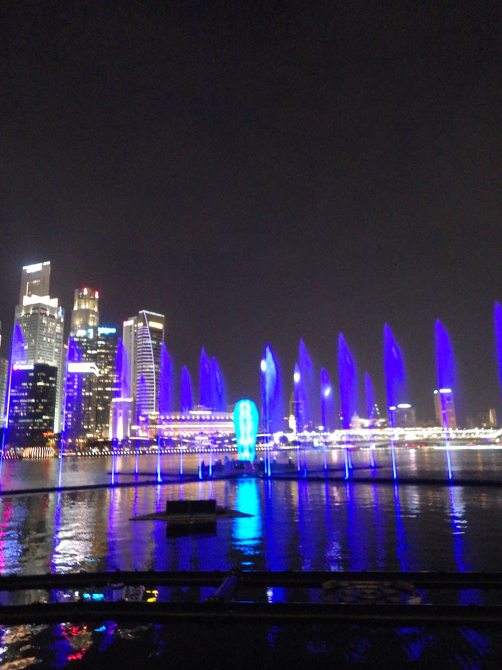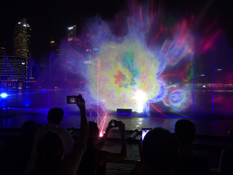 Die Wassershow an Marina läuft jeden Tag um 20:00. Ich spazierte also hin, immer mein Yotaphone dabei, was irgendwann mangels Akku ausstieg. Ich fand das alles aber gut und kam gerade rechtzeitig. Nette Wasser / Musik-Show. Irgendwie OK, mich kann das nicht so richtig beeindrucken. Damals auf Sentosa schien die Sache cooler. Jedenfalls bessere Show als der eine Song in Dubai.