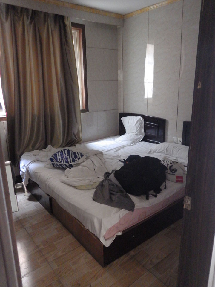 So blieb ich die meiste Zeit dann erst mal da, chillte und drehte erst in der Nacht noch eine Runde. Dabei kam ich wohl von der falschen Seite vom Hügel runter, denn da war nichts los. In einem Markt dann aß ich eine Instant-Suppe, wie auch ein paar Chinesen und ging wieder zurück. Kakerlaken hatte das Zimmer auch – für €16 ist das wohl hier so. Das Bett war aber bequem. Na mal sehen.