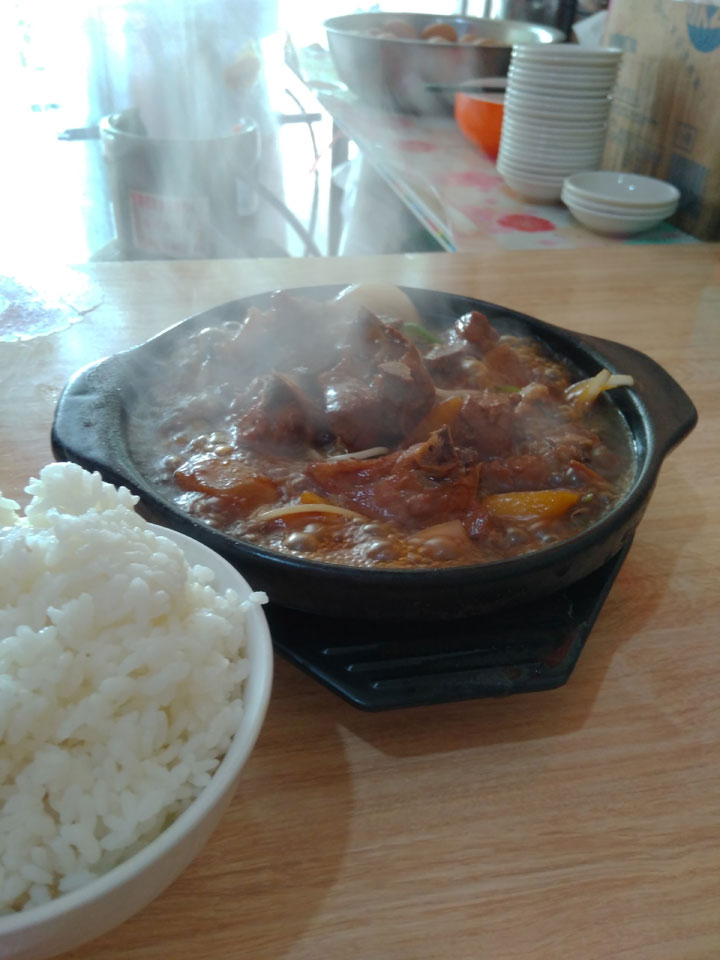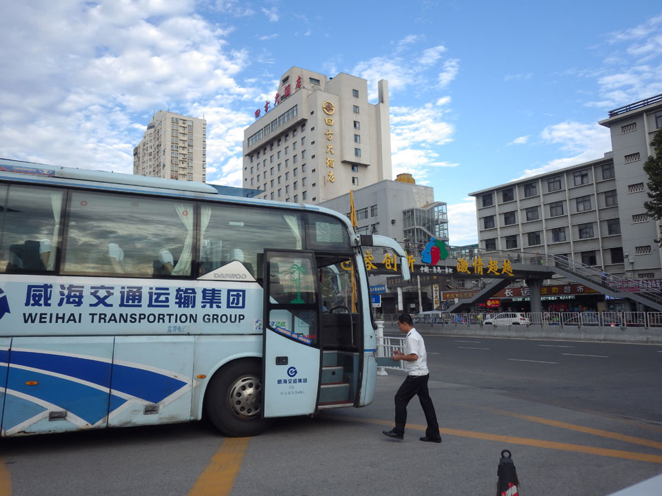 Von Rizhao sah ich quasi nichts. Gleich vom Hotel aus ging ich erst mal was essen. Eine heiße Fleischsache schmeckte gut. Am Busbahnhof gegenüber dann kaufte ich die Karte nach Qingdao (CNY 65).