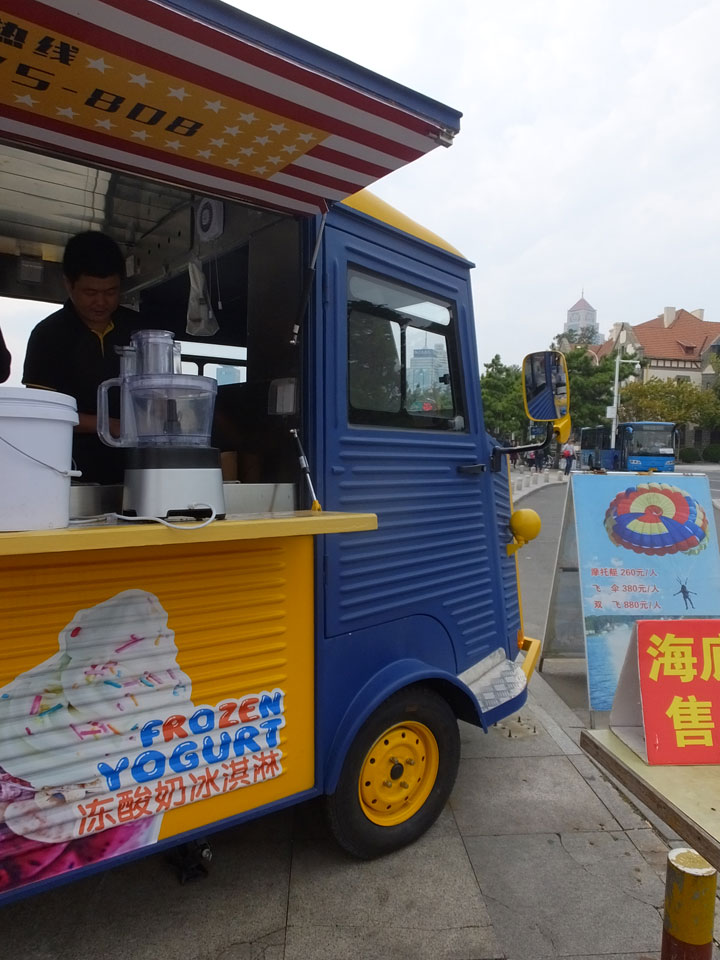 Als alte deutsche Kolonie hat Qingtao natürlich auch eine Brauerei. Zuerst ging ich runter an’s Wasser auf der Suche nach einem Frühstück. Ich fand nur eine Waffel mit Frozen Yoghurt und einen Dosenkaffee. Ein Taxi fand ich schließlich auch, was mich schnell zum Tsingtao Bier Museum fuhr.