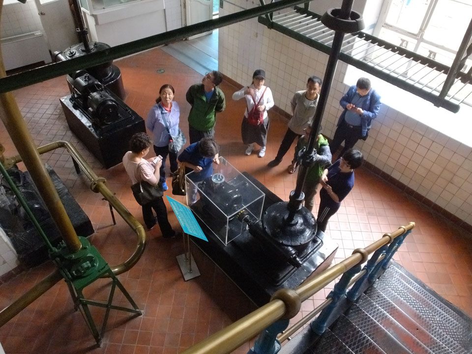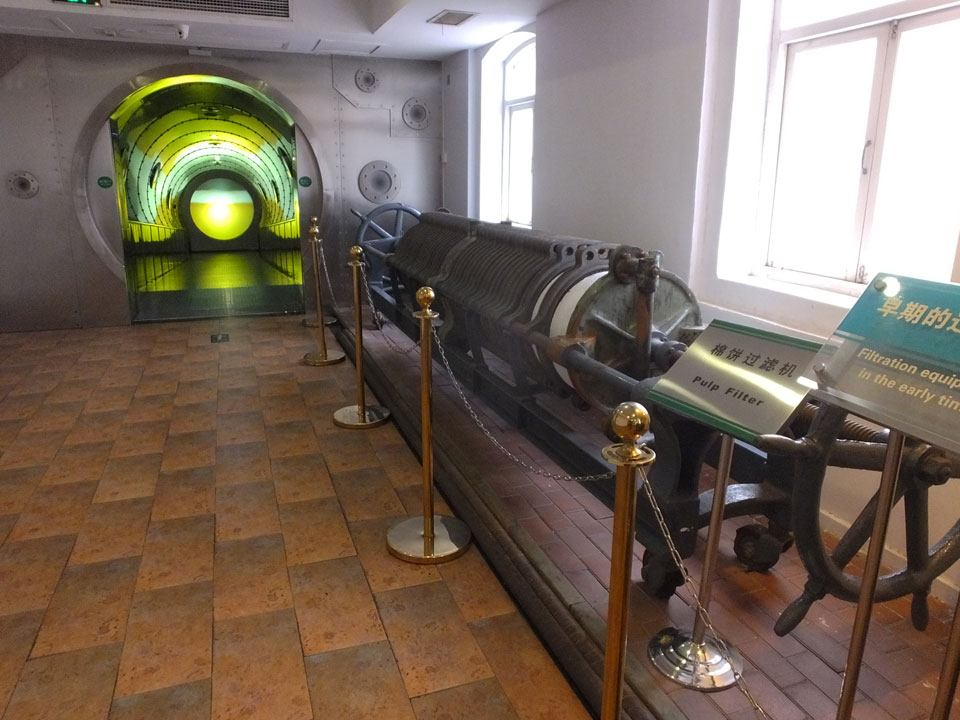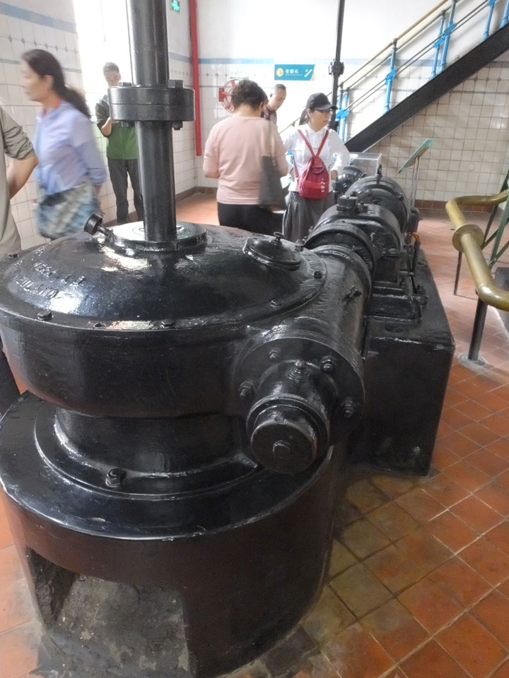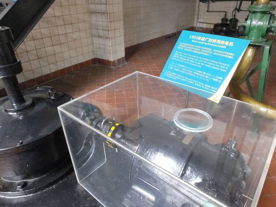 Für 60 CNY Eintritt (€7,80) bekam man auch einen Zettel für zwei 150ml Bier und eine Packung Nüsse. Nicht ganz so günstig. Gleich am Eingang als erstes Exponat stand dann ein alter Siemens Elektro Motor von 1896 oder so. Der würde auch jetzt noch funktionieren.