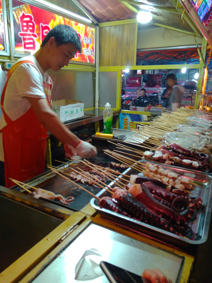 Ich saß da noch eine Weile bis ich mich zum Taidong Nachtmarkt aufmachte. Die Wege sind ganz gut zu Fuß zu bewältigen. Obwohl die Stadt sehr groß ist, ist sie nicht überlaufen. Bei McDonalds holte ich mir erst mal was zu essen. Viele Leute liefen dann nur auf dem Essensmarkt nebenan herum. Alle möglich Würste, Spieße mit Octopus und sonstwas. Typisch chinesisch eben. Ich probierte nur zwei Sachen und lief die ganze Fußgänger-Straße hoch. Mit Bus 320 erwischte ich die richtige Richtung und per GPS auch Gegend in der Nähe des Hostels. So war ich nach 5h wieder wohlbehalten im Zimmer.
