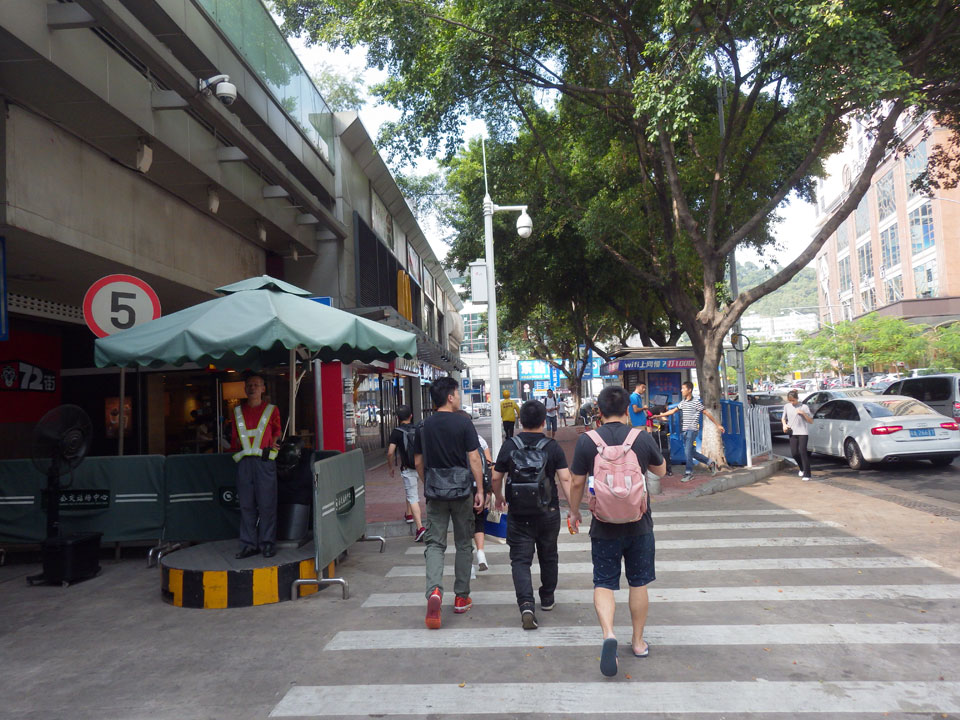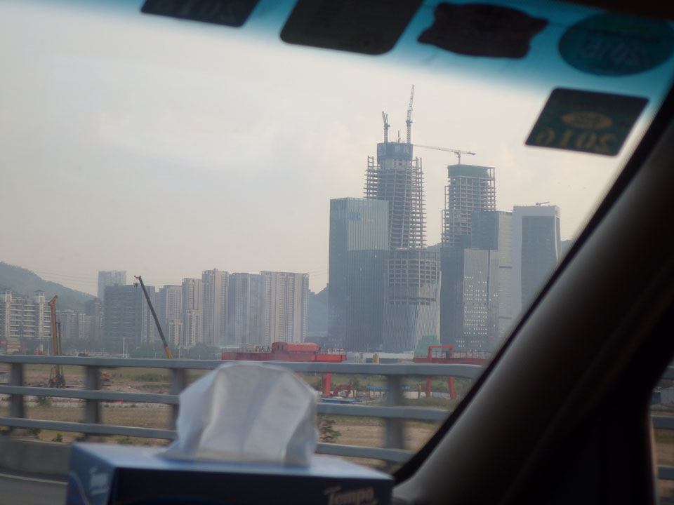 Irgendwie ist es immer halb-amüsant, wenn die Chinesen auf die Schriftzeichen zeigen, die ich natürlich nicht lesen kann. Ich stellte mich in eine lange Schlange vor’m Ticketverkauf und wurde von einem Mann angesprochen, der eine Taxifahrt nach Shenzen verkaufen wollte. In einem Van für 150 CNY (€19,50) sollte es gleich los gehen. Zuerst lehnte ich ab, doch dann sagte ich doch zu und ging mit einem Pärchen mit.